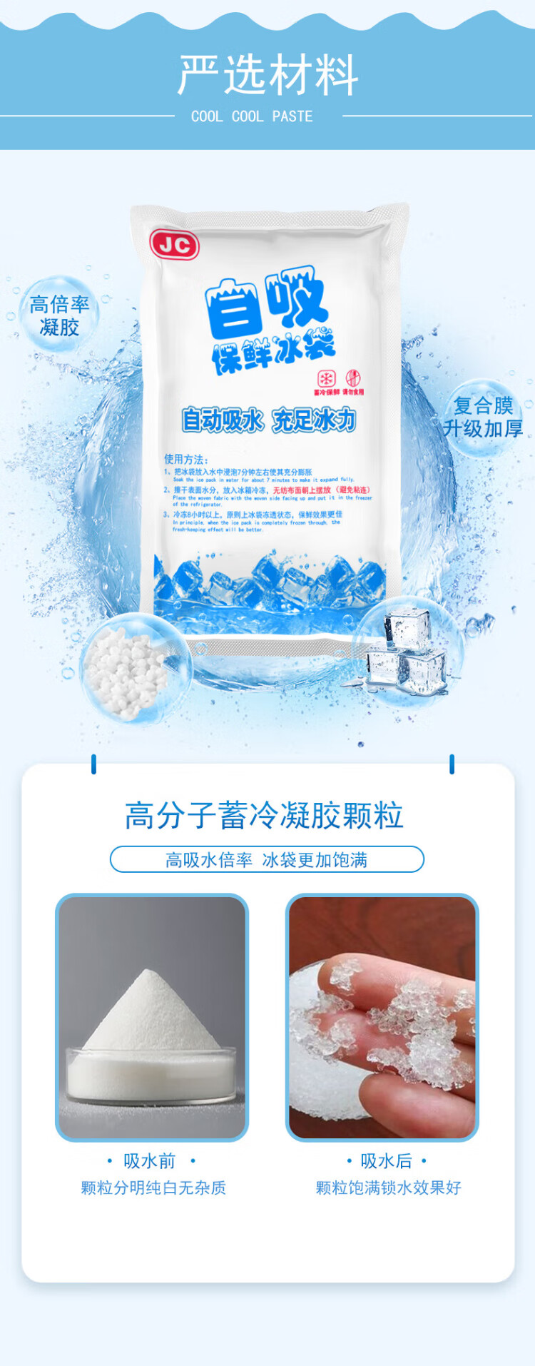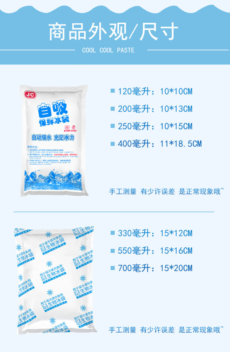 Royal Escort Bureau self-absorbing water ice bag, water-free thickened ice crystal insulation bag, seafood lychee transportation express refrigerated ice cubes 120ml 10*10CM 100 pieces