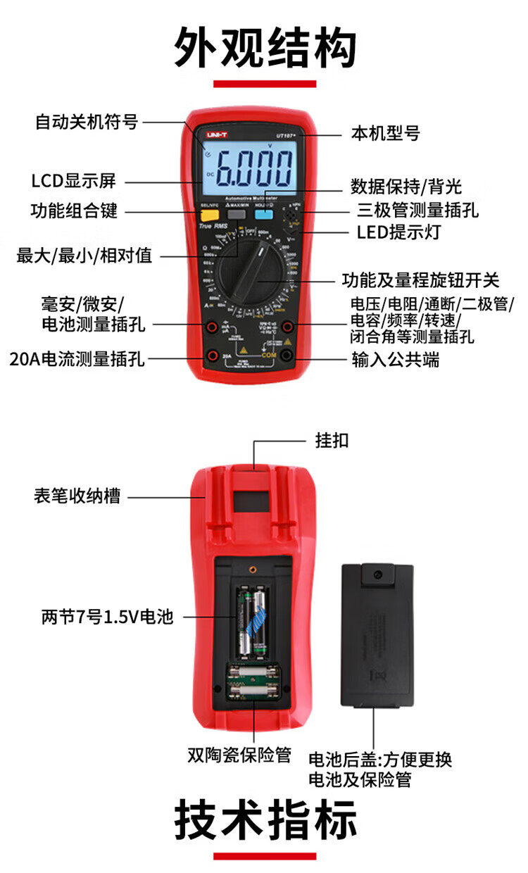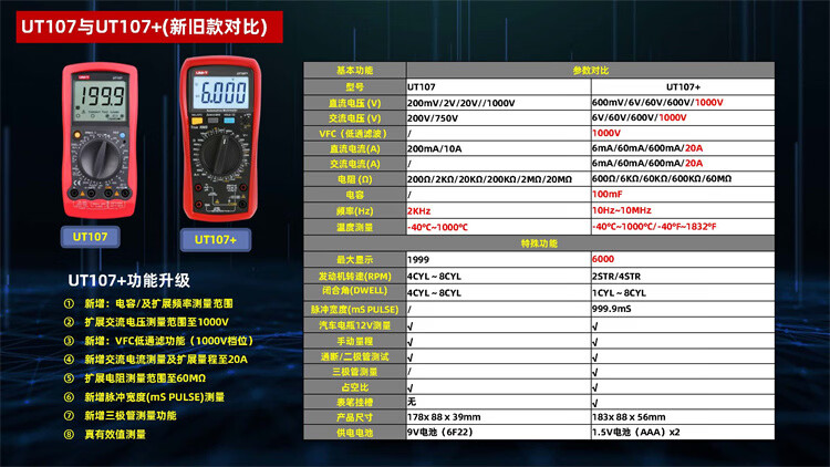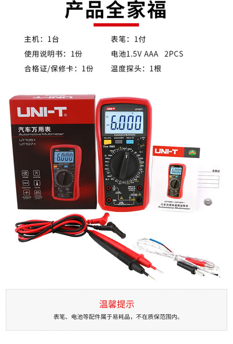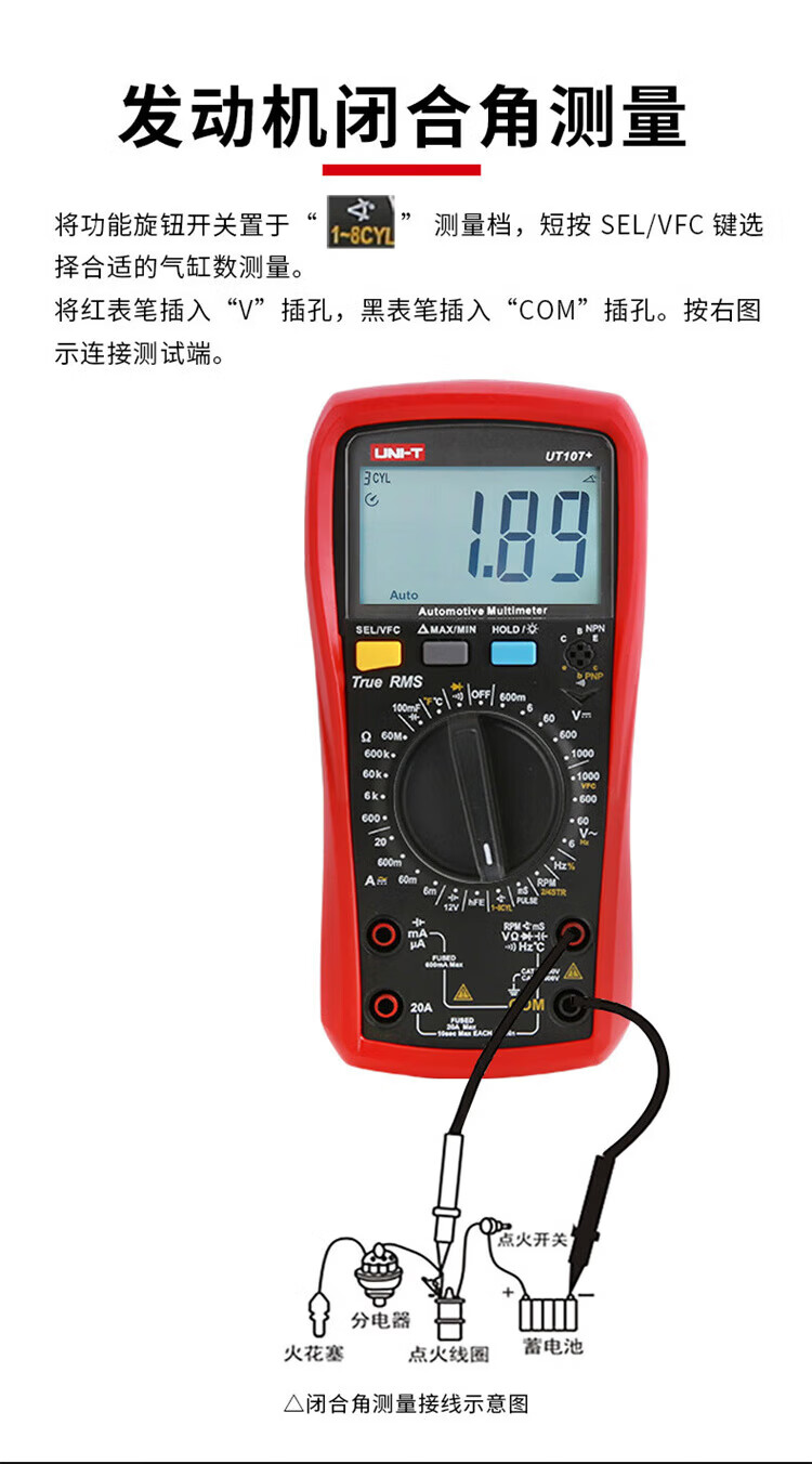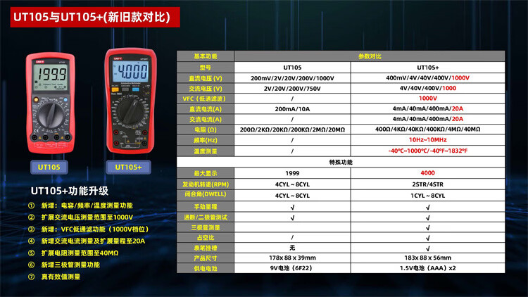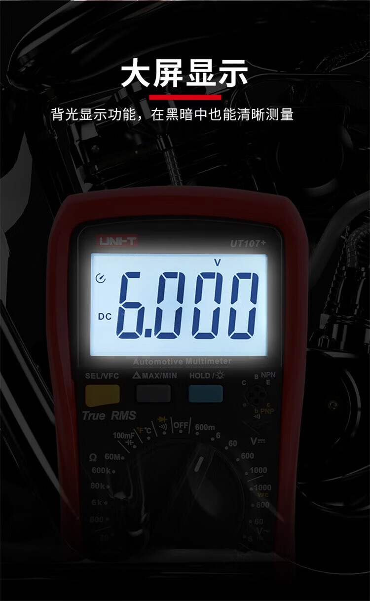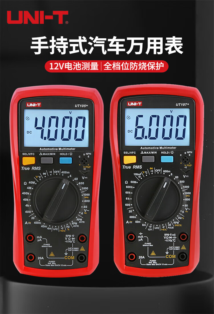 Uni-T multimeter high-precision car repair ammeter intelligent anti-burn 1000V voltmeter electrician auto repair special meter UT105+ (VFC/engine speed/closure angle