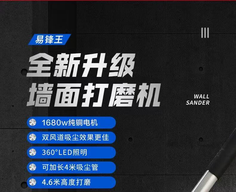 Onet wall grinder brushless long pole electric putty grinder sandpaper machine sandpaper wall grinder ultra-light self-priming dust-free double vacuum copper motor + carbon brush + sandpaper gift package