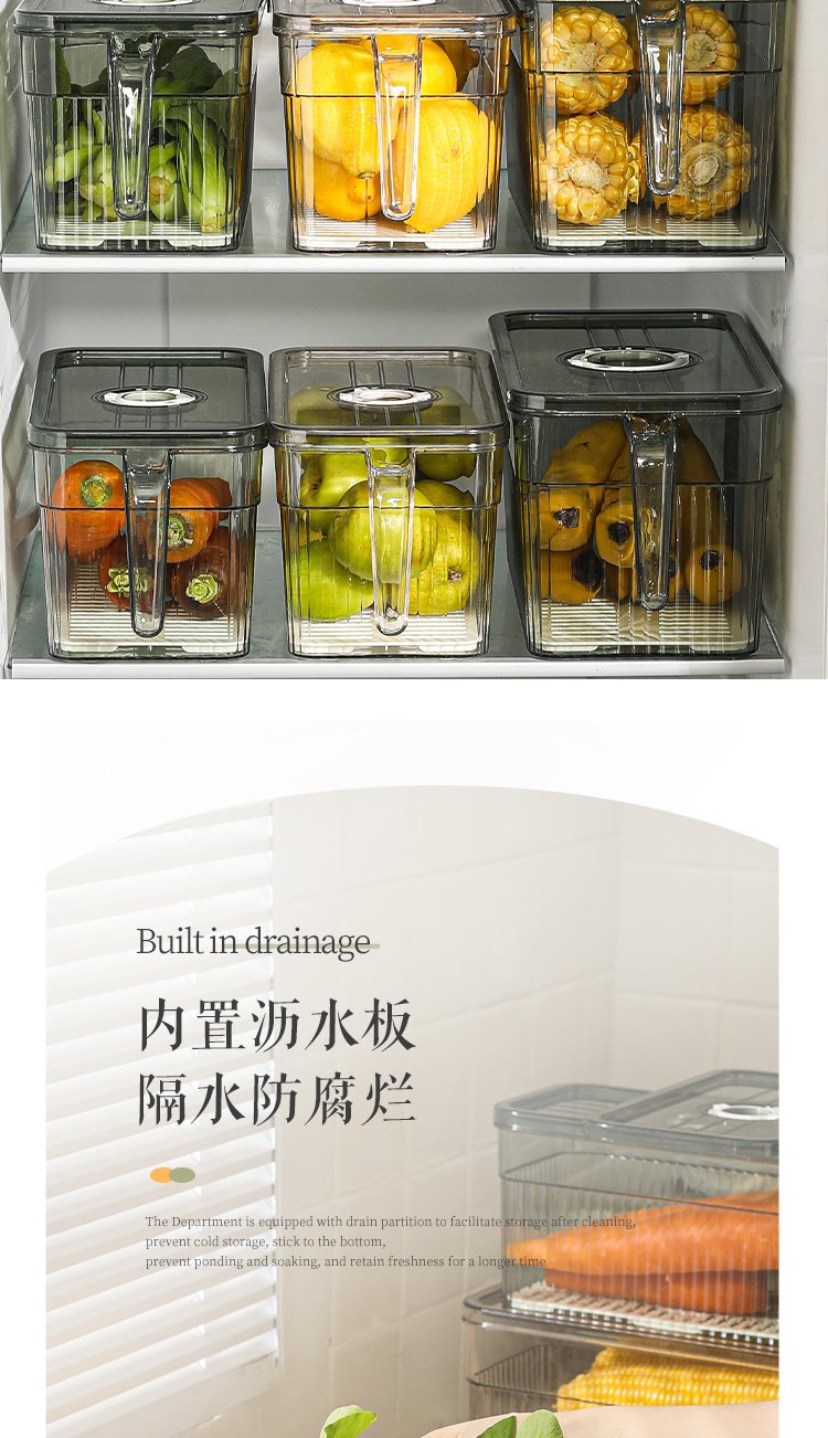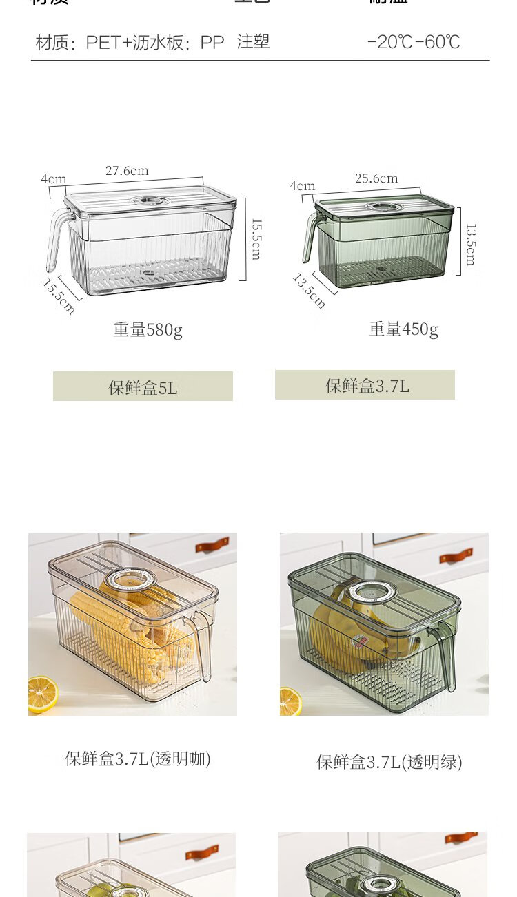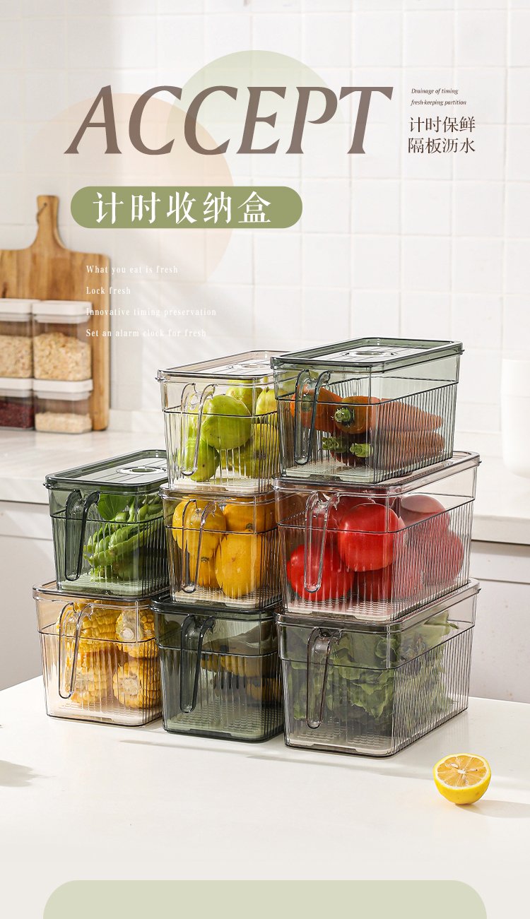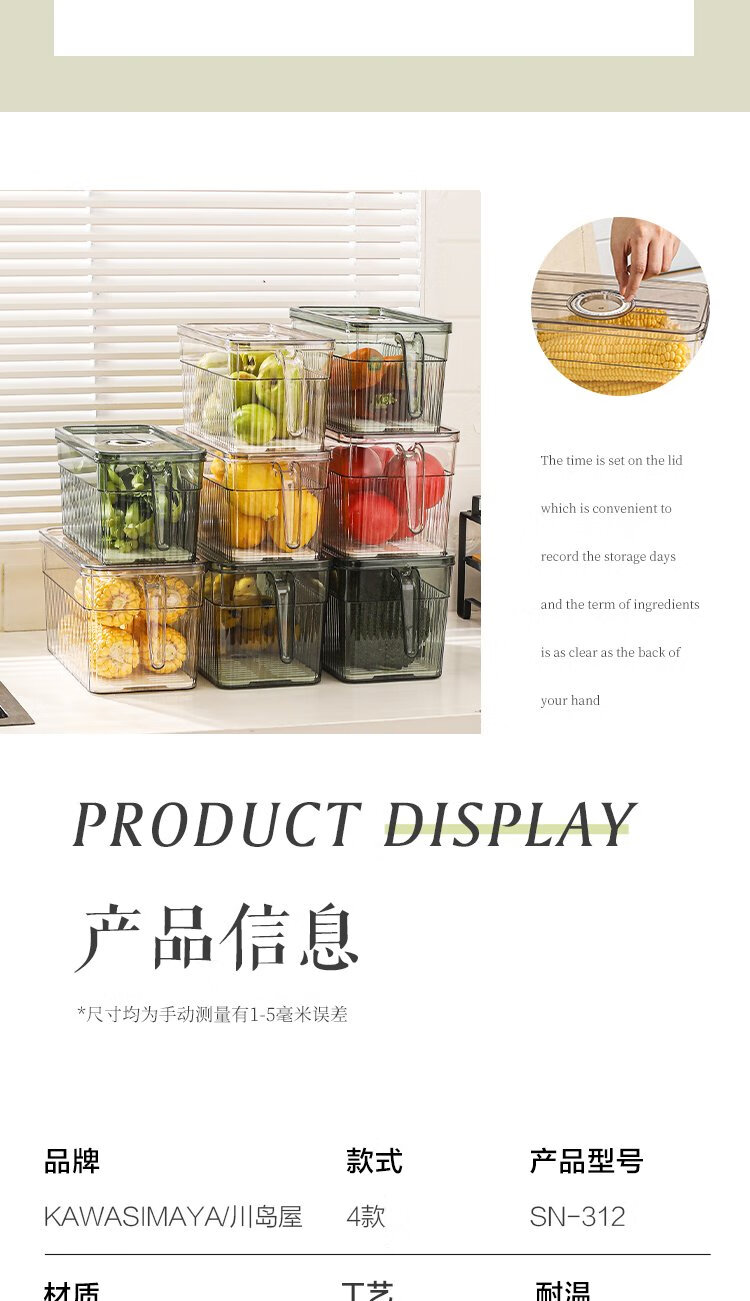 Kawashimaya refrigerator storage box, food-grade special vegetable and fruit crisper, egg box, kitchen organization artifact, crisper box 5L (transparent green) - timed freshness lock/with drain board