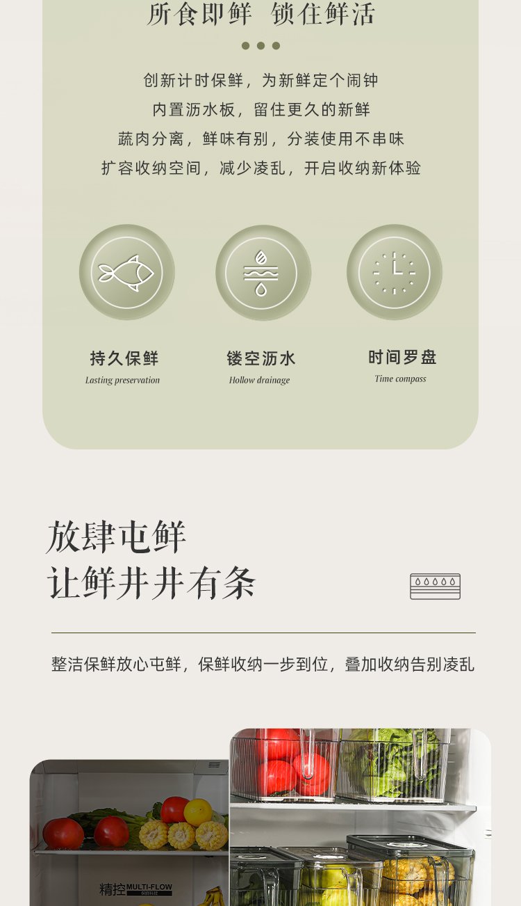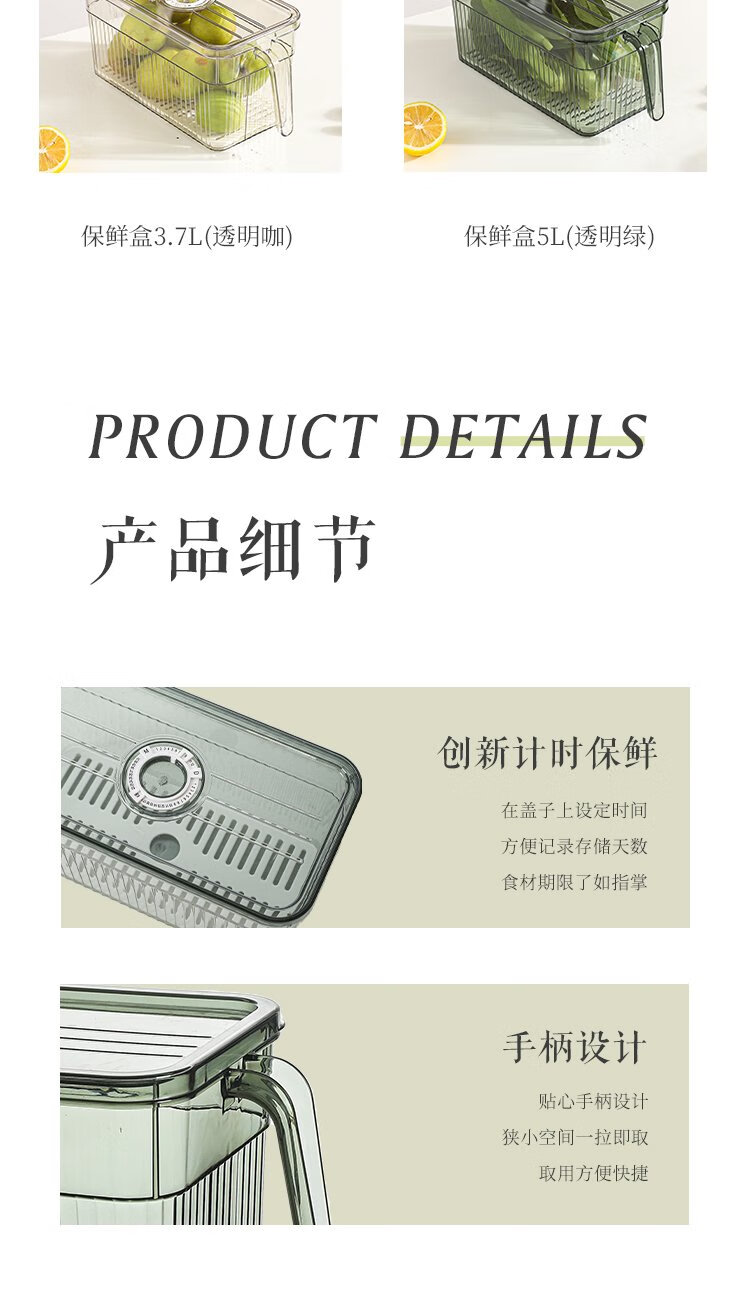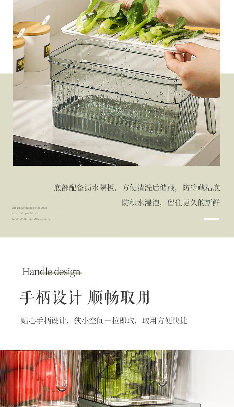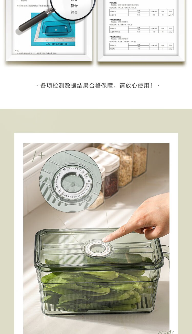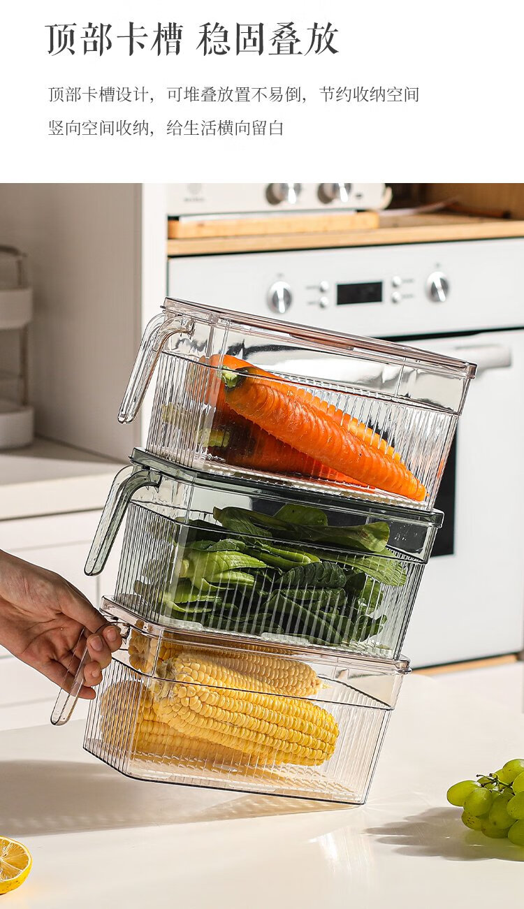 Kawashimaya refrigerator storage box, food-grade special vegetable and fruit crisper, egg box, kitchen organization artifact, crisper box 5L (transparent green) - timed freshness lock/with drain board