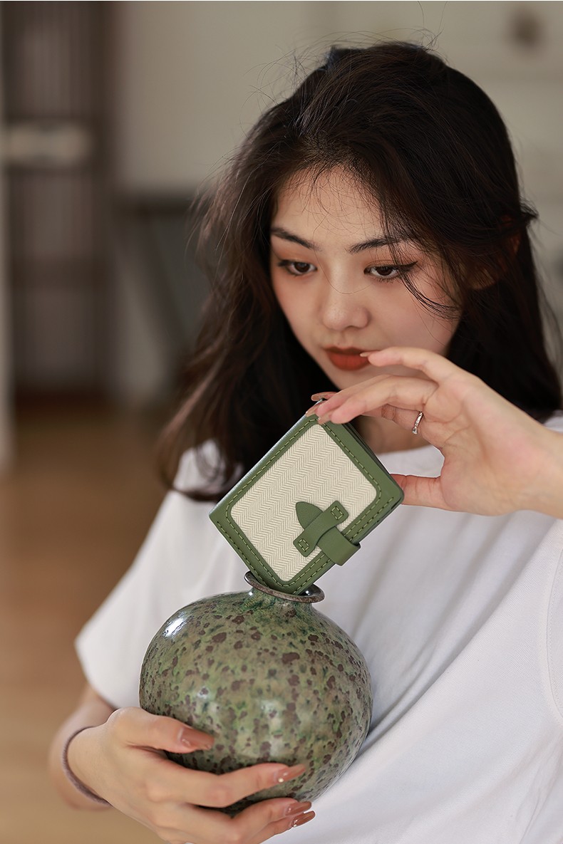 Silly Xiaoyu New Year's Valentine's Day gift for girlfriend's birthday short wallet card bag genuine leather coin purse diy handmade material bag green