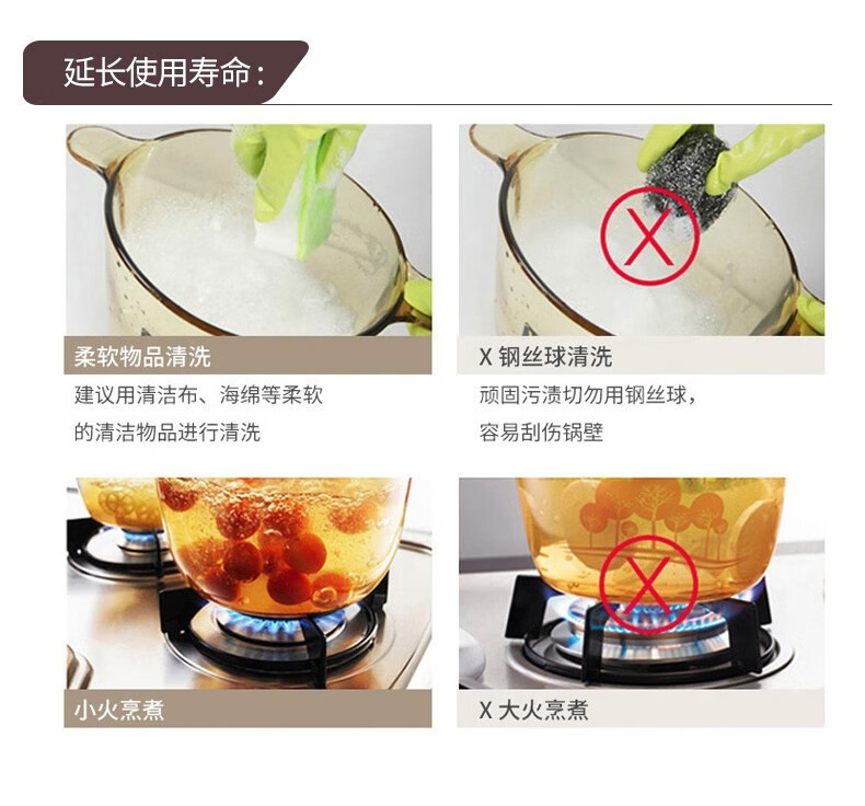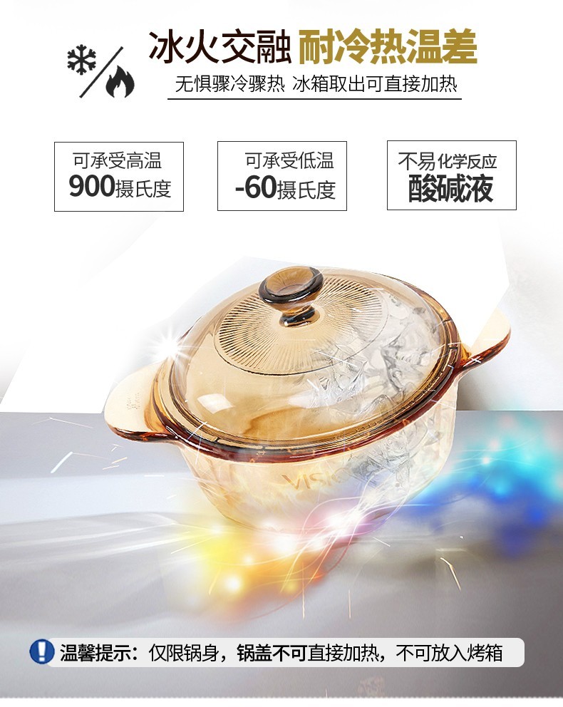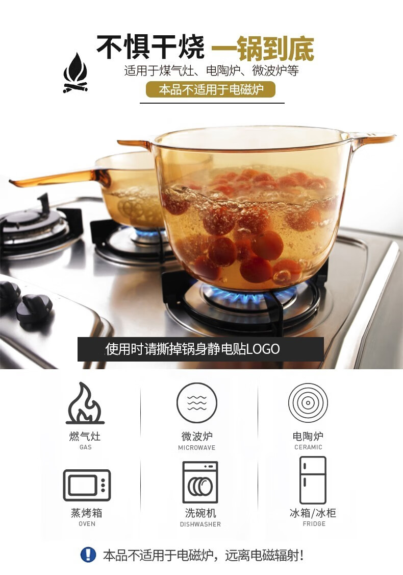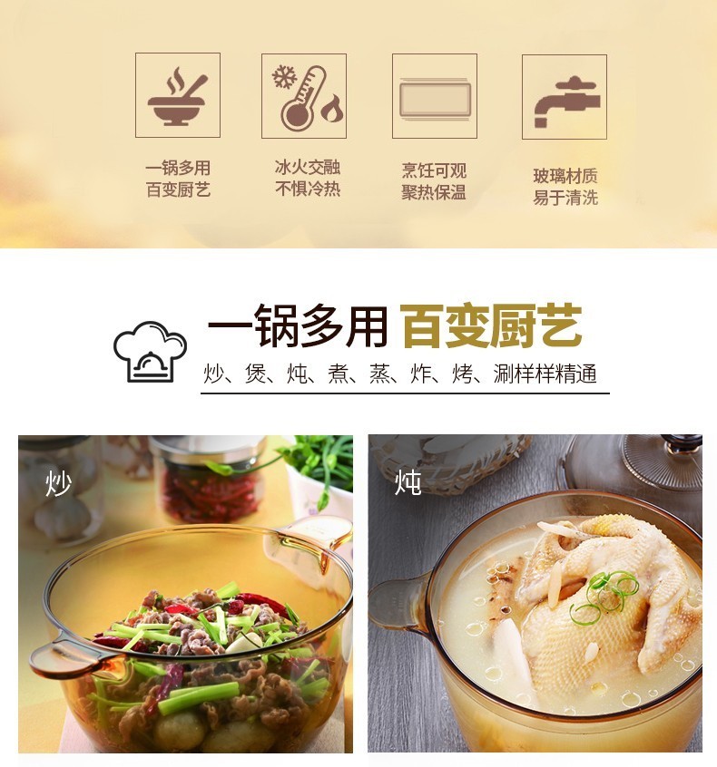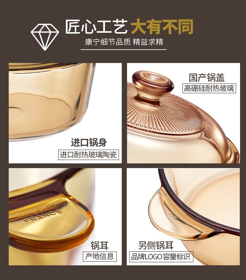 Corning (VISIONS) imported glass pot from the United States, single-handle deep soup pot combination open flame direct burning and high temperature resistance for home use (1.6L single handle + 3.5L double ears) 2-piece set