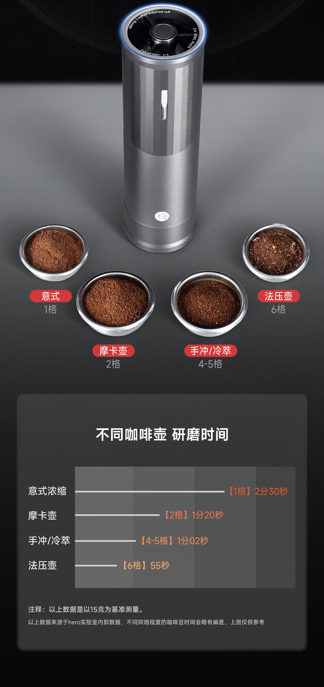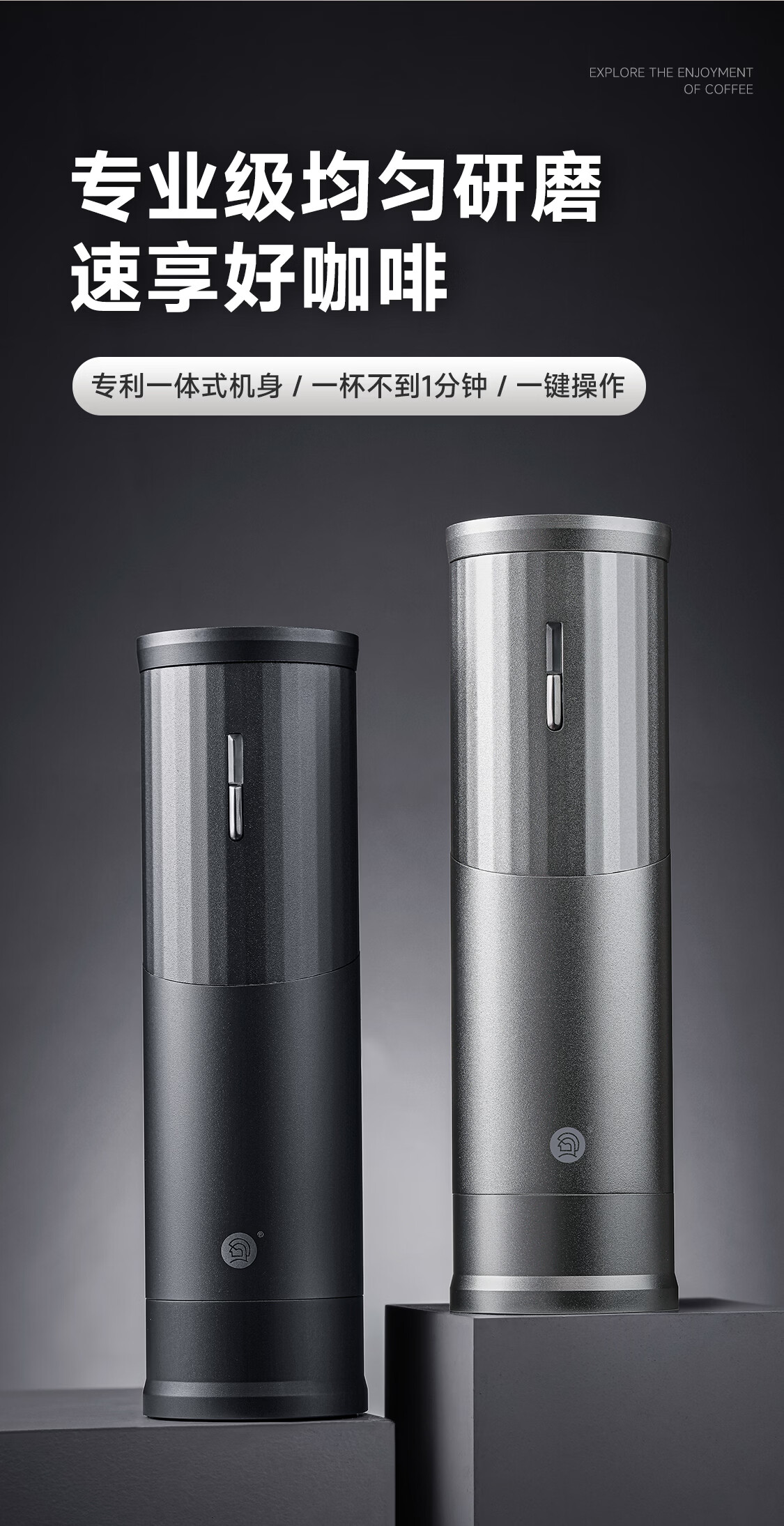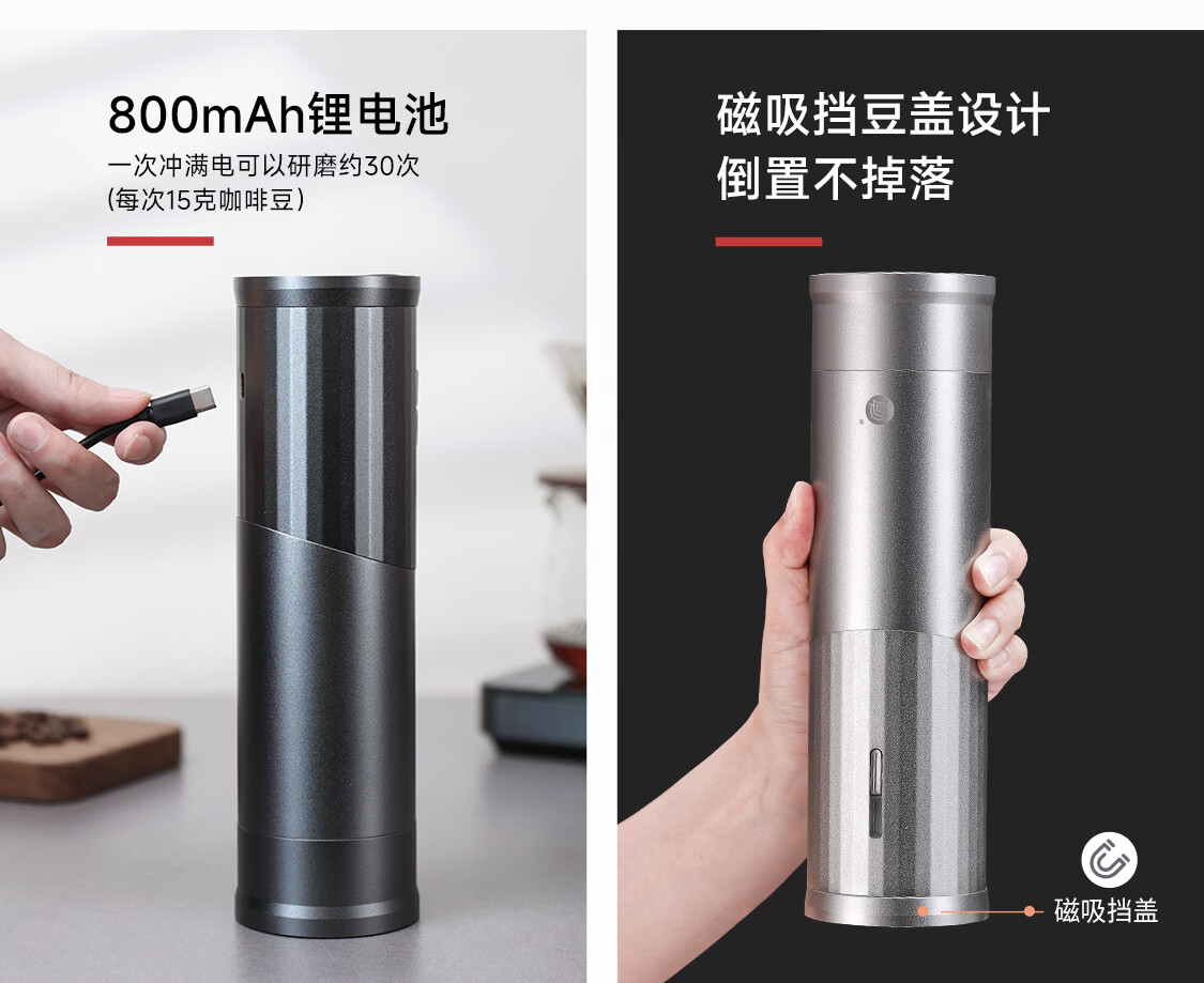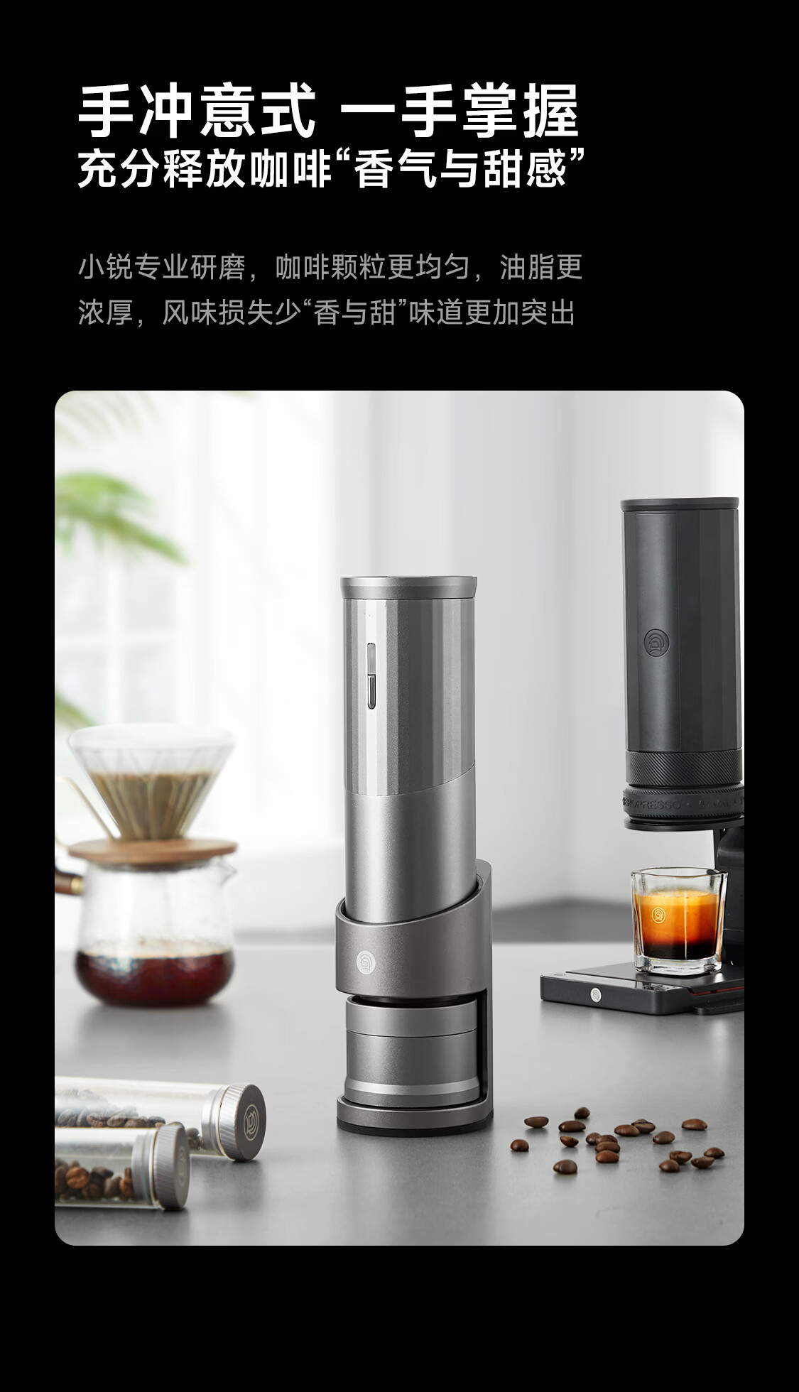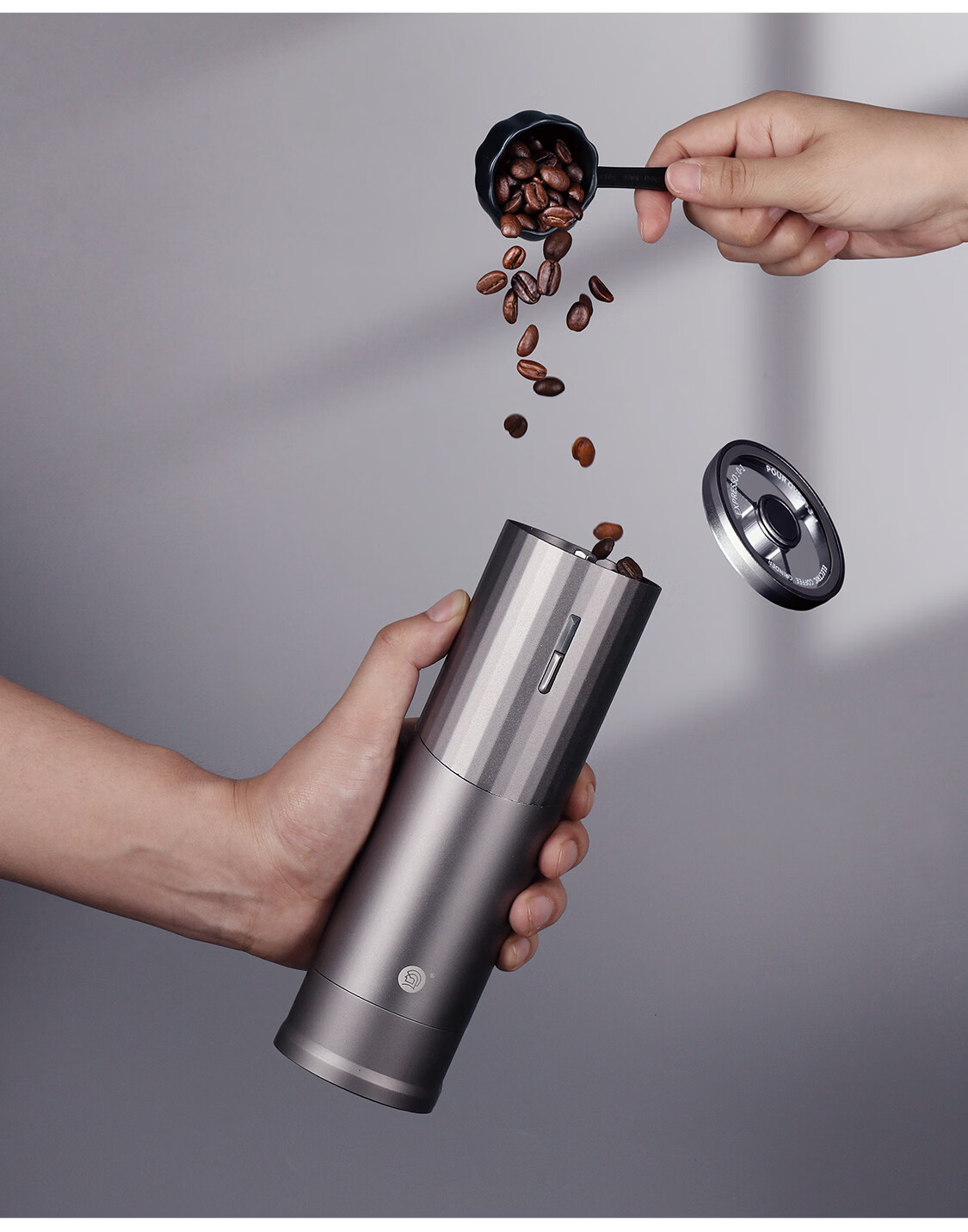 Hero Xiaorui Electric Bean Grinder Portable Coffee Bean Grinder Outdoor Rechargeable Automatic Coffee Grinder Xiaorui Electric Bean Grinder-Gun Gray Comes with Bracket