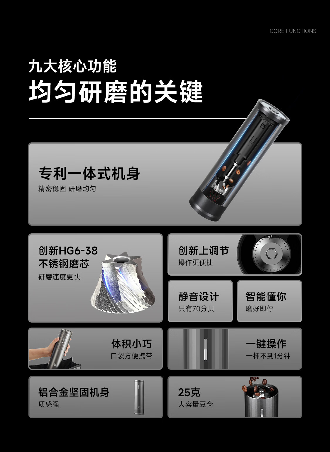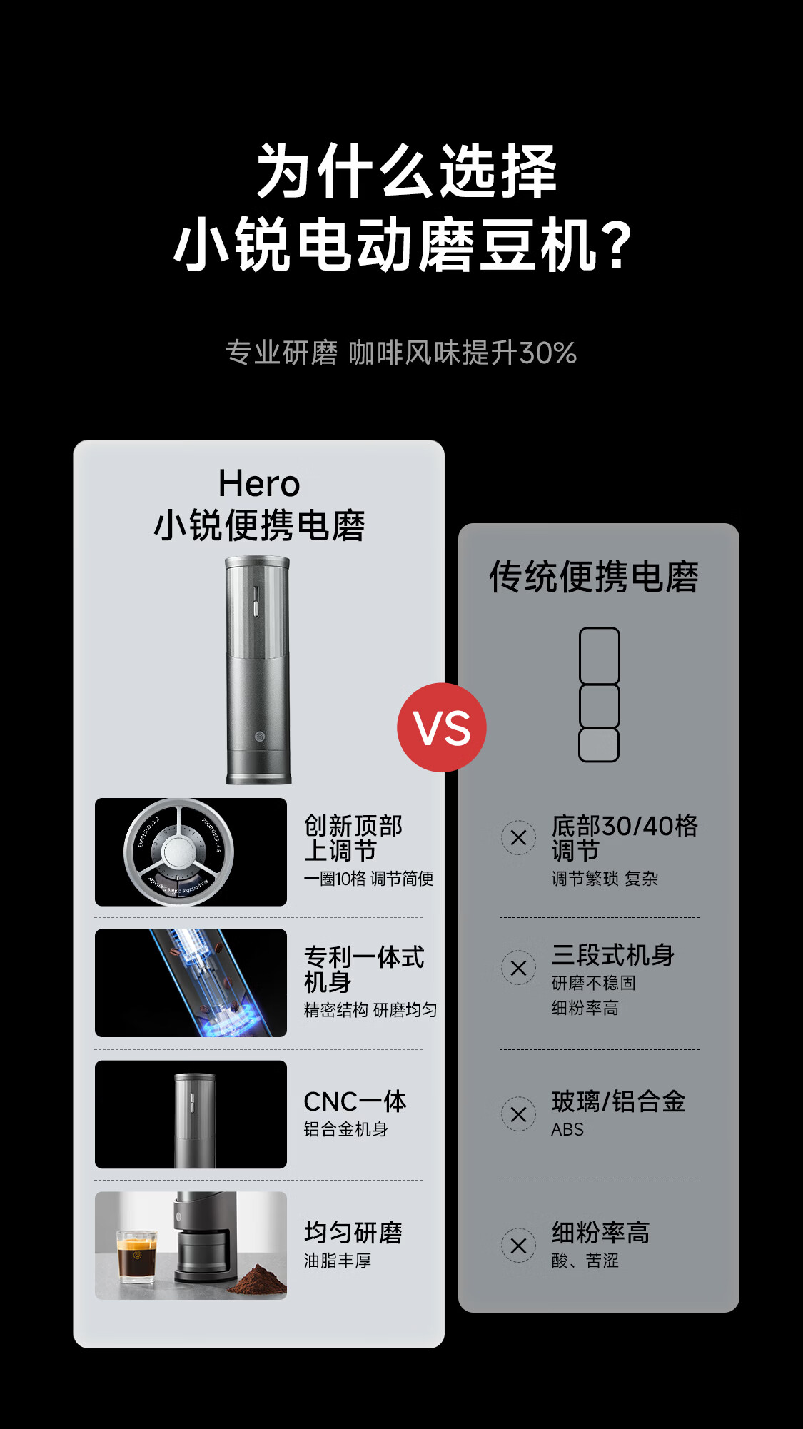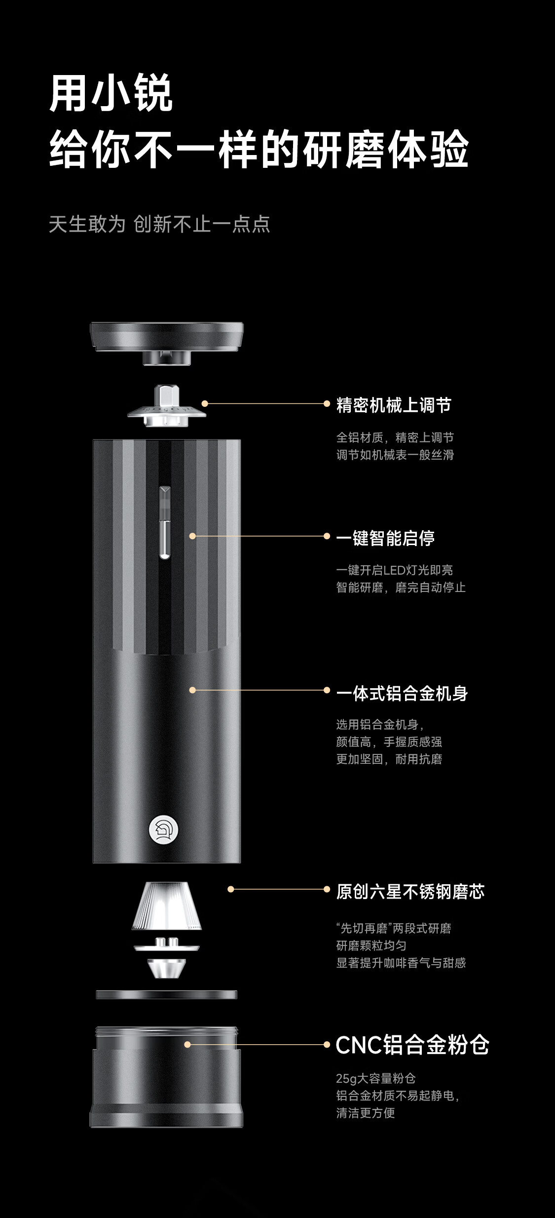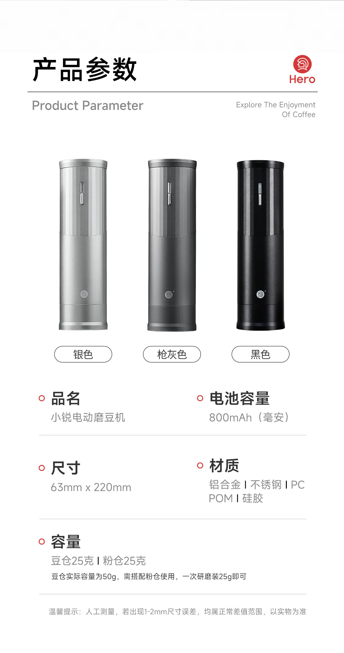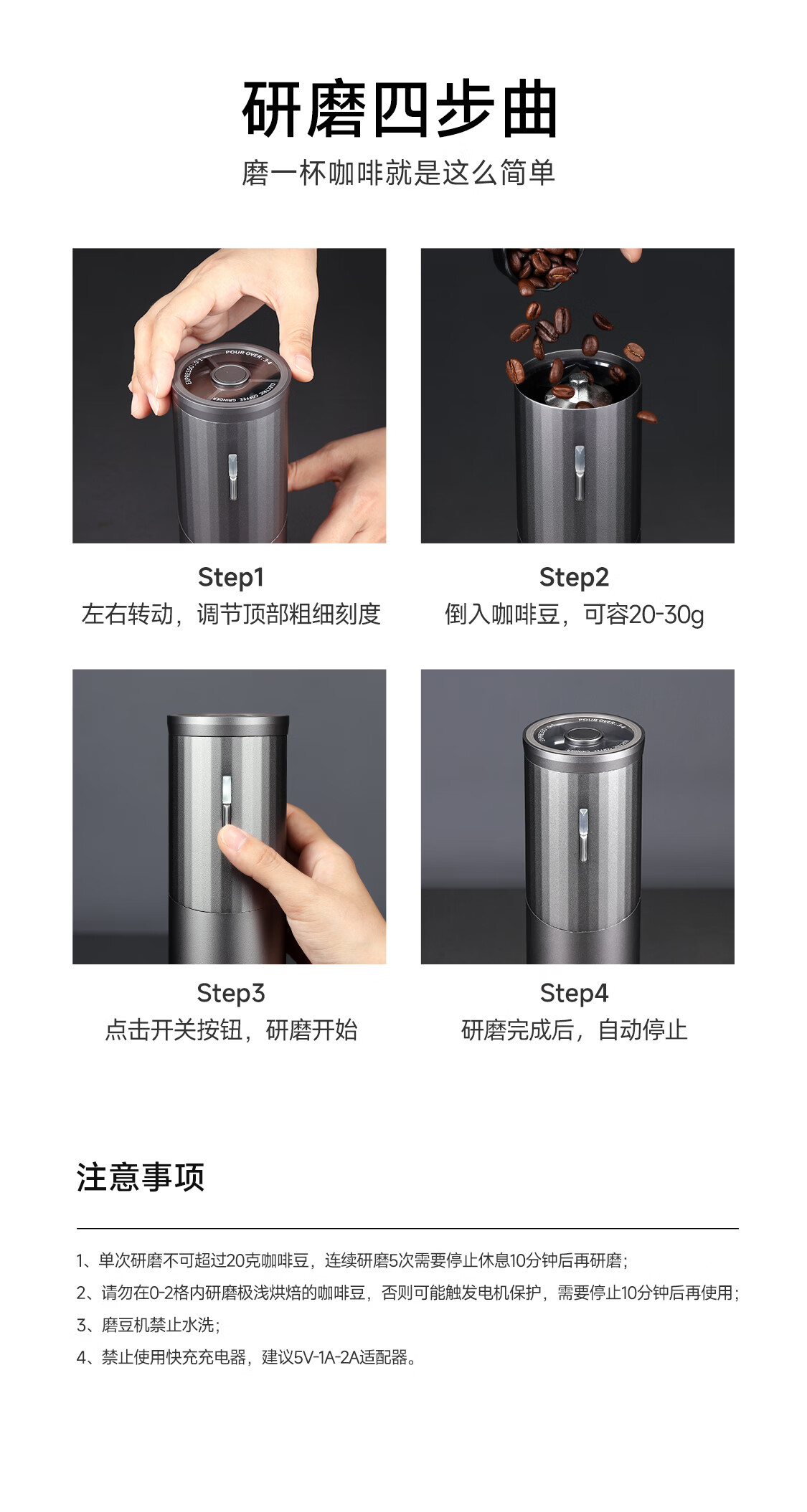 Hero Xiaorui Electric Bean Grinder Portable Coffee Bean Grinder Outdoor Rechargeable Automatic Coffee Grinder Xiaorui Electric Bean Grinder-Gun Gray Comes with Bracket