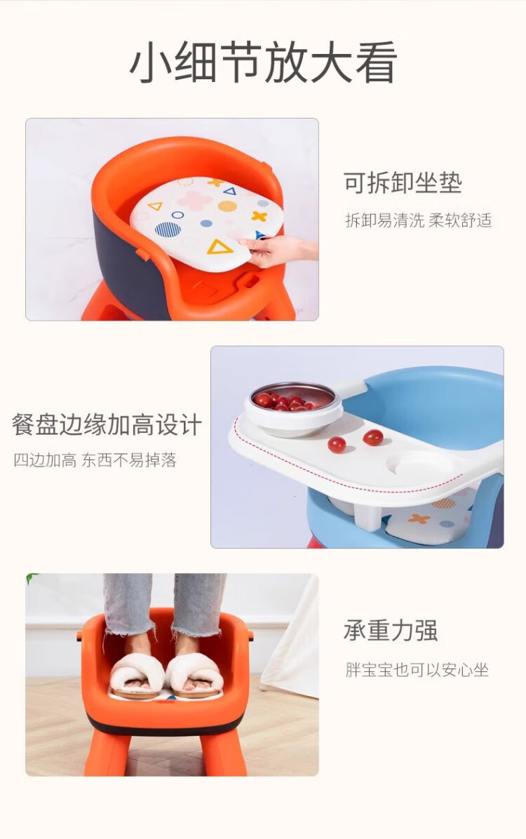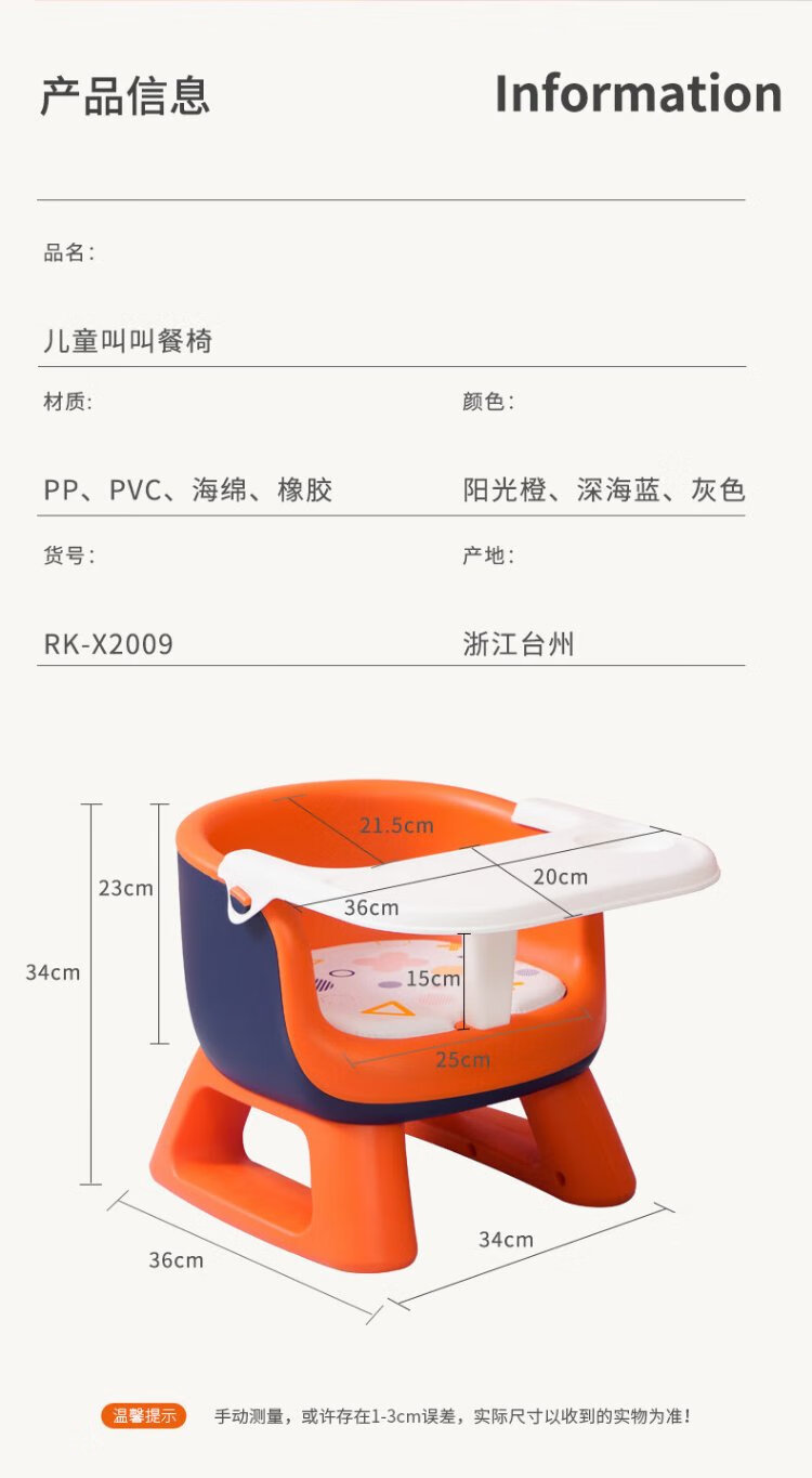 Rikang baby dining chair home dining table and chair baby screaming chair seat eating chair children's backrest small chair sound chair without dinner plate blue