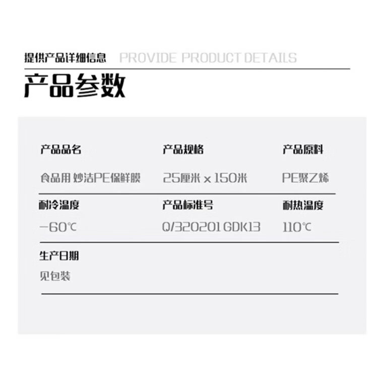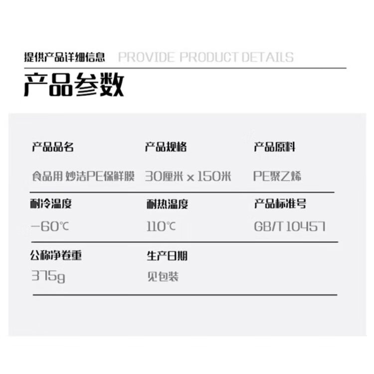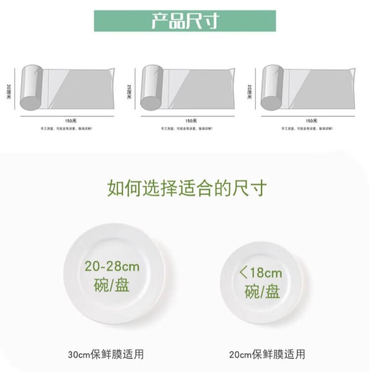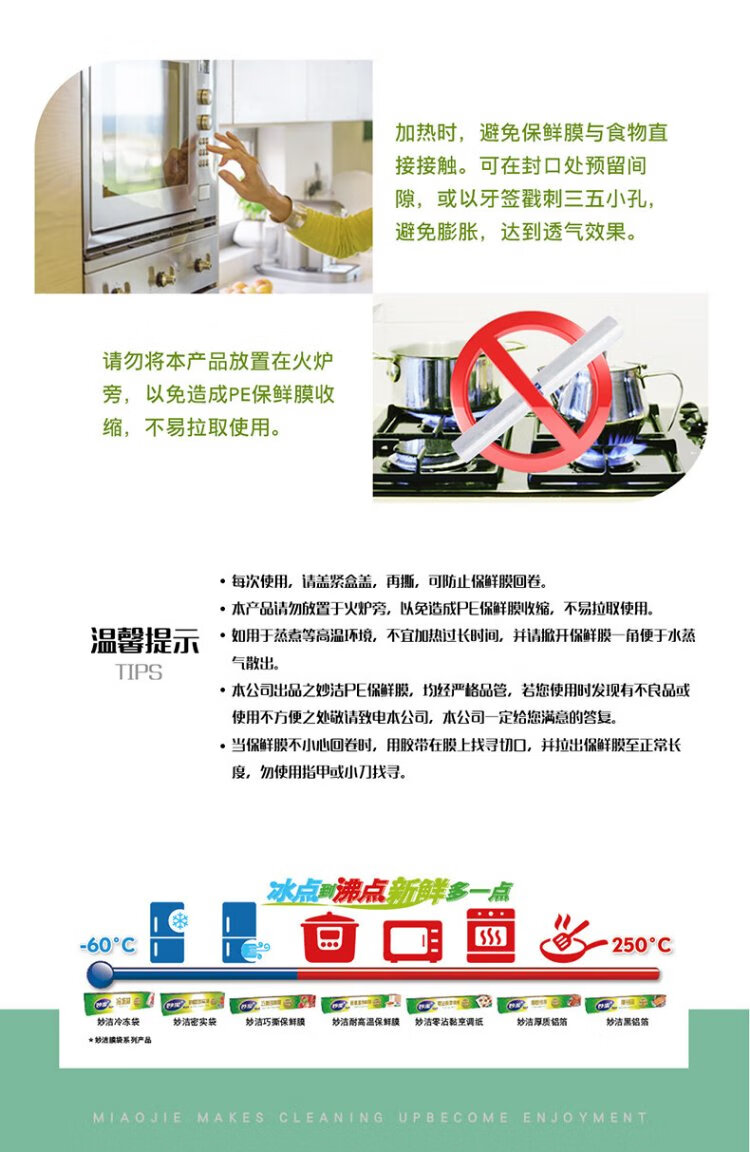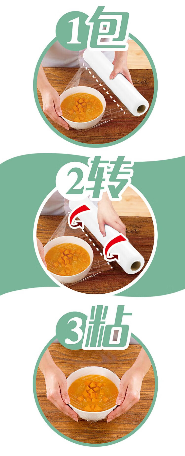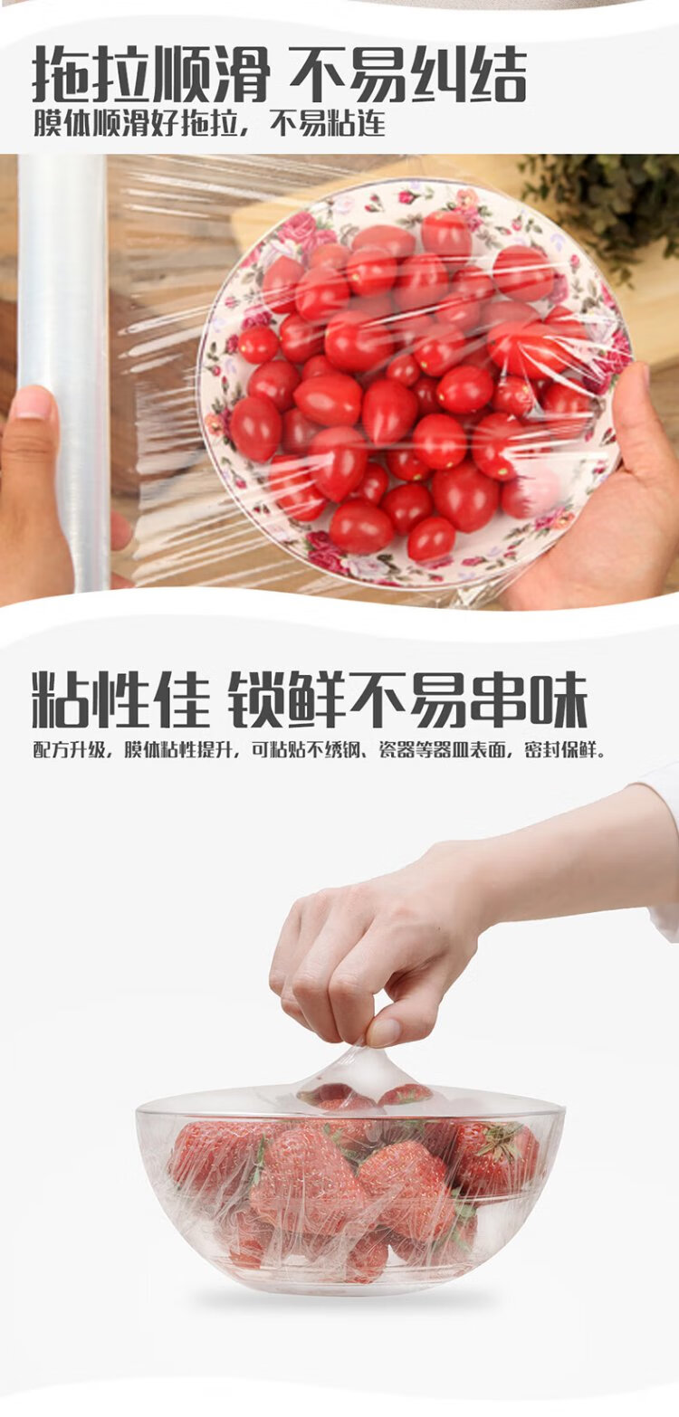 MIAOJIE disposable knife-free tear-off point-breaking hand-tearable cling film PE food-grade household kitchen microwave oven economical medium bowl 25cm 100 meters