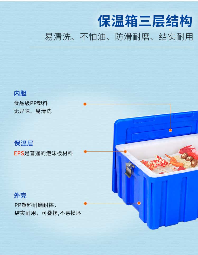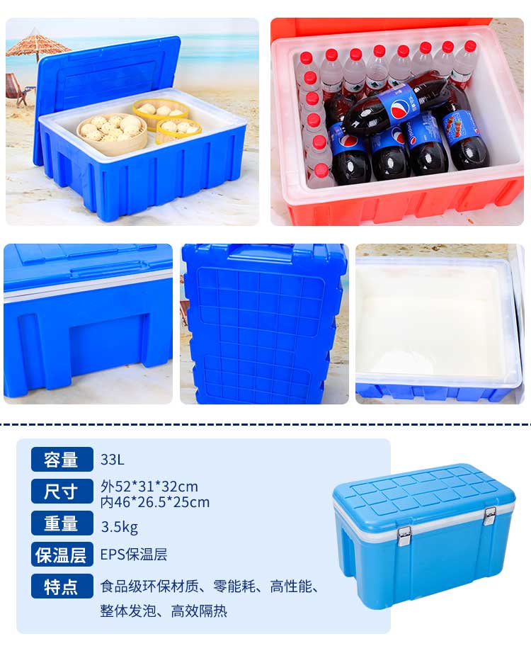 Warm Ice Bear 33-85L Food Grade Takeaway Insulated Box Commercial Food Delivery Stall Fast Food Thermal Insulation Plastic Foam Refrigerated Fresh Box 33L Blue