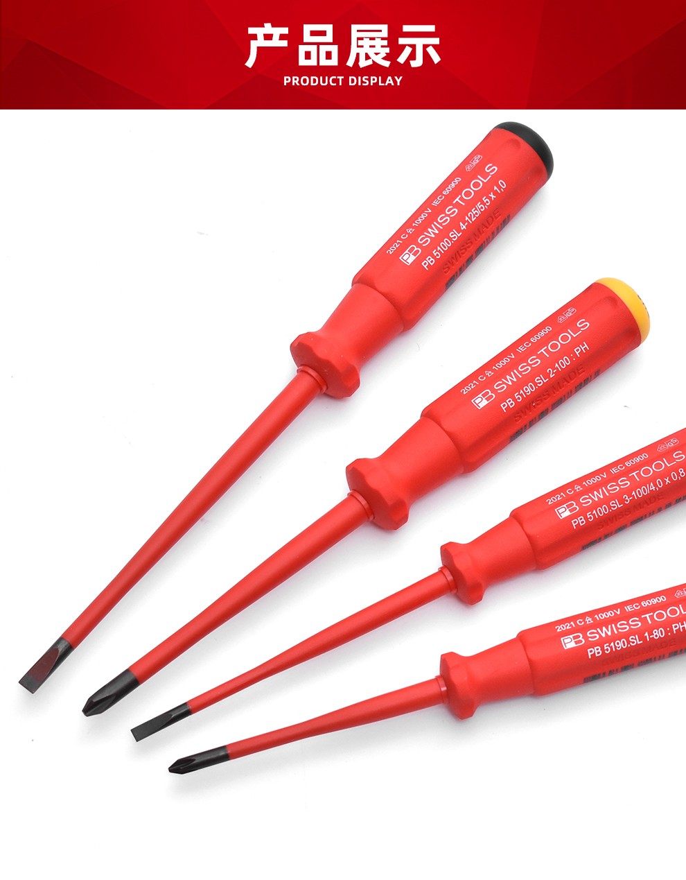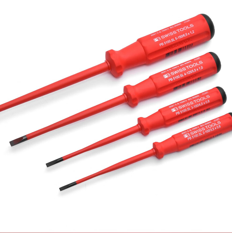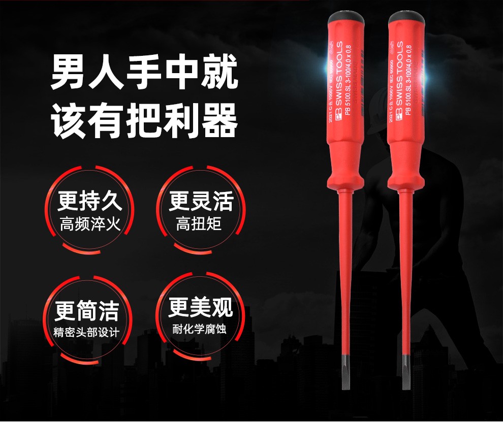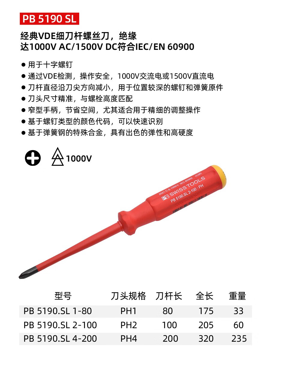 PB SWISSTOOLS imported cross-shaped insulated screwdriver with high voltage resistance 1000V electrician professional thin rod screwdriver set cross PH1*80mm