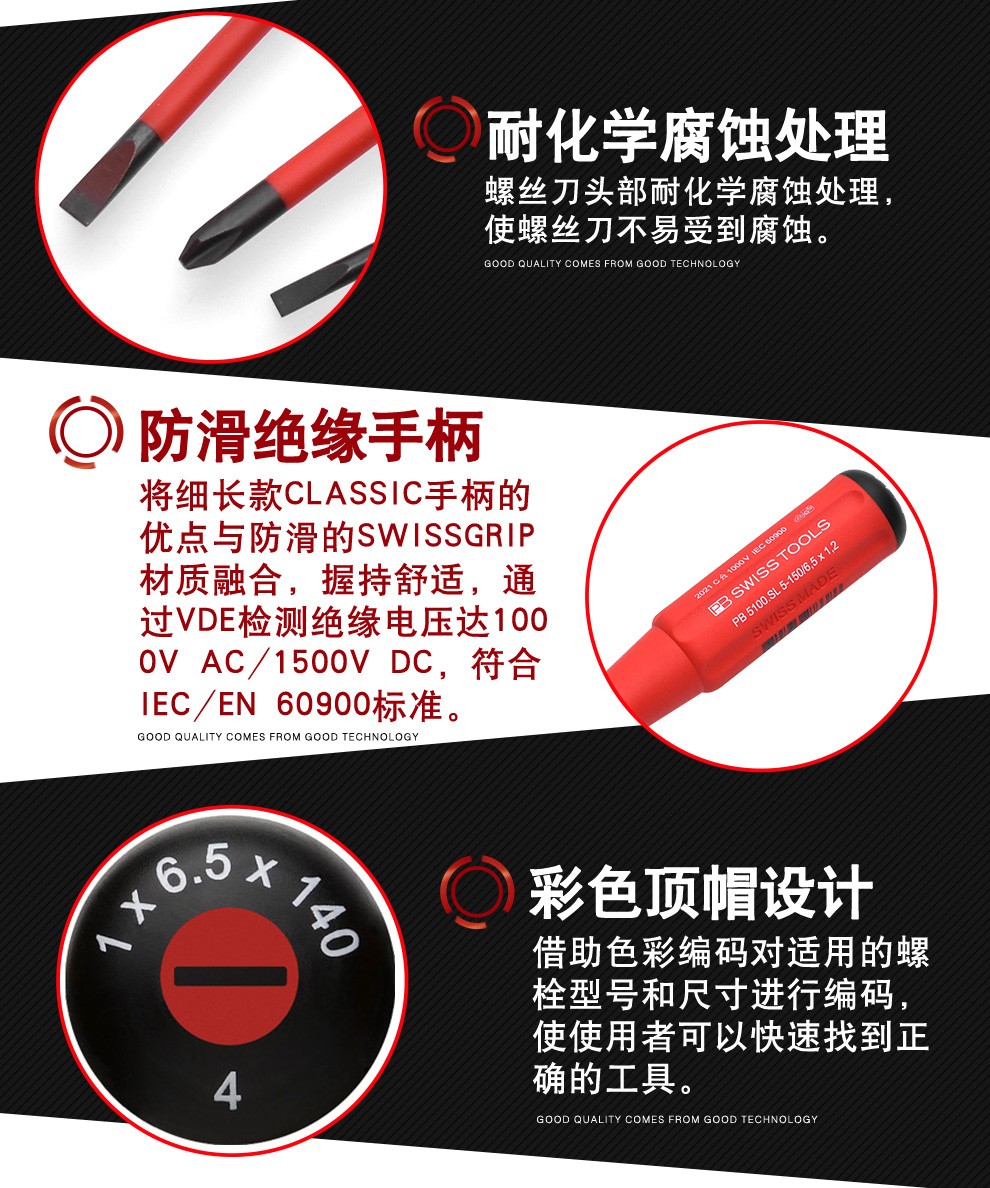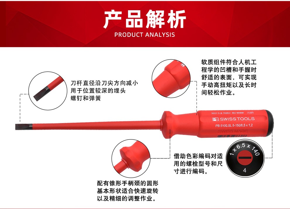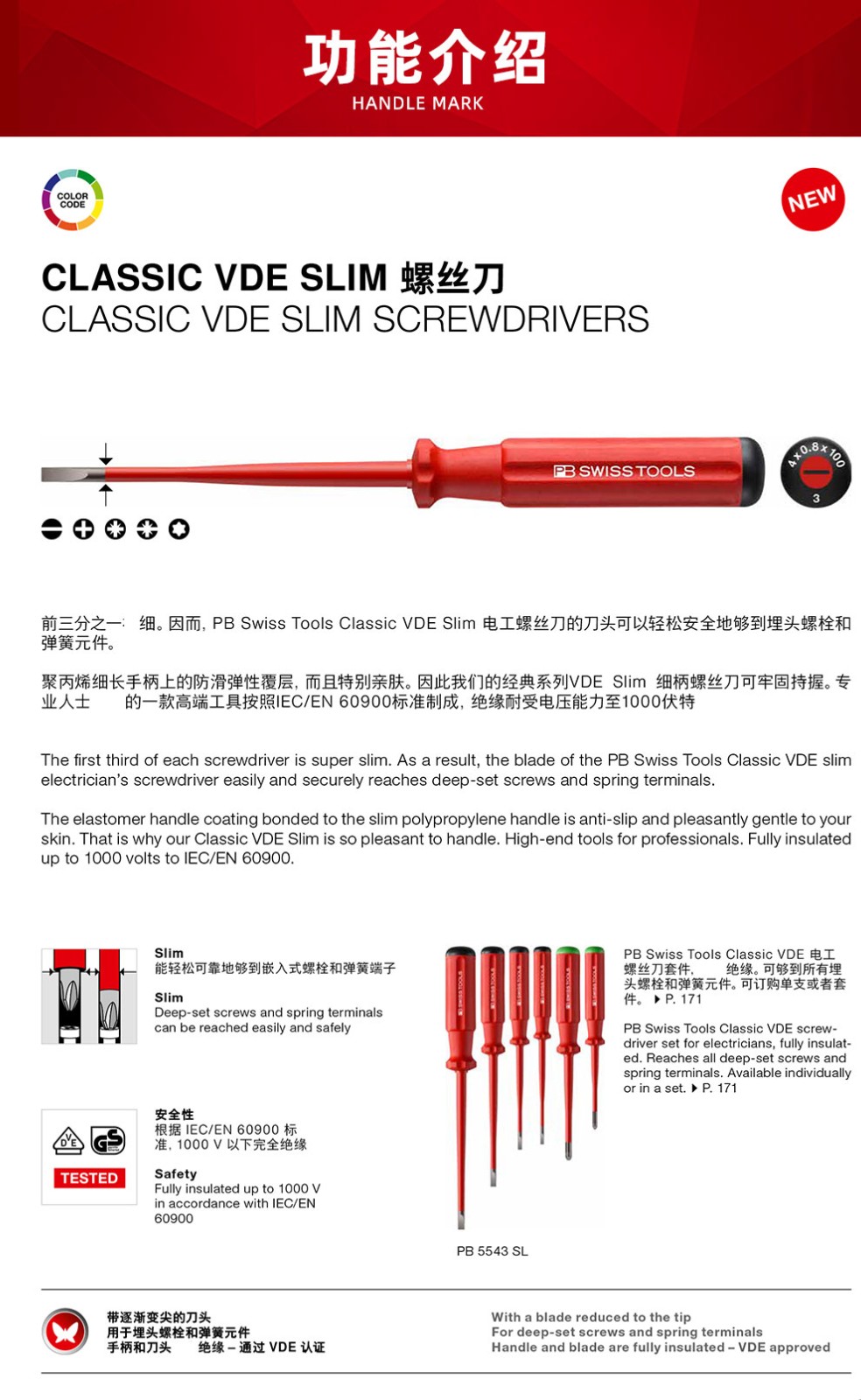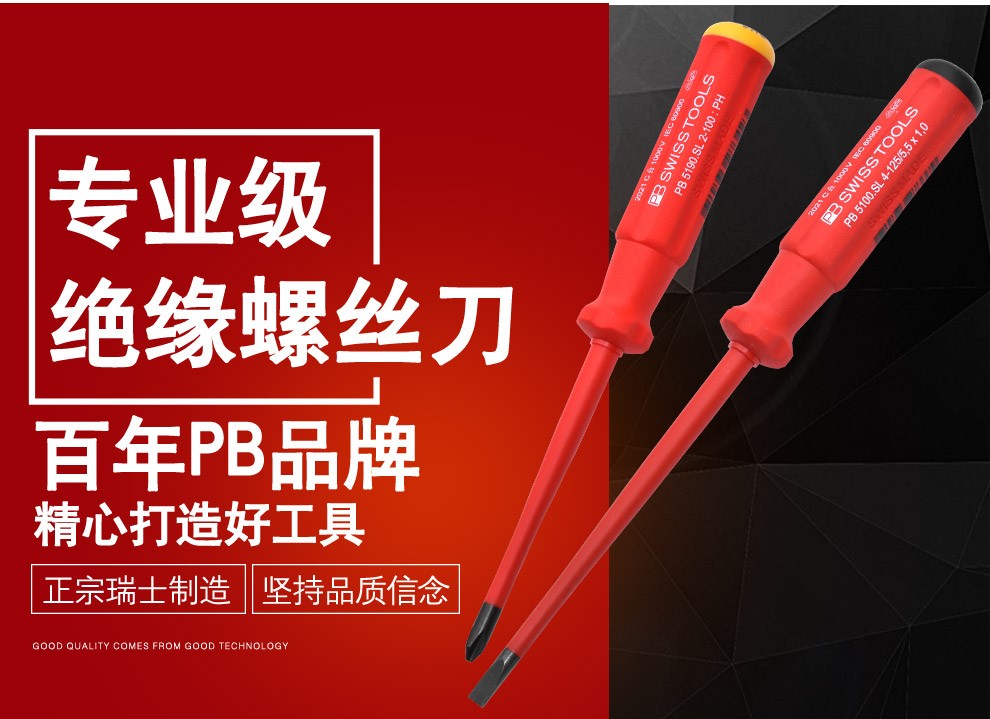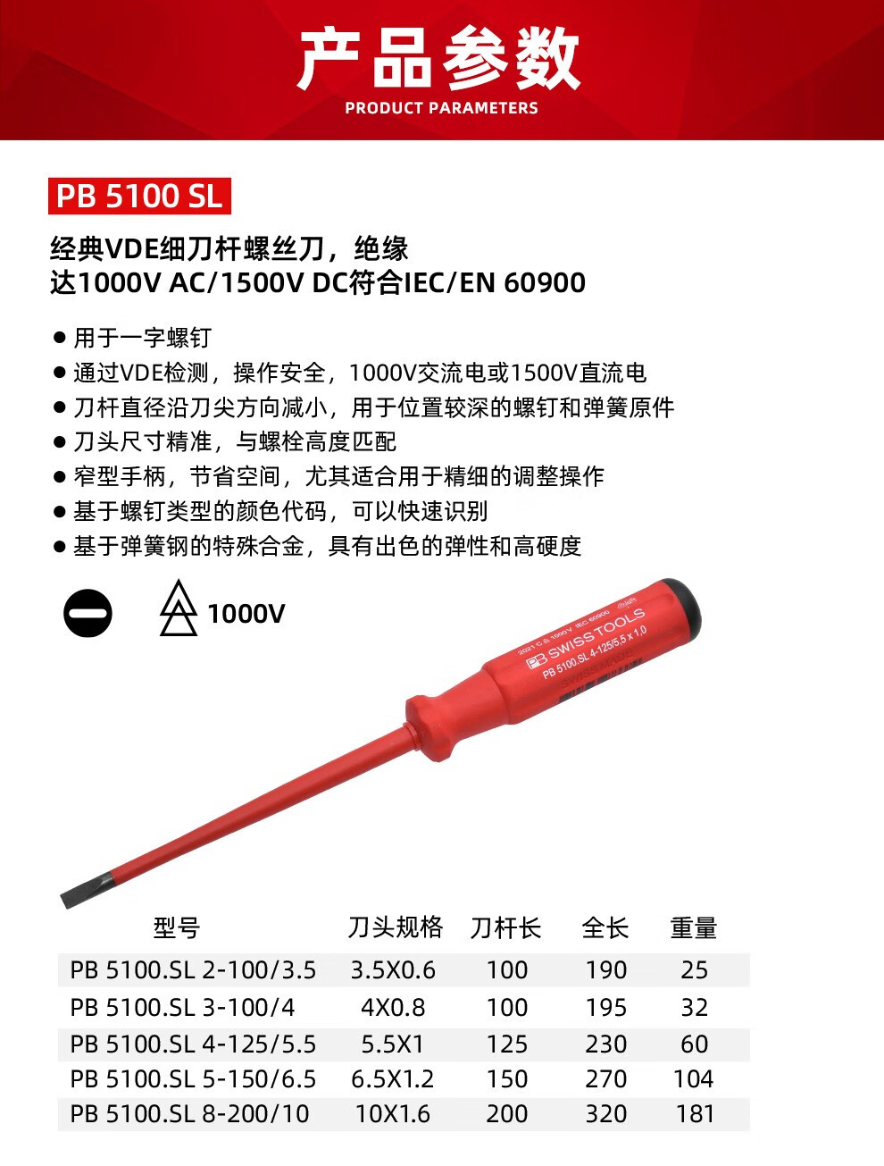 PB SWISSTOOLS imported cross-shaped insulated screwdriver with high voltage resistance 1000V electrician professional thin rod screwdriver set cross PH1*80mm
