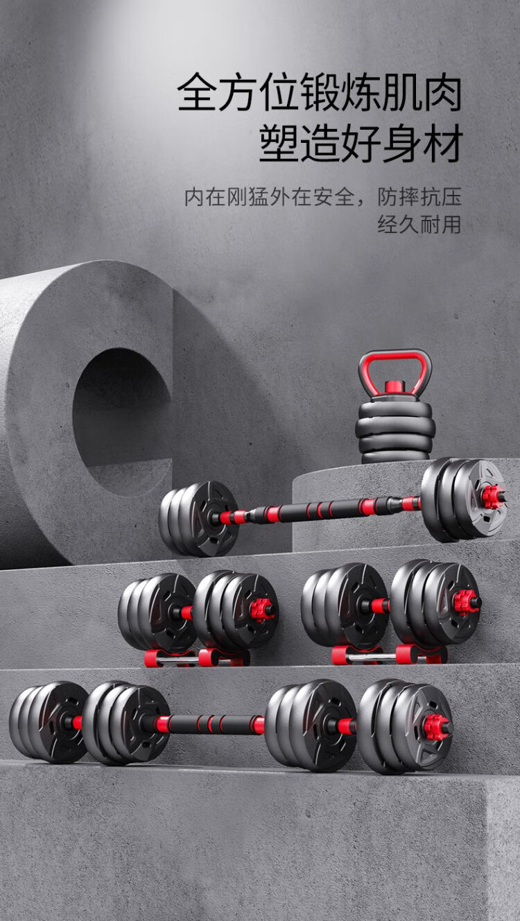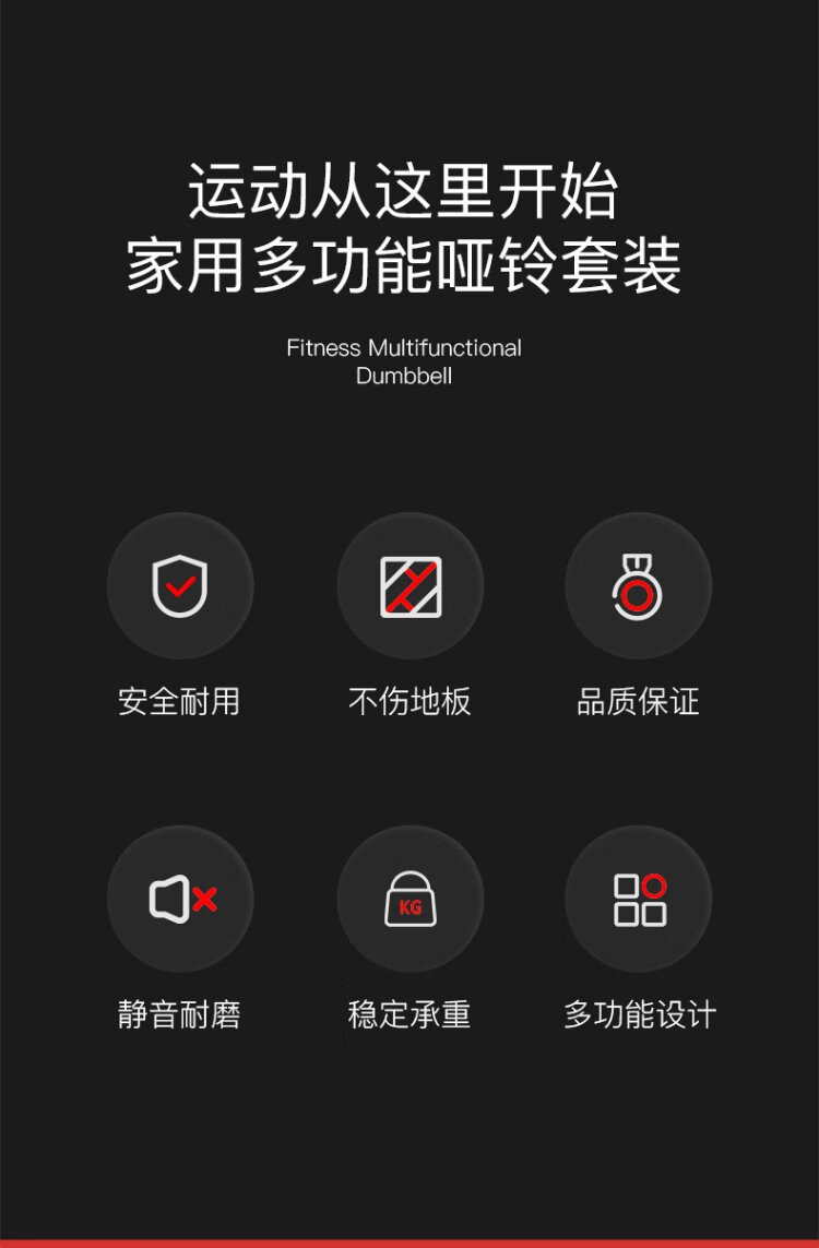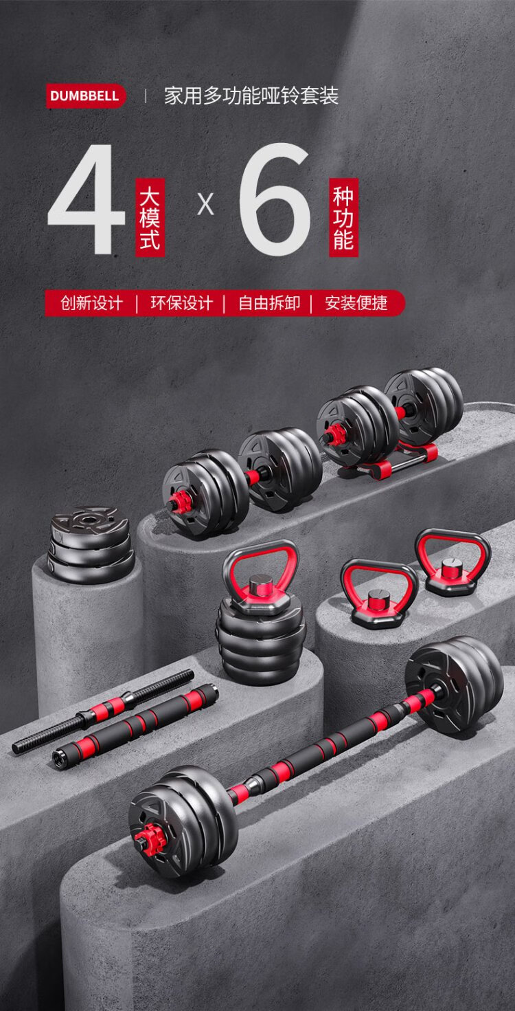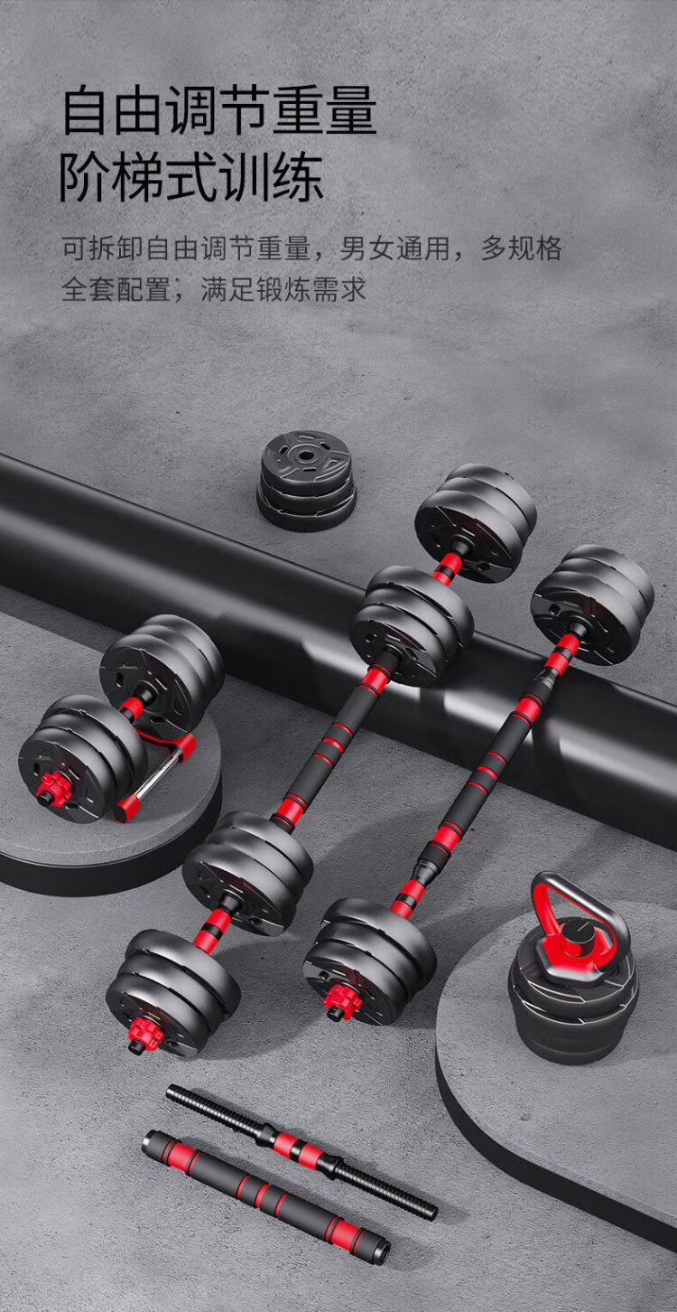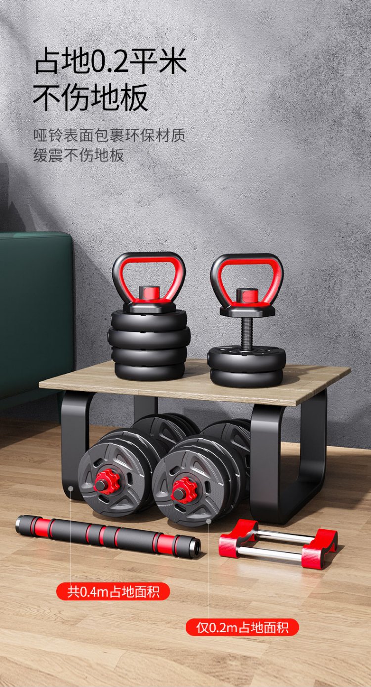 OUNAIDE dumbbell men's fitness household environmentally friendly barbell kettlebell set adjustable weightlifting beginners removable Yaling classic model 20 pounds a pair + seven-fold gift