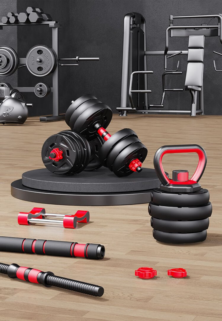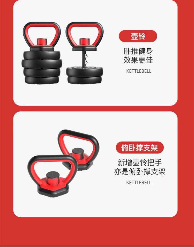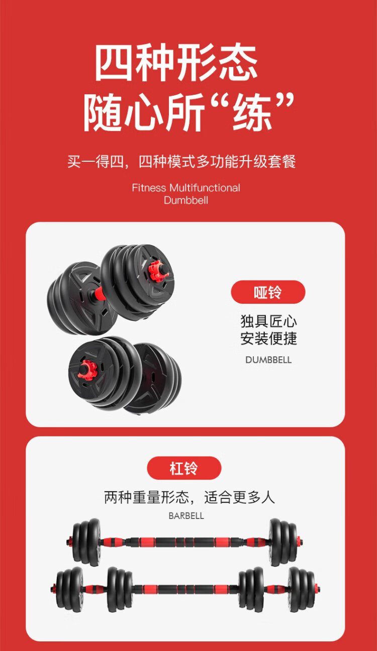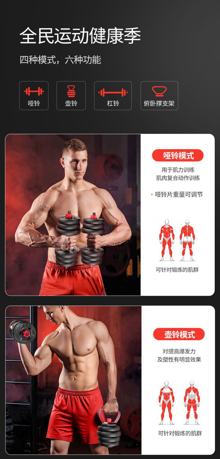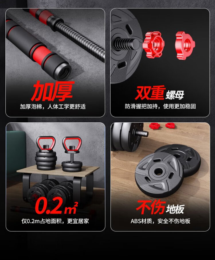 OUNAIDE dumbbell men's fitness household environmentally friendly barbell kettlebell set adjustable weightlifting beginners removable Yaling classic model 20 pounds a pair + seven-fold gift