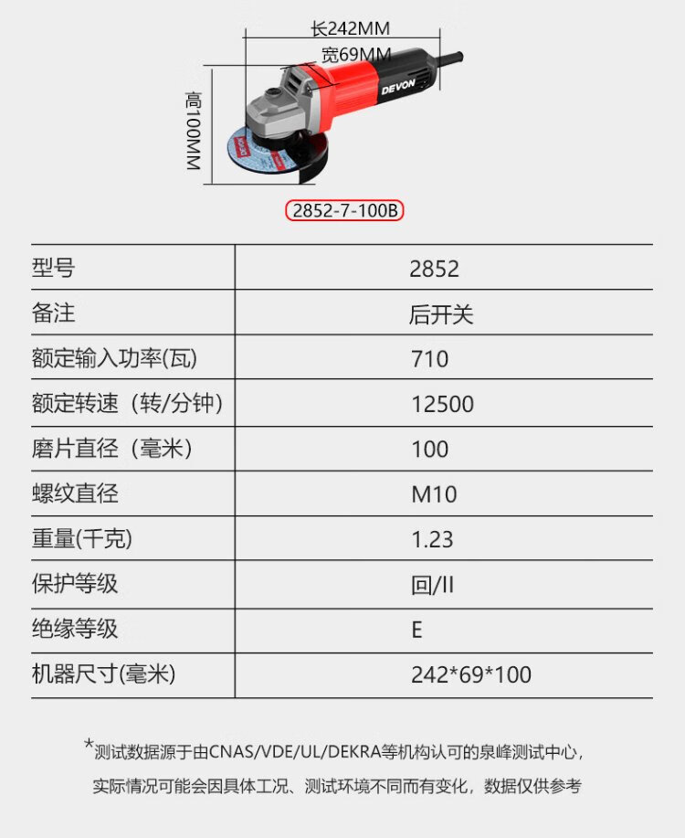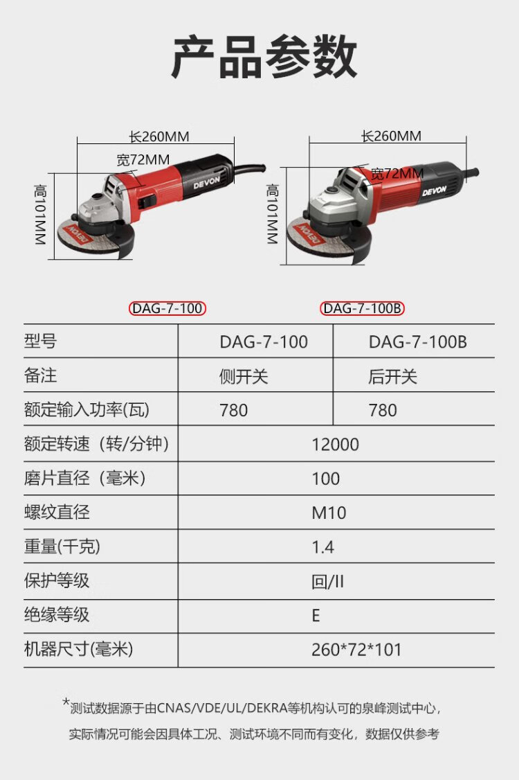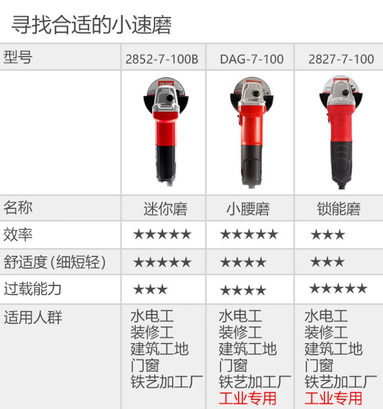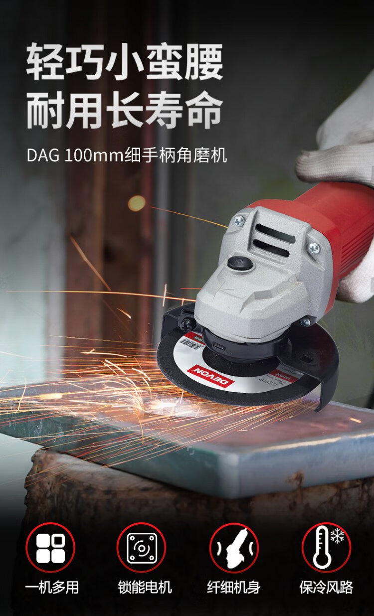 Devon industrial grade angle grinder DAG7 multi-function 100mm fine handle grinder grinder polisher cutting machine 710W side switch standard