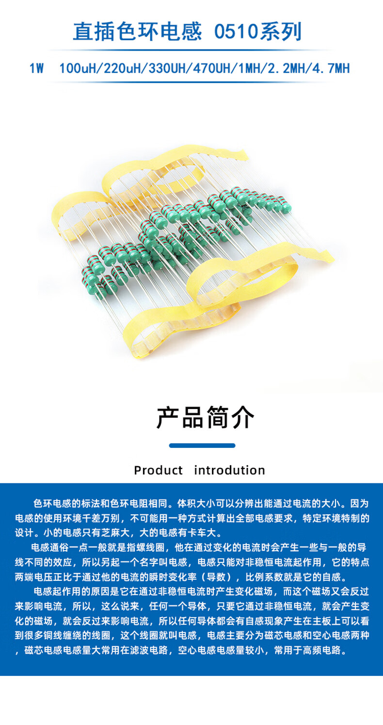 PAKAN 0510 color code inductor color ring 1W 100/220/330/470/680uH/4.7MH 0510 3.3MH (50 pieces)