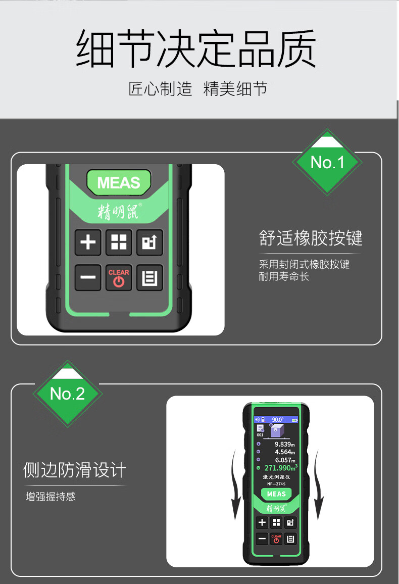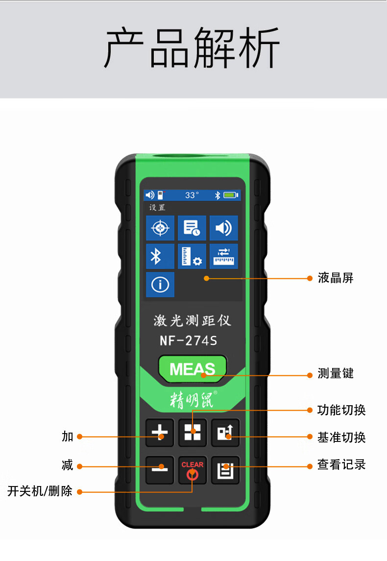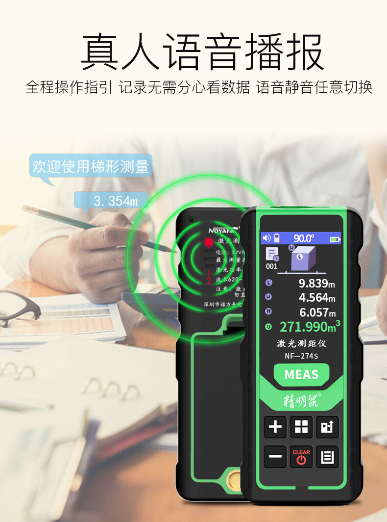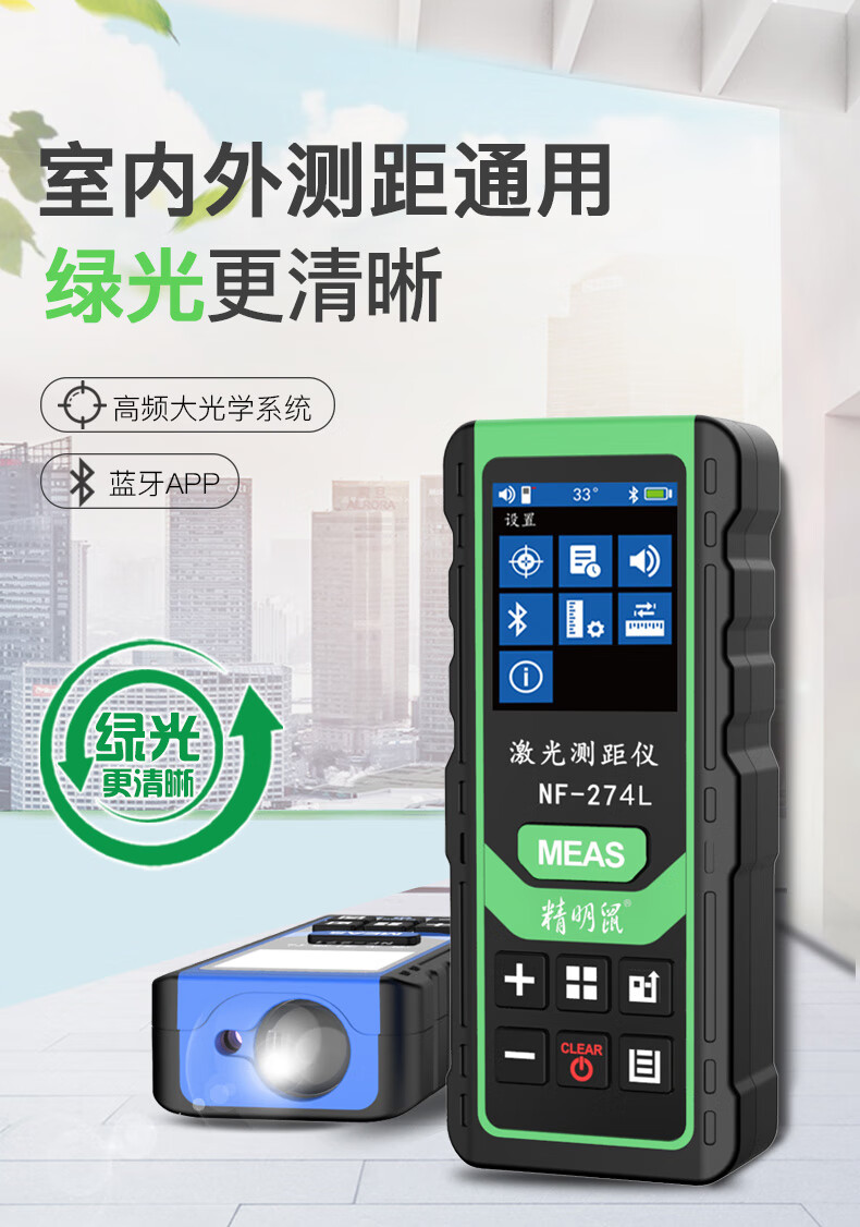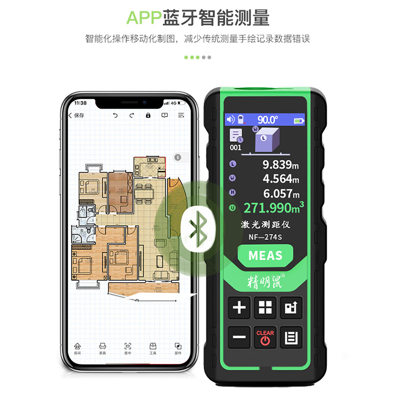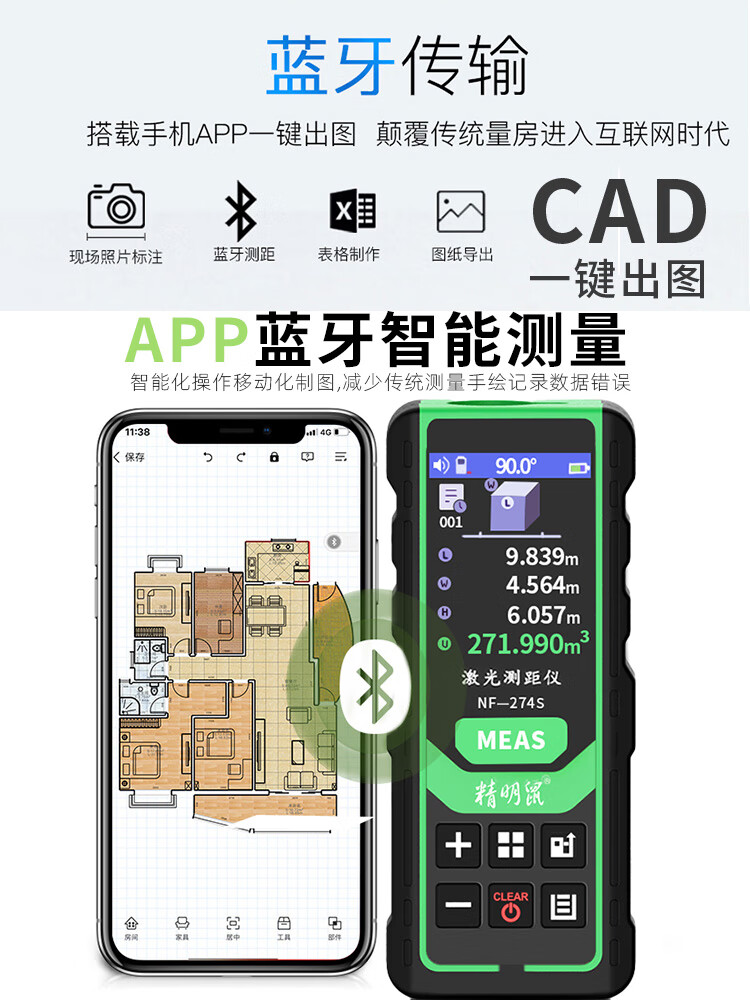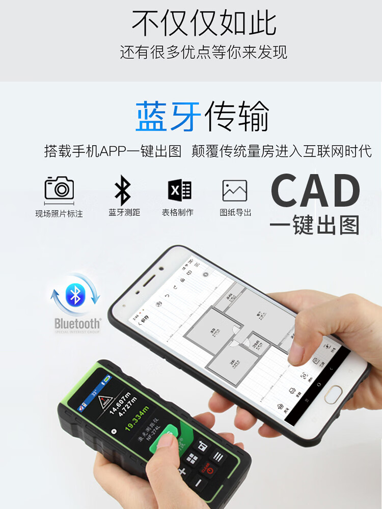 Smart Mouse Laser Distance Meter Outdoor Green Light Handheld Infrared Measuring Ruler Electronic Ruler Bluetooth CAD Drawing Room Measurement Instrument Color Screen 120 Meters + Permanent Version CAD Drawing Software