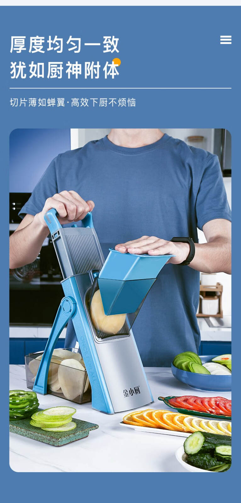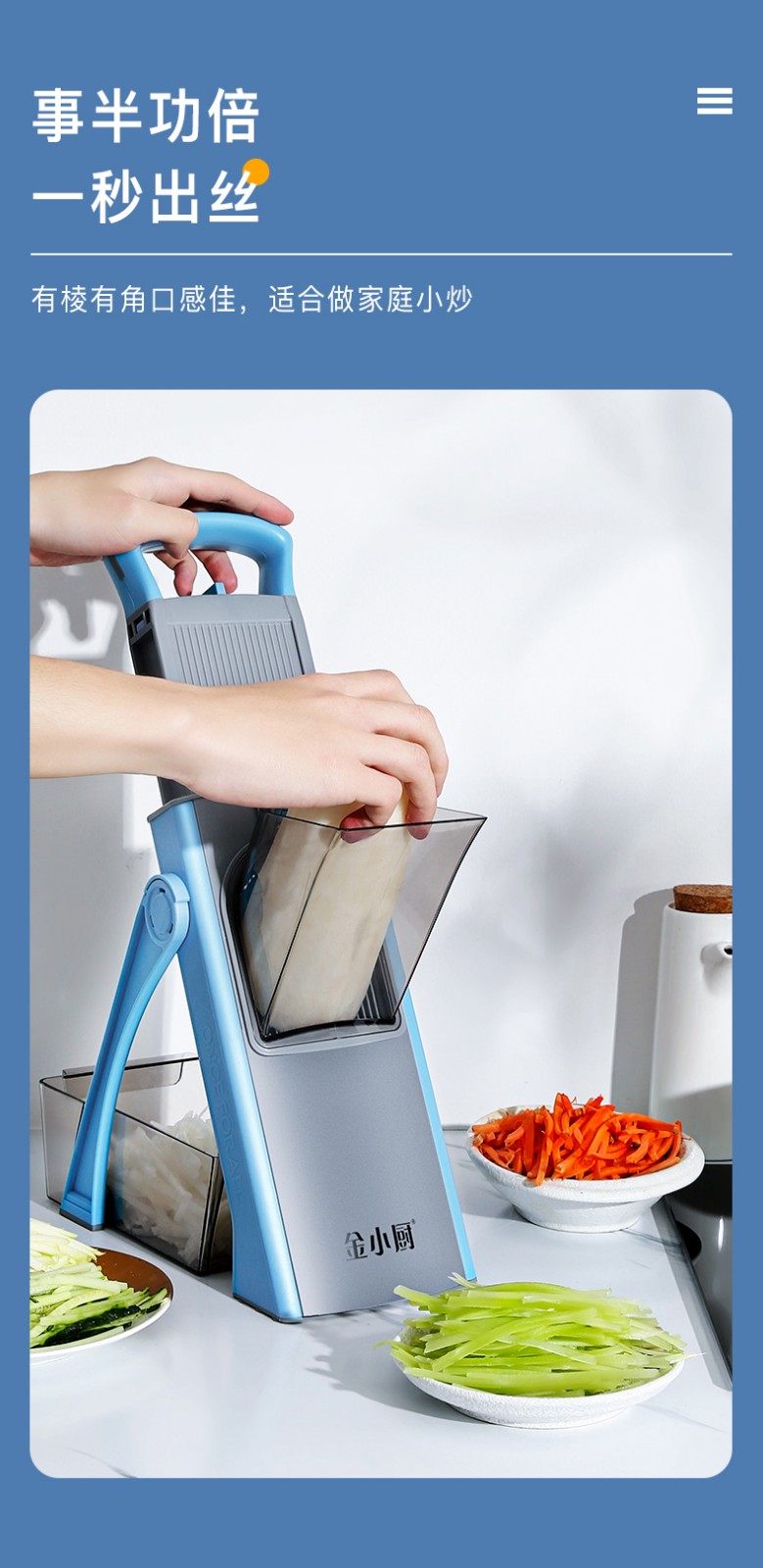 Jin Xiaochu vegetable cutting tool multi-functional household lemon slicer and grating grater kitchen radish and potato shredder blue gray
