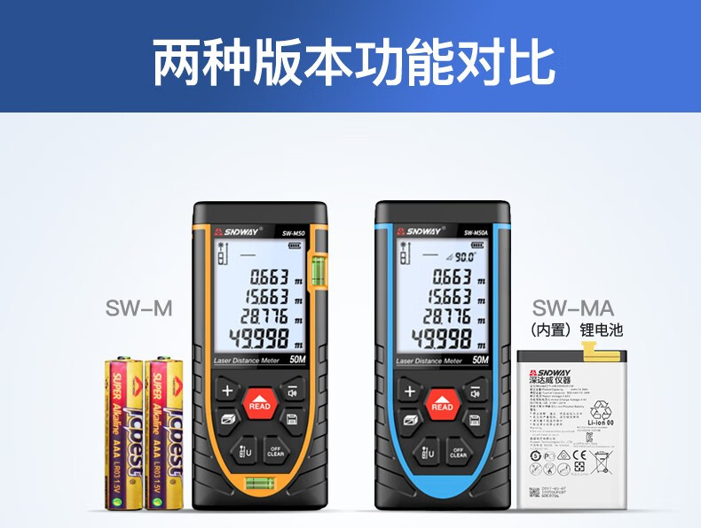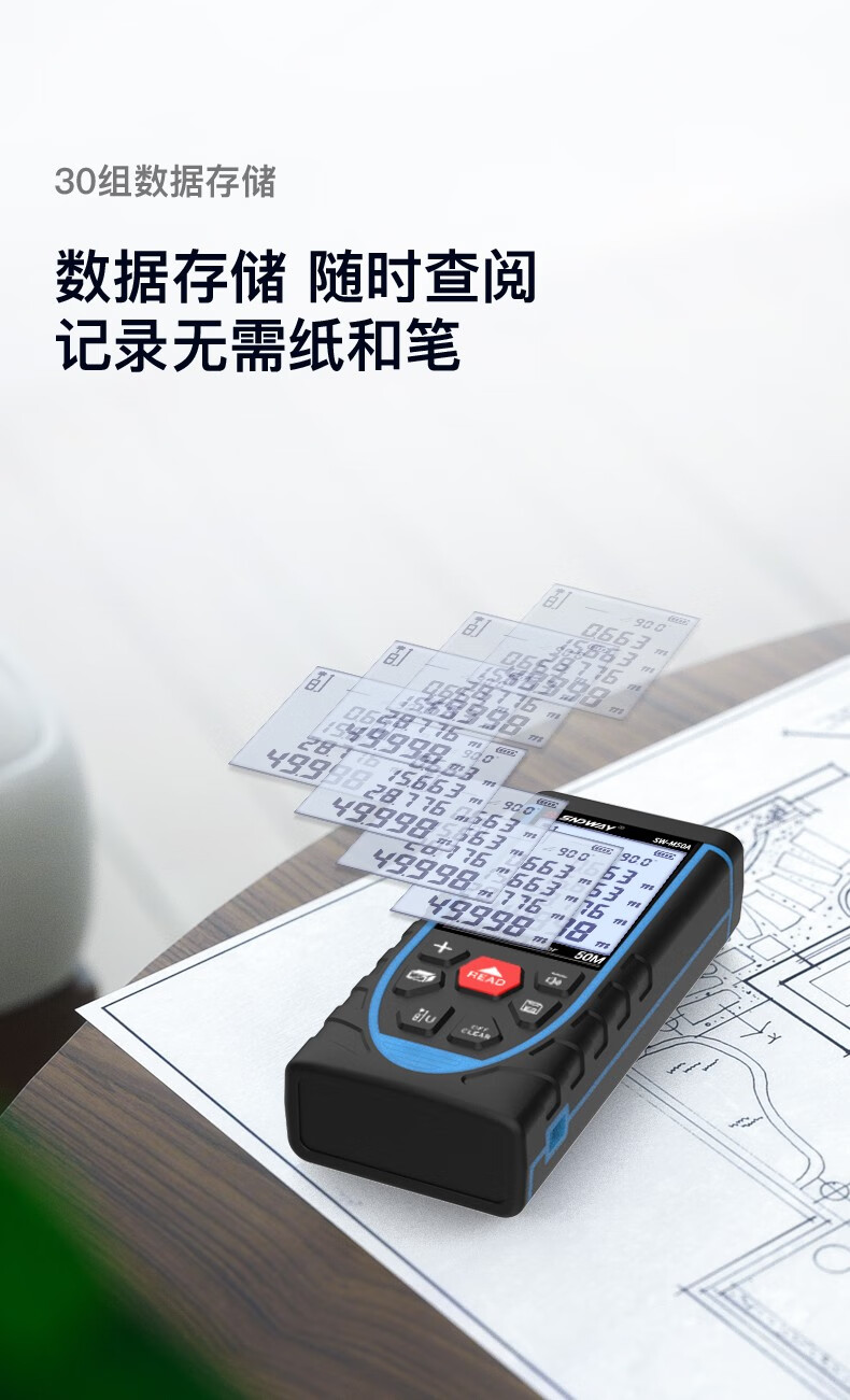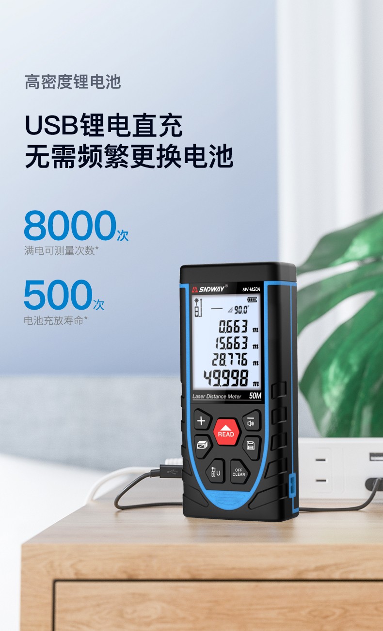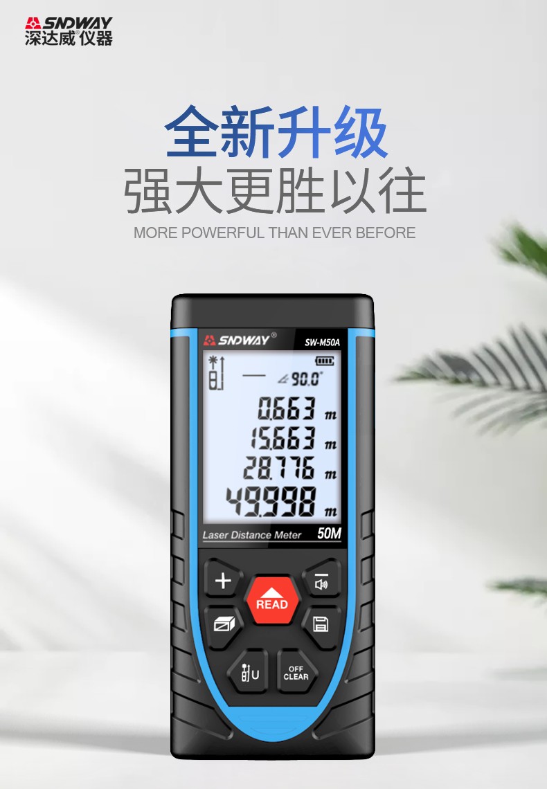 SNDWAY Laser Distance Meter High-Precision Handheld Electronic Ruler Room Measurement Rechargeable Measuring Instrument Electronic Level SW-M50 (50 Meter Battery Model Double Level Bubble)