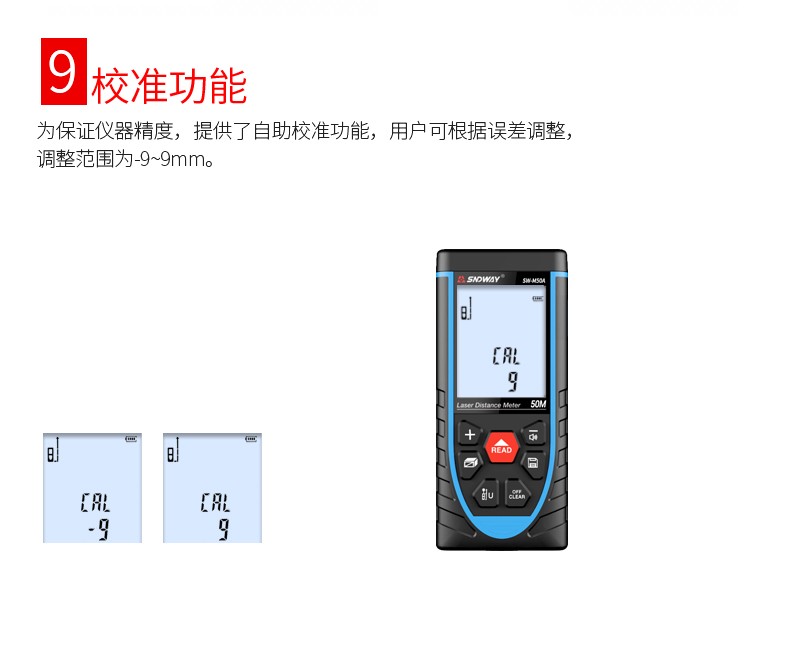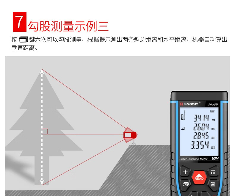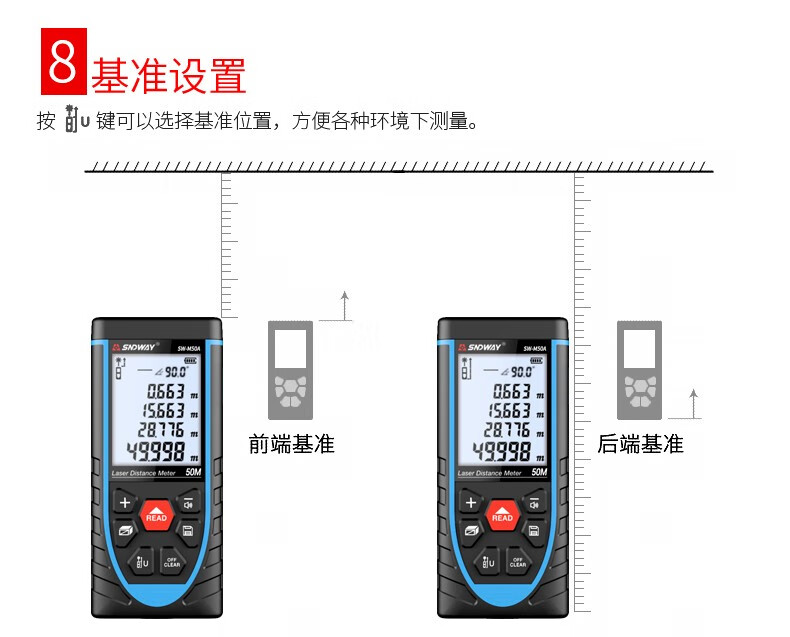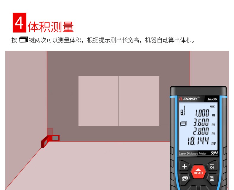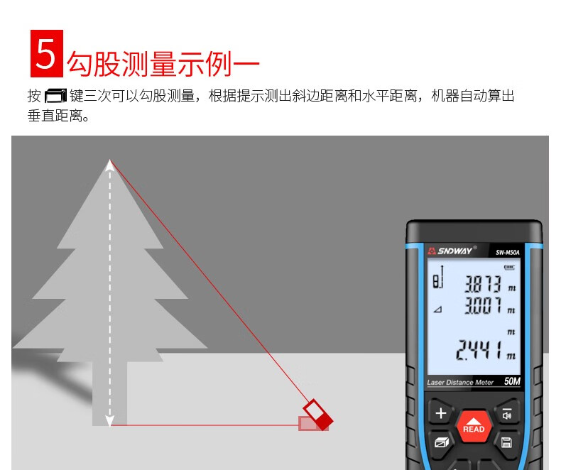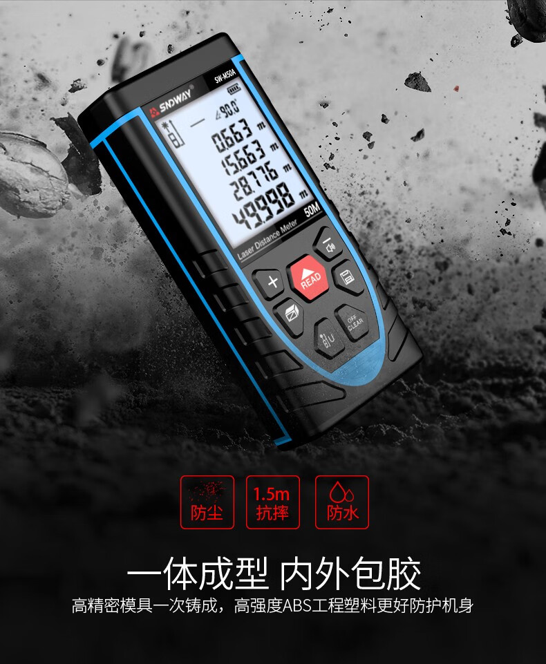 SNDWAY Laser Distance Meter High-Precision Handheld Electronic Ruler Room Measurement Rechargeable Measuring Instrument Electronic Level SW-M50 (50 Meter Battery Model Double Level Bubble)