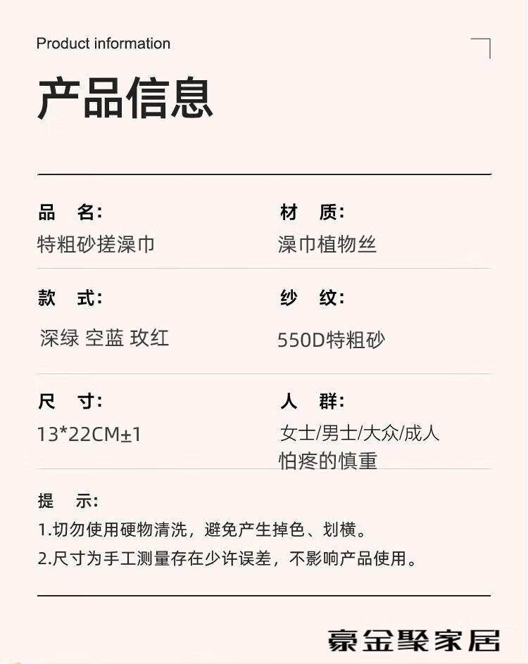 Haojinju high-end single-layer special gloves back rub technician large bathroom roving bath towel single layer 6 pieces 500D extra coarse sand military green