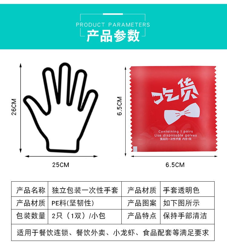 Patella disposable gloves independent small packaging thickened barbecue lobster fried chicken pizza food catering transparent plastic various mix and match models 200 small packs 2 pieces/pack