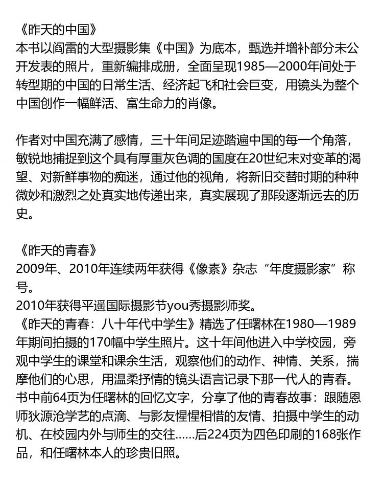 Yesterday's China + Yesterday's Youth Photography Masters Cartier-Bresson, Marc Riboud, Liu Xiangcheng, Yan Lei, Ren Shulin, Art Documentary Photography Collection, Image Materials Book, Houlang Genuine
