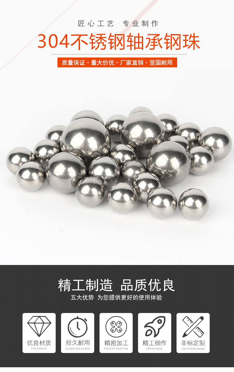 Baodefeng 304 stainless steel precision bearing steel balls solid small steel balls round wave beads national standard fasteners standard parts 10mm 20 pieces -304 material