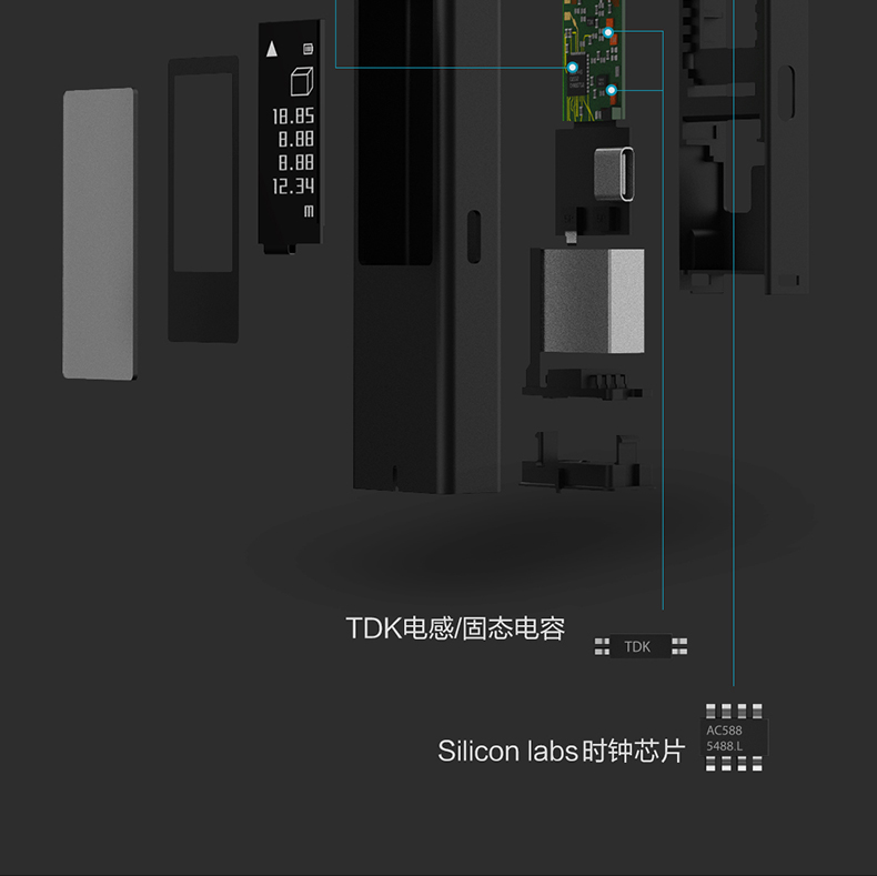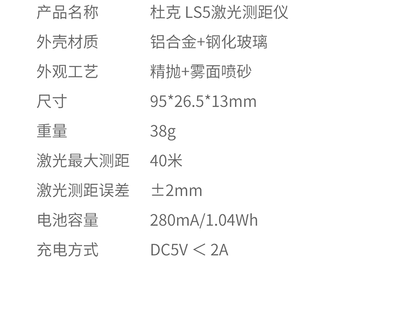 Duke LS5 laser range finder infrared range measuring instrument high-precision electronic ruler room measuring instrument handheld home charging model black LS-5 (40 meters)