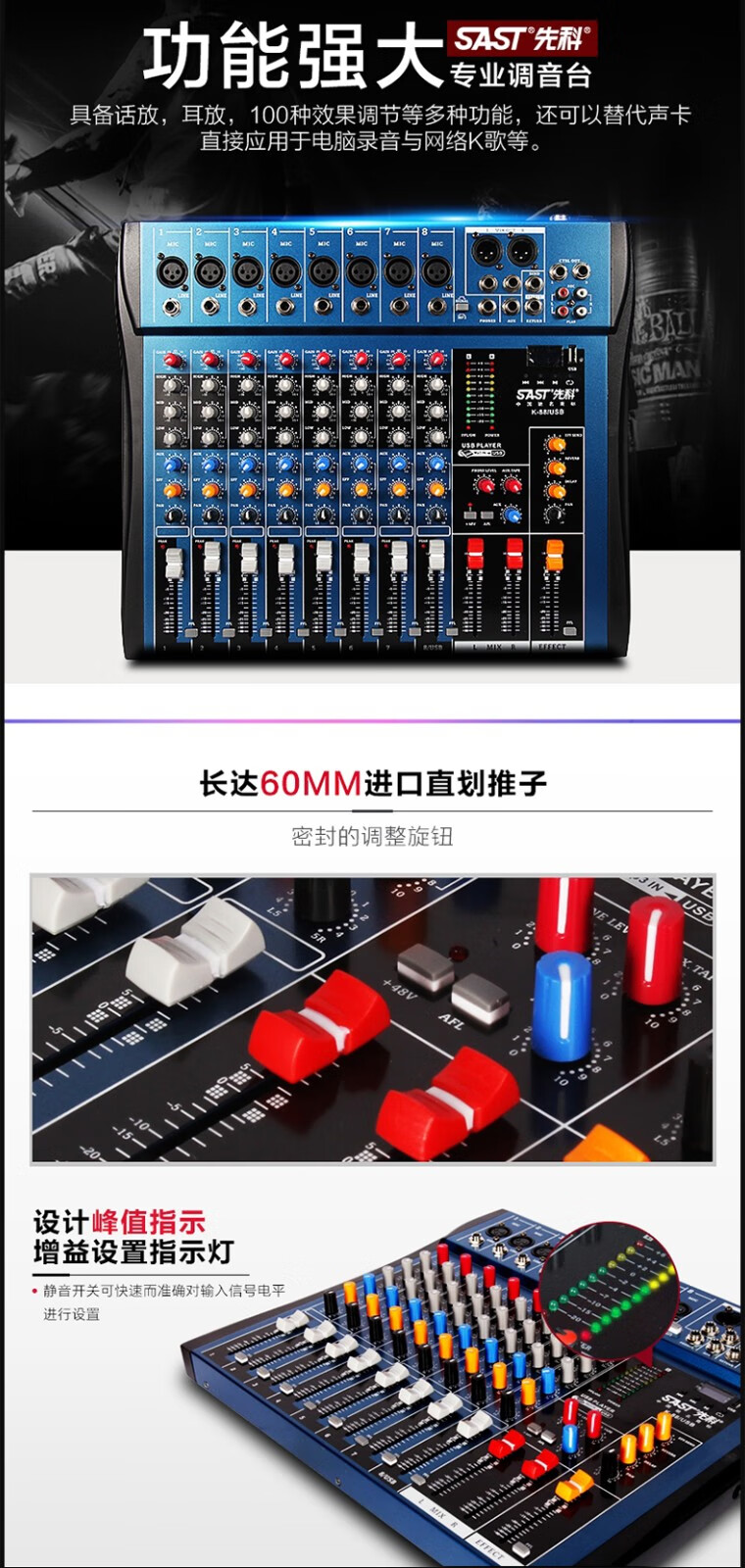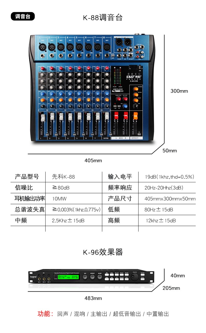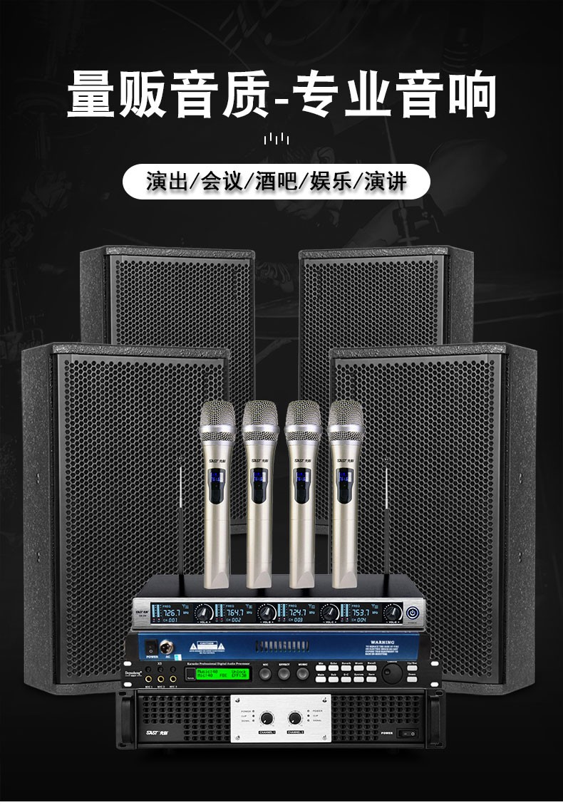 SAST professional stage conference speaker set, stage wedding performance conference bar KTV audio outdoor set HiFi speaker high power 10-inch speaker + MV-200X function + microphone + mixer + effector