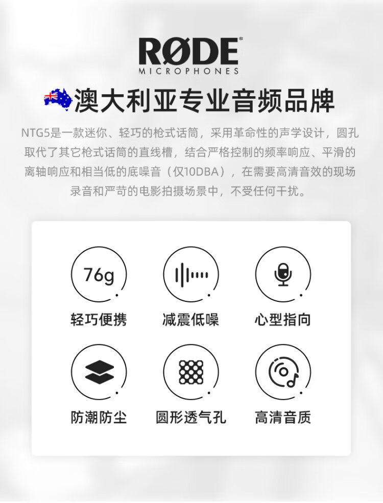 RODE Rod Microphone NTG5 pole-type directional set-top broadcast-level radio microphone, interview short video recording film professional microphone NTG5 official standard configuration