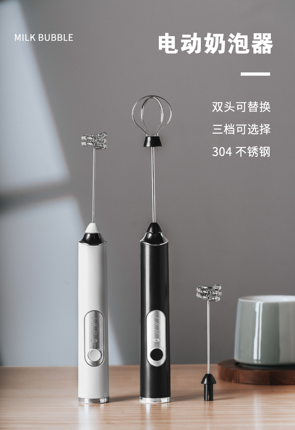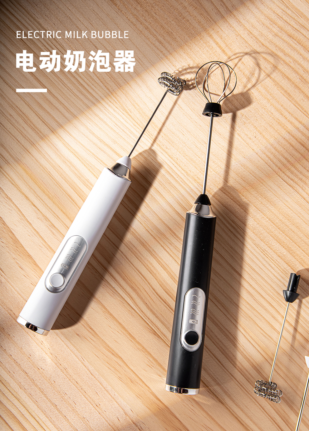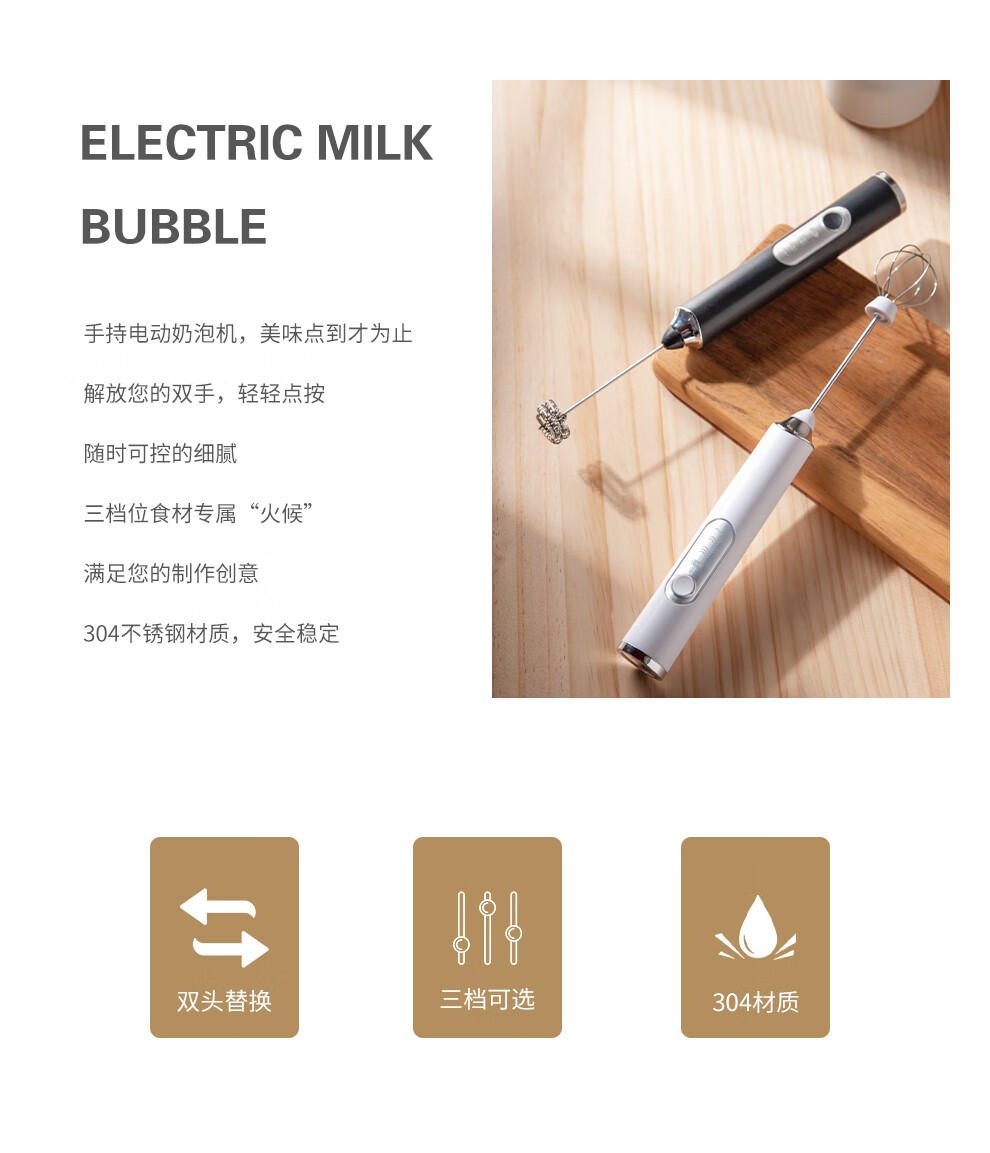 SUCCO Electric Milk Frother Coffee Milk Frother Home Handheld Mixer Egg Beater Heated Milk Frother Milk Frother Stick Refreshing White-Milk Frother (Double Head Replaceable)