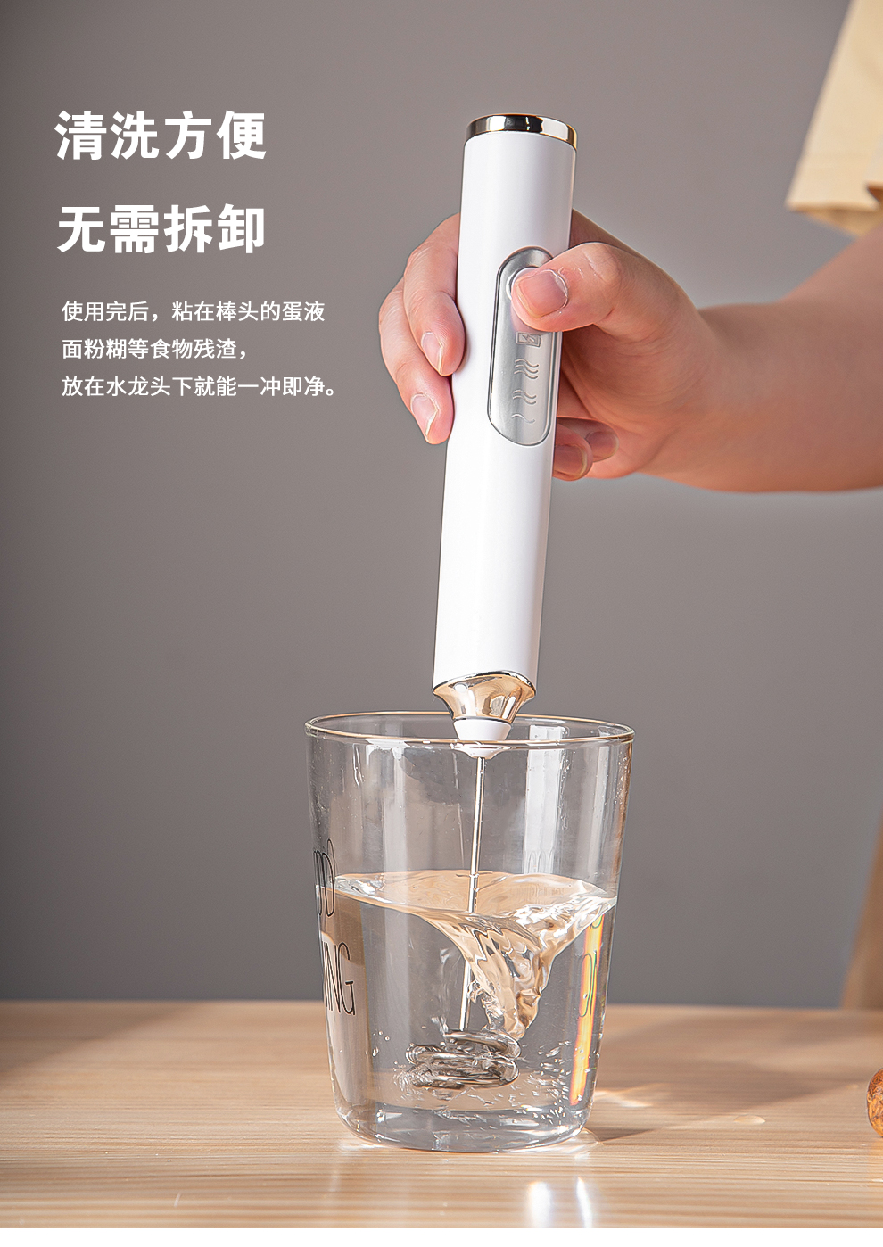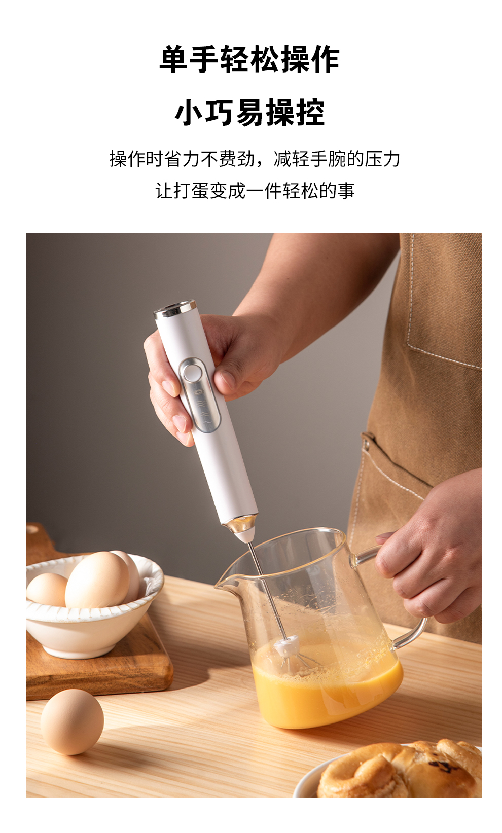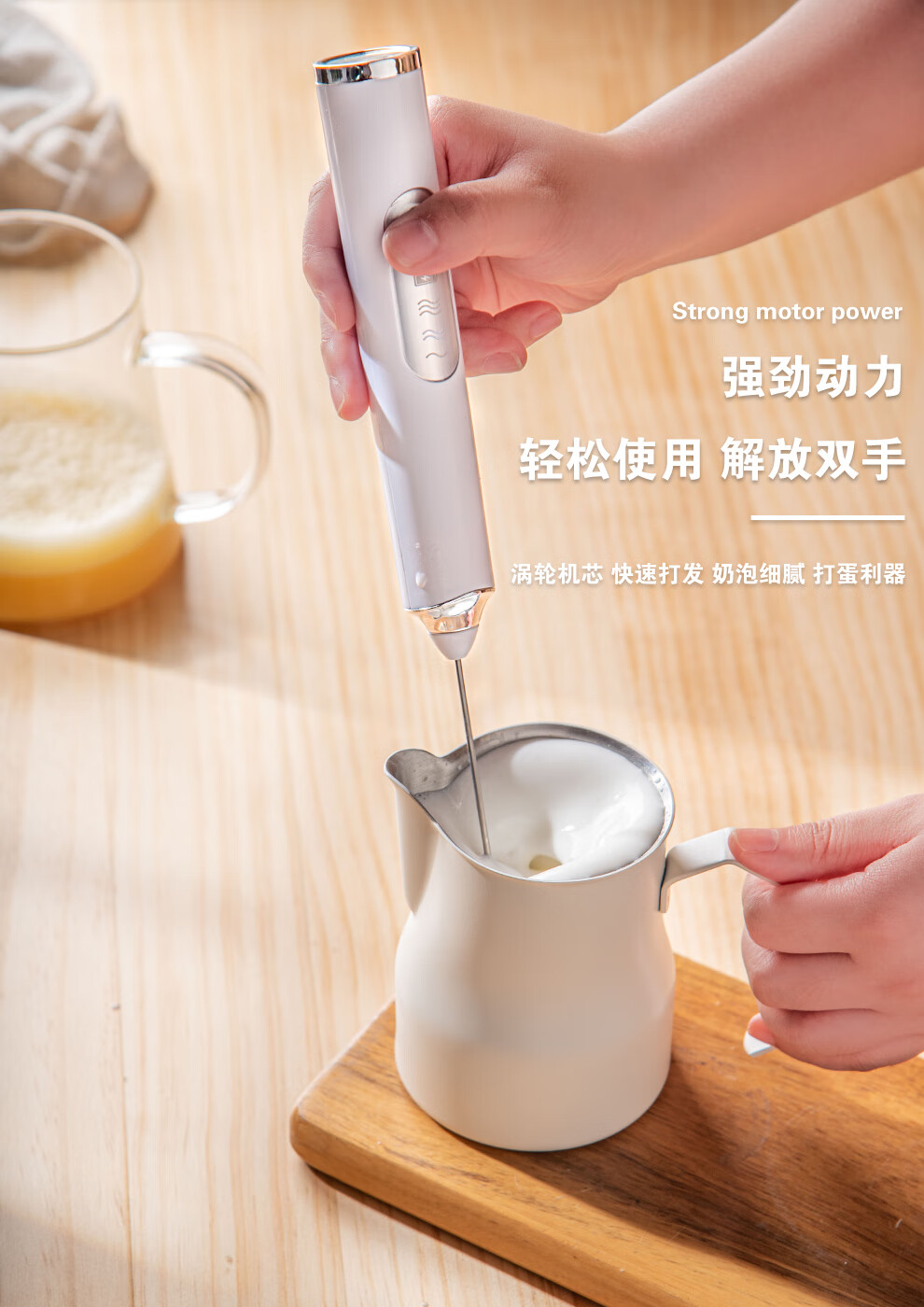 SUCCO Electric Milk Frother Coffee Milk Frother Home Handheld Mixer Egg Beater Heated Milk Frother Milk Frother Stick Refreshing White-Milk Frother (Double Head Replaceable)