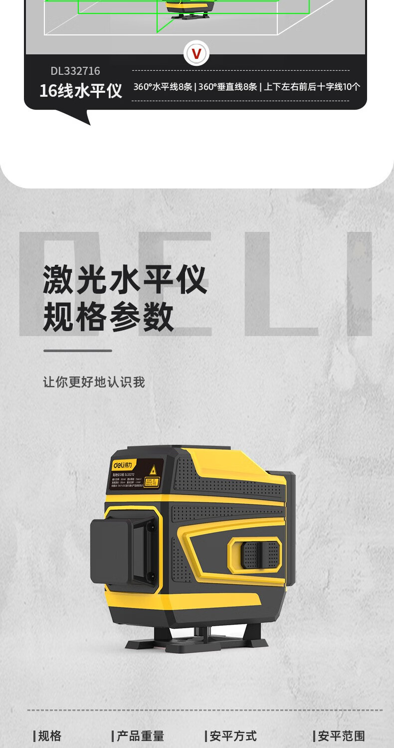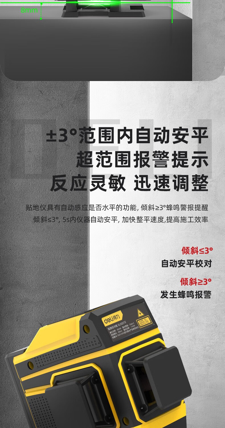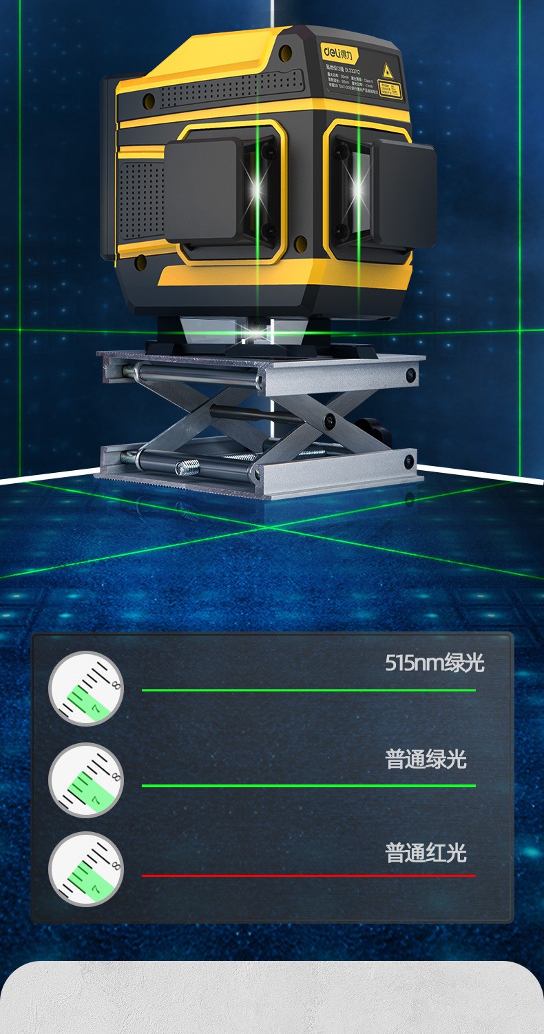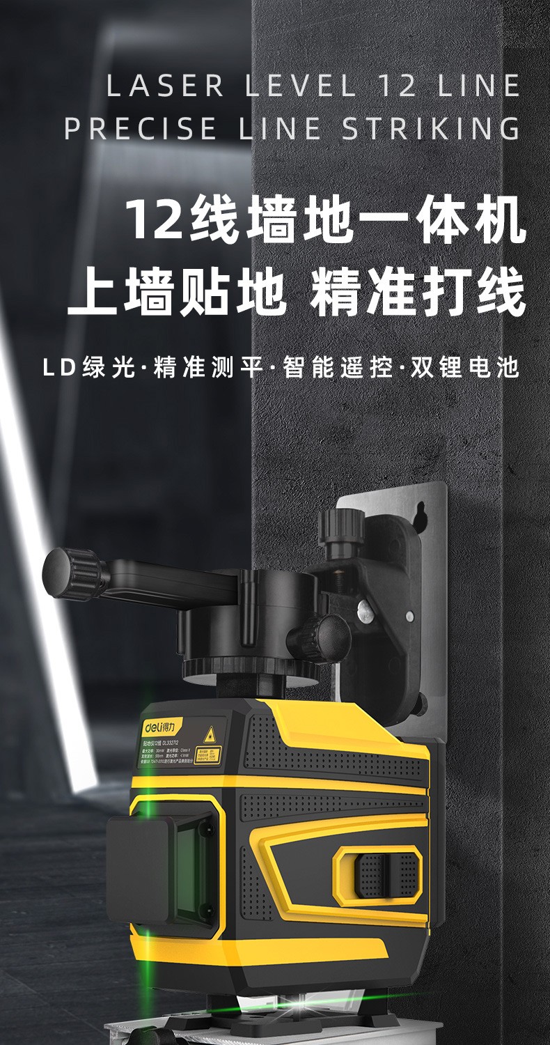 Deli level high-precision green light wall-to-floor all-in-one machine 16-line laser decoration construction indoor measurement intelligent remote control 8-line dual lithium battery powered dual battery 8-line high-precision floor-mounting instrument DL332708