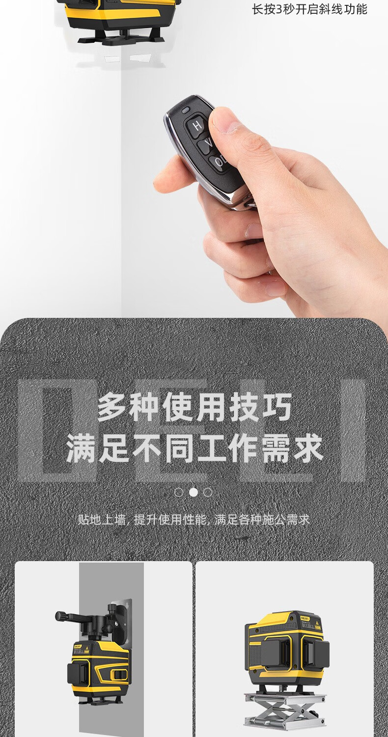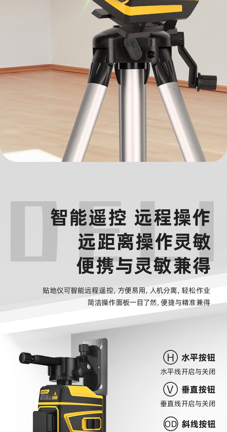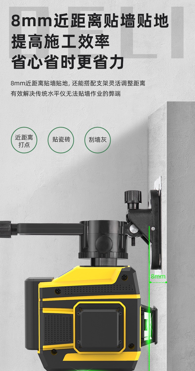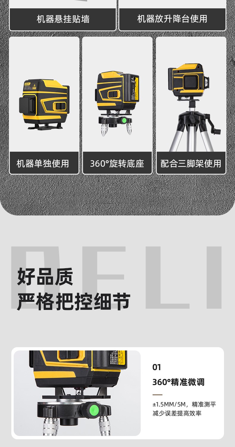 Deli level high-precision green light wall-to-floor all-in-one machine 16-line laser decoration construction indoor measurement intelligent remote control 8-line dual lithium battery powered dual battery 8-line high-precision floor-mounting instrument DL332708