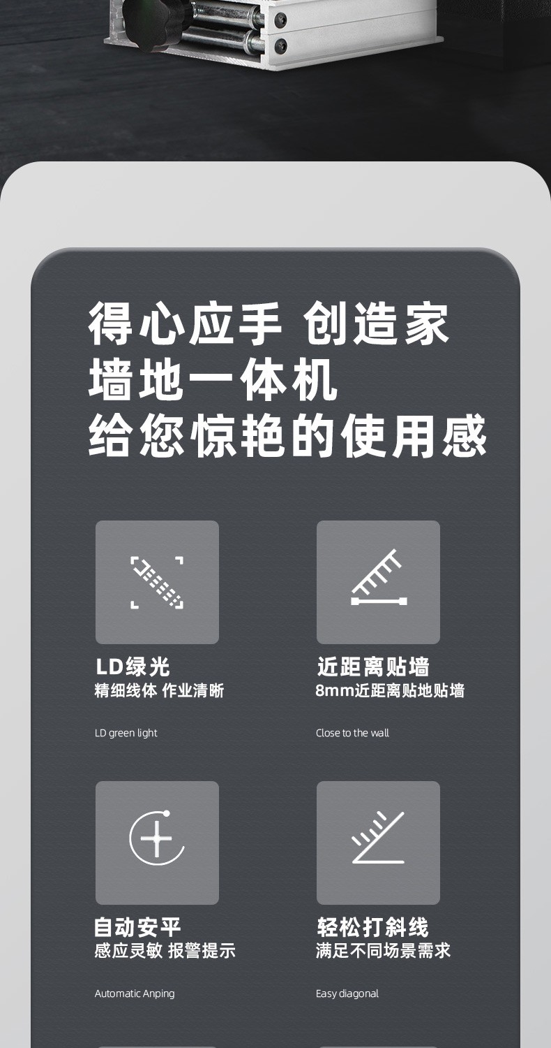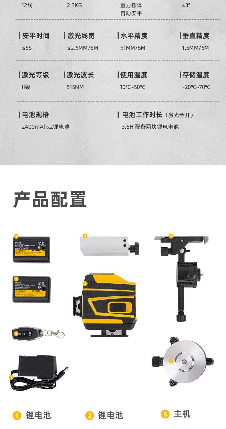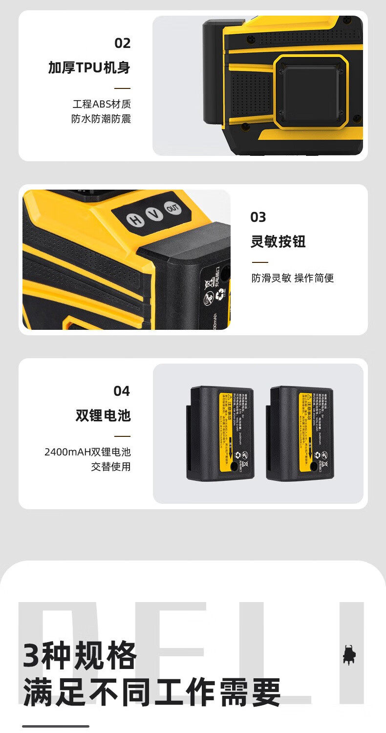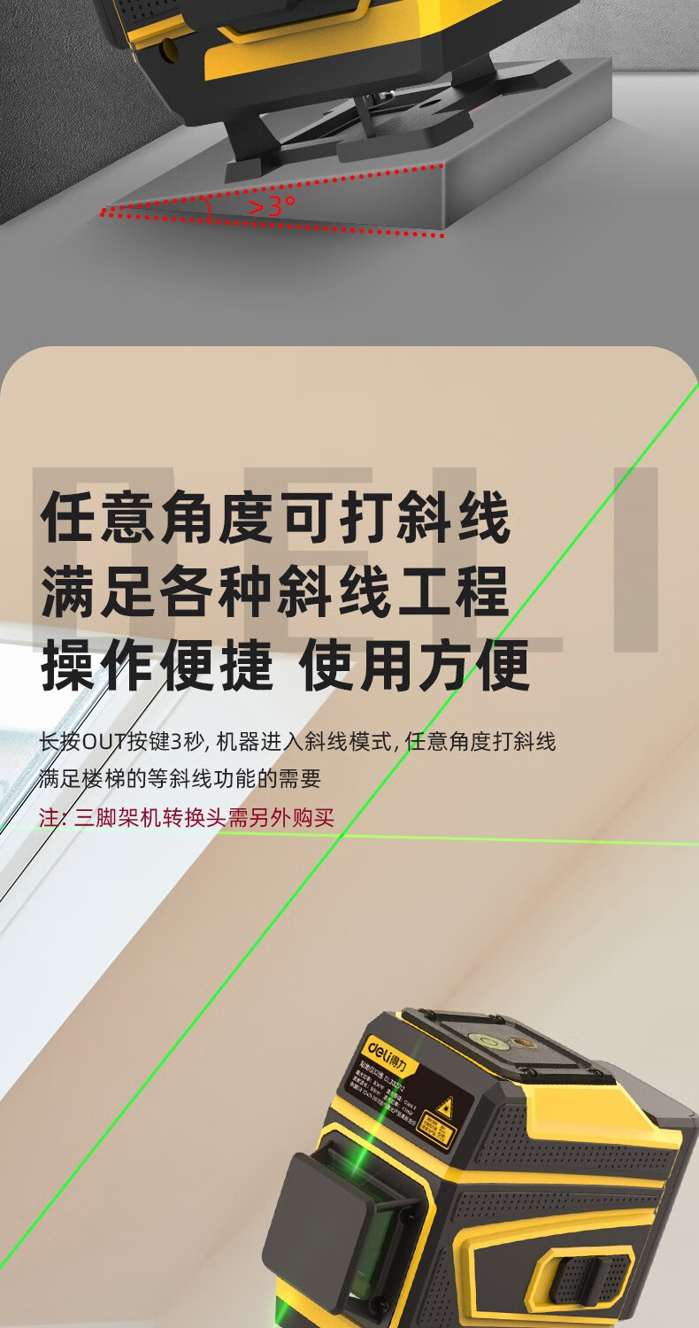Deli level high-precision green light wall-to-floor all-in-one machine 16-line laser decoration construction indoor measurement intelligent remote control 8-line dual lithium battery powered dual battery 8-line high-precision floor-mounting instrument DL332708