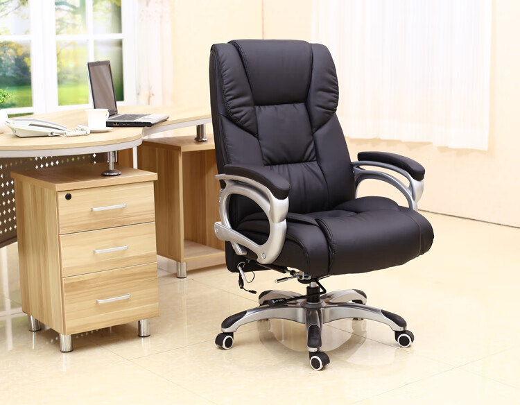 Xingman Boss Chair Minimalist Genuine Leather Boss Chair Executive Chair Fashionable Office Chair Light Luxury President Swivel Chair Computer Chair Business Boss Chair (Black Leather) Nylon Feet