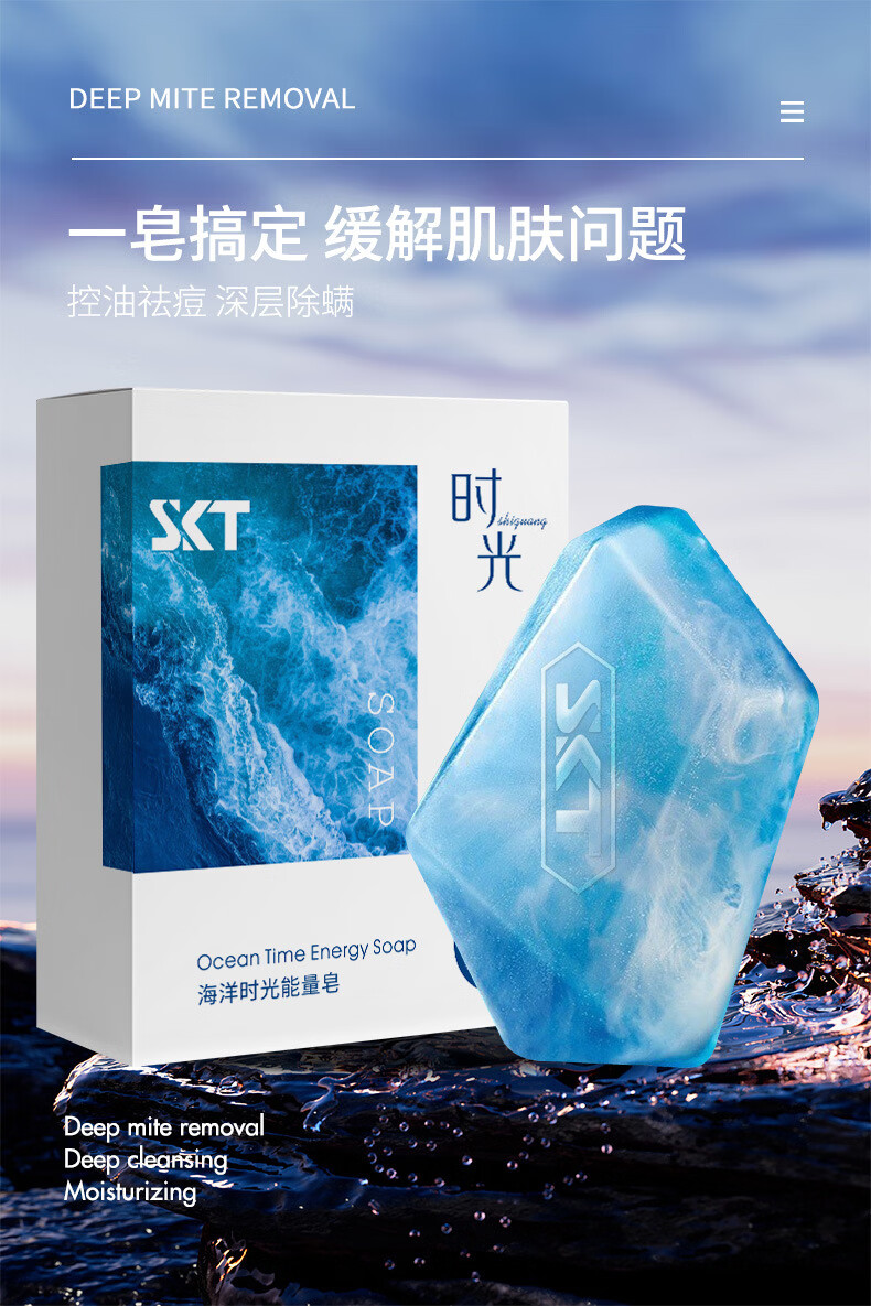 SKT Ocean Time Energy Soap Antibacterial and Mite Control Oil Control Deep Cleansing Back Body Bath Soap Men and Women Antibacterial and Oil Control Ocean Time Energy Soap*1 Box (Free Foaming Net)