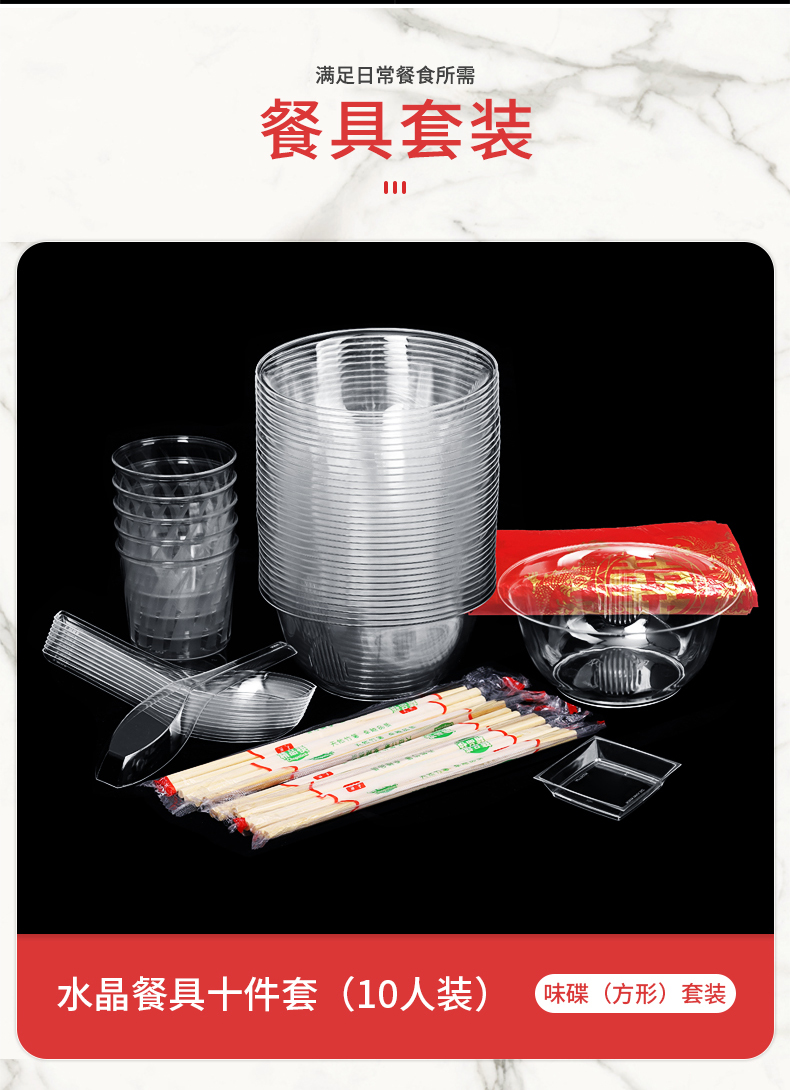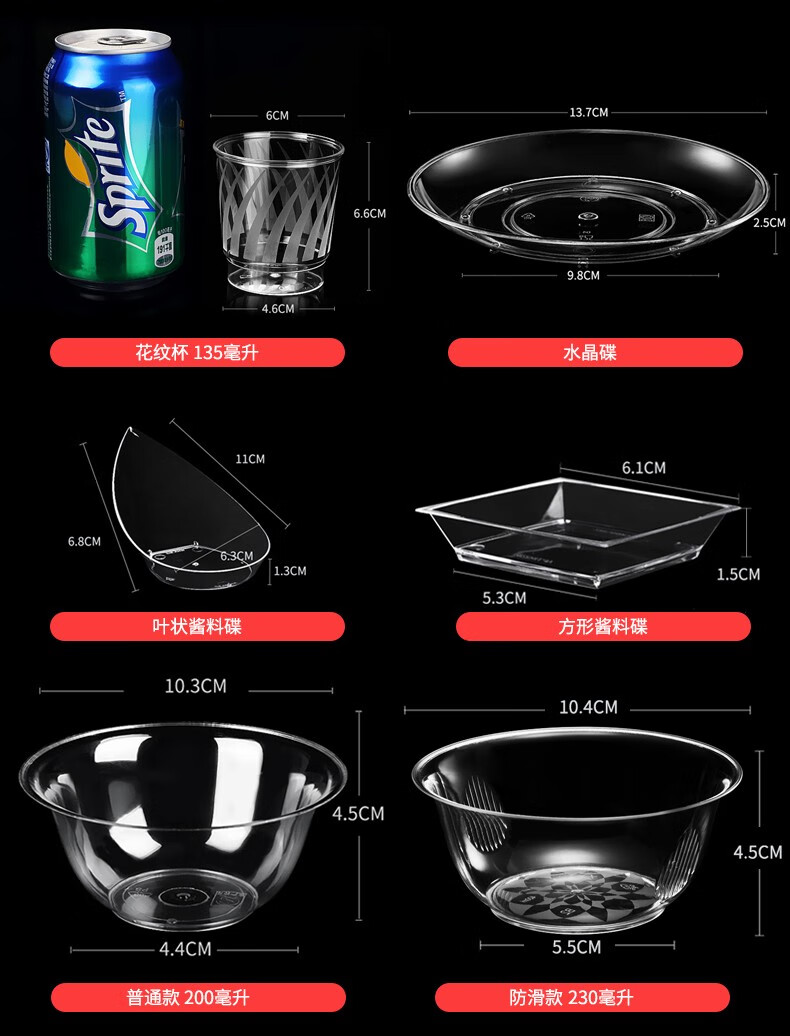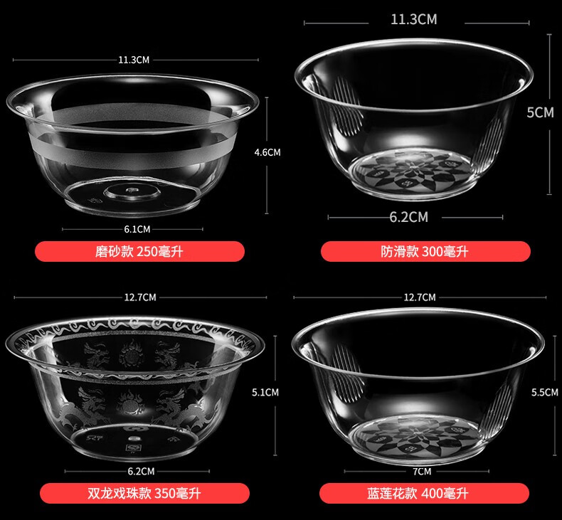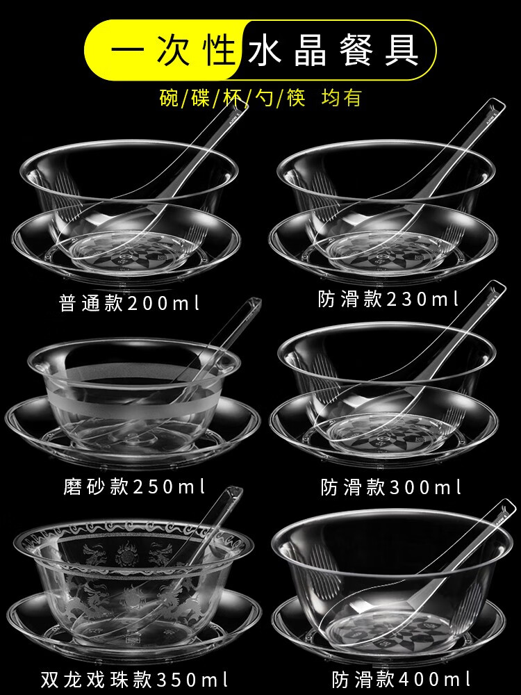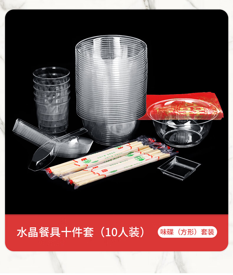 Jin Wuyuan disposable bowls and chopsticks set combination aviation bowl ice powder soup bowl transparent dessert small bowls and chopsticks household tableware 400ml large rice bowl 120 pieces