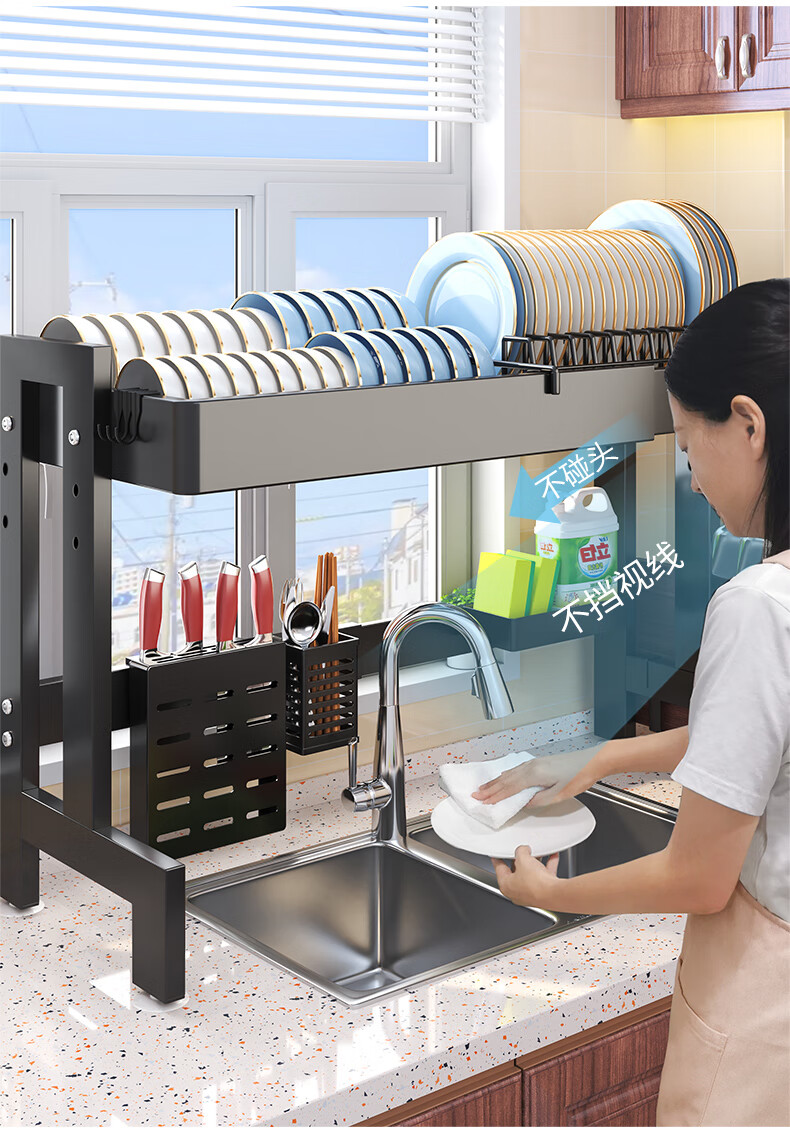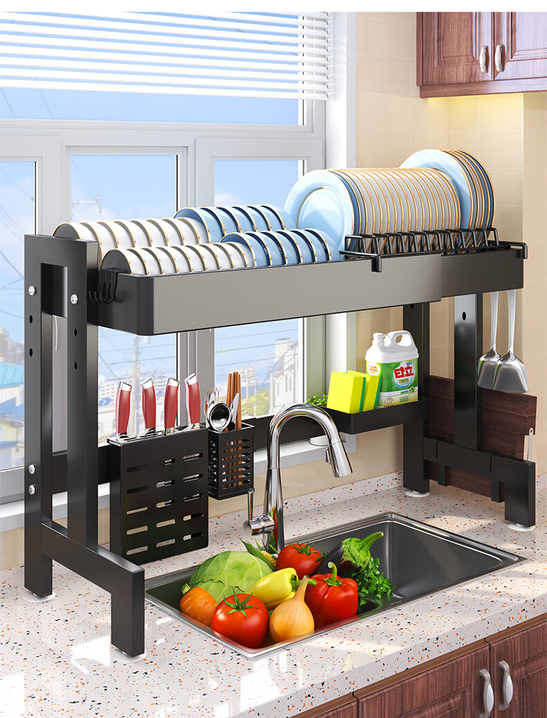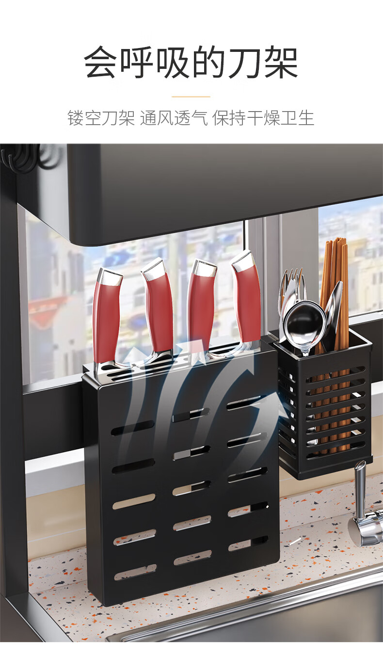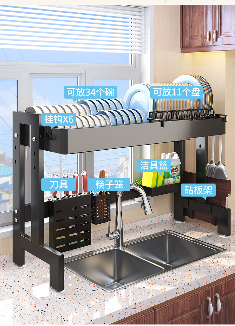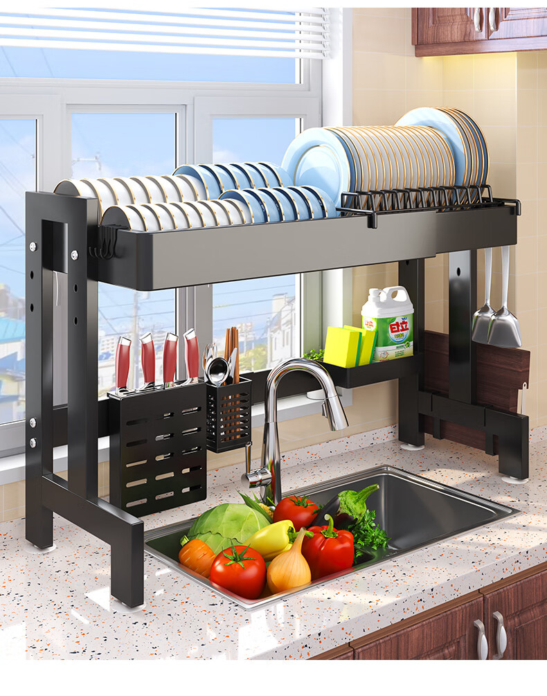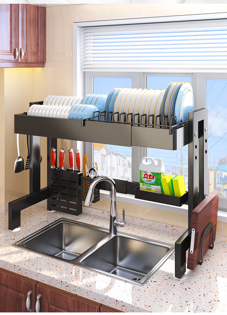 Chao Mu House kitchen storage rack, dish rack, drain rack, retractable countertop sink storage rack to dry dishes rack, pool storage rack, single layer (knife holder + chopstick barrel + sanitary ware rack + chopping board rack) Chao Mu House