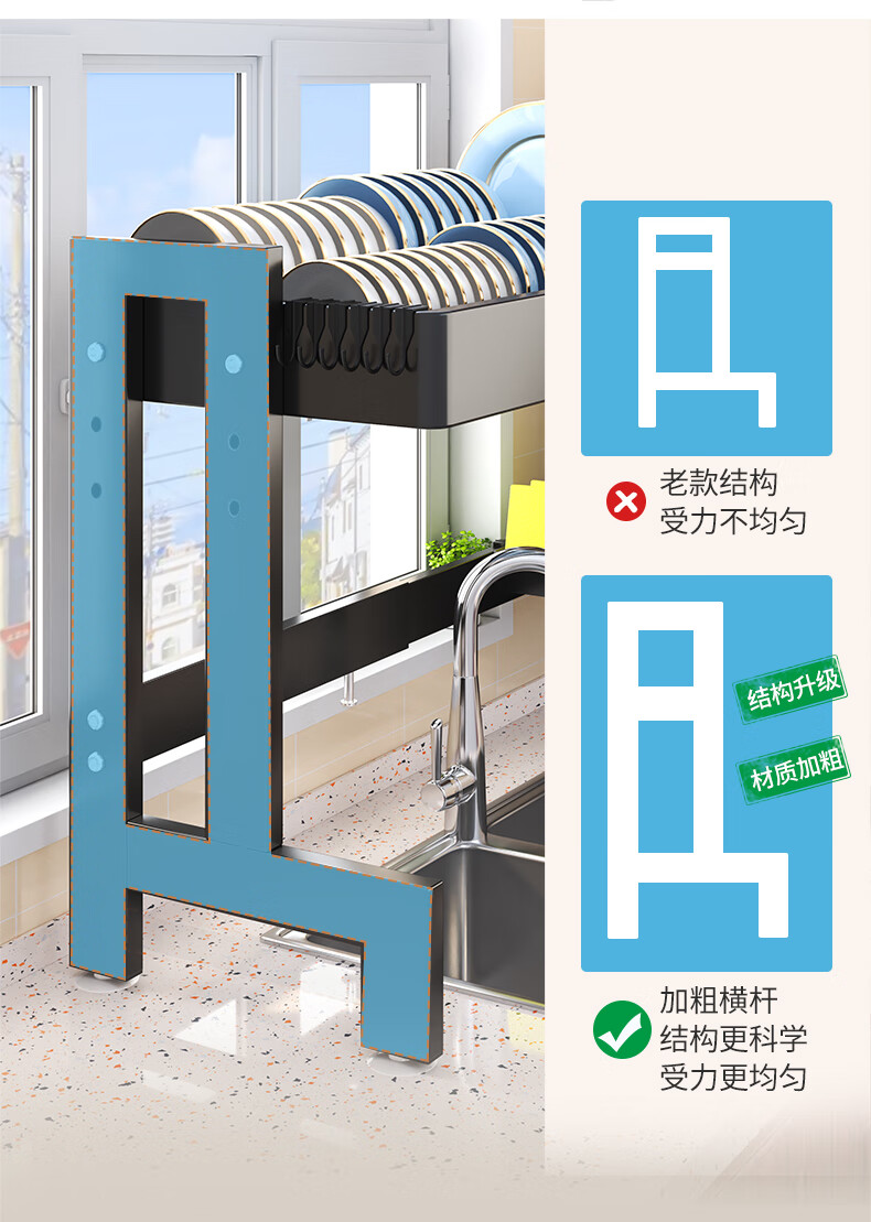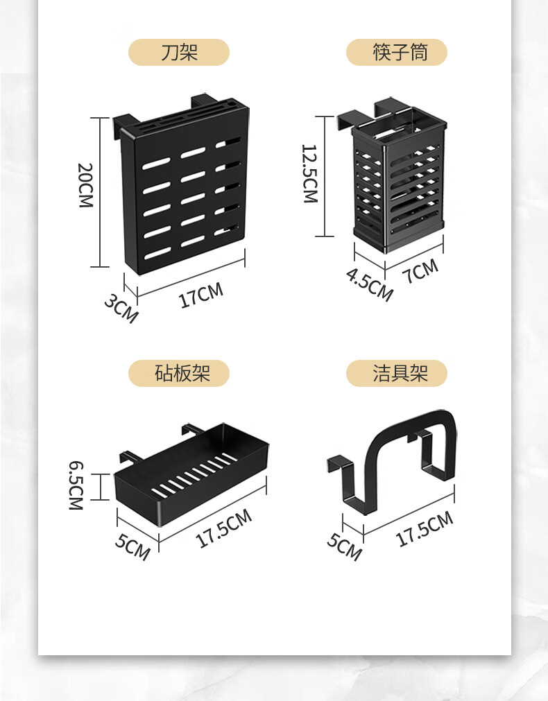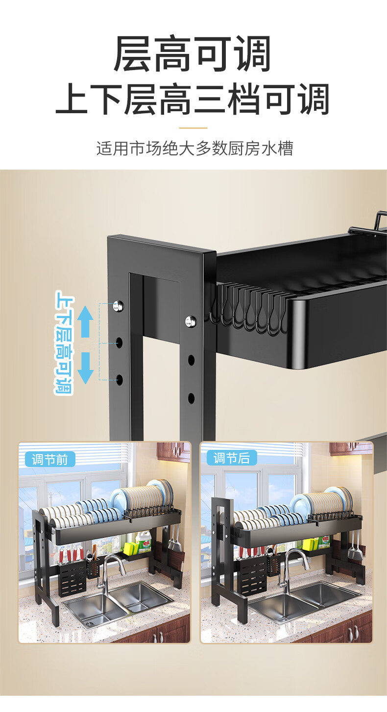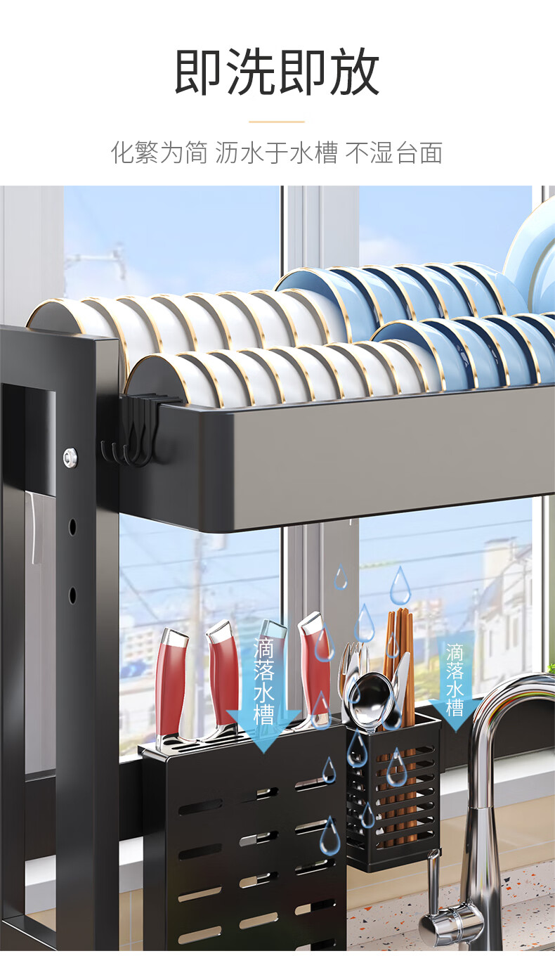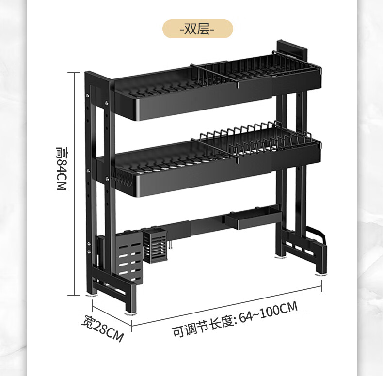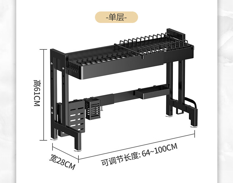 Chao Mu House kitchen storage rack, dish rack, drain rack, retractable countertop sink storage rack to dry dishes rack, pool storage rack, single layer (knife holder + chopstick barrel + sanitary ware rack + chopping board rack) Chao Mu House