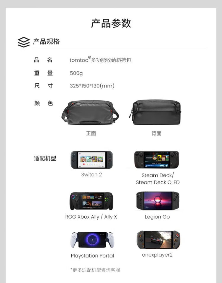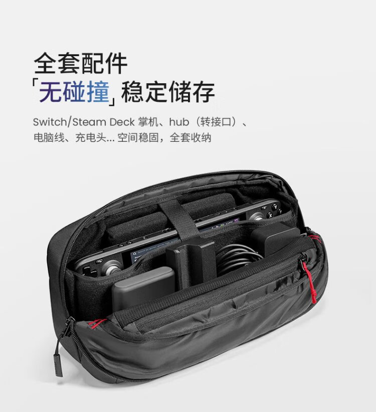 Tomtoc ROG Xbox Ally Storage Bag Steam Deck/Switch2 Storage Bag Crossbody Bag NS2 Handheld Bag Adapted to Rescuer LEGION2/ROG Handheld G47 Obsidian Black Can Hold Switch2