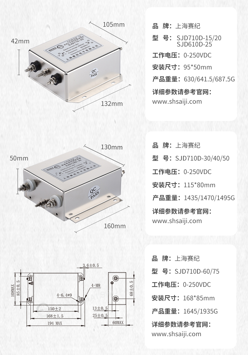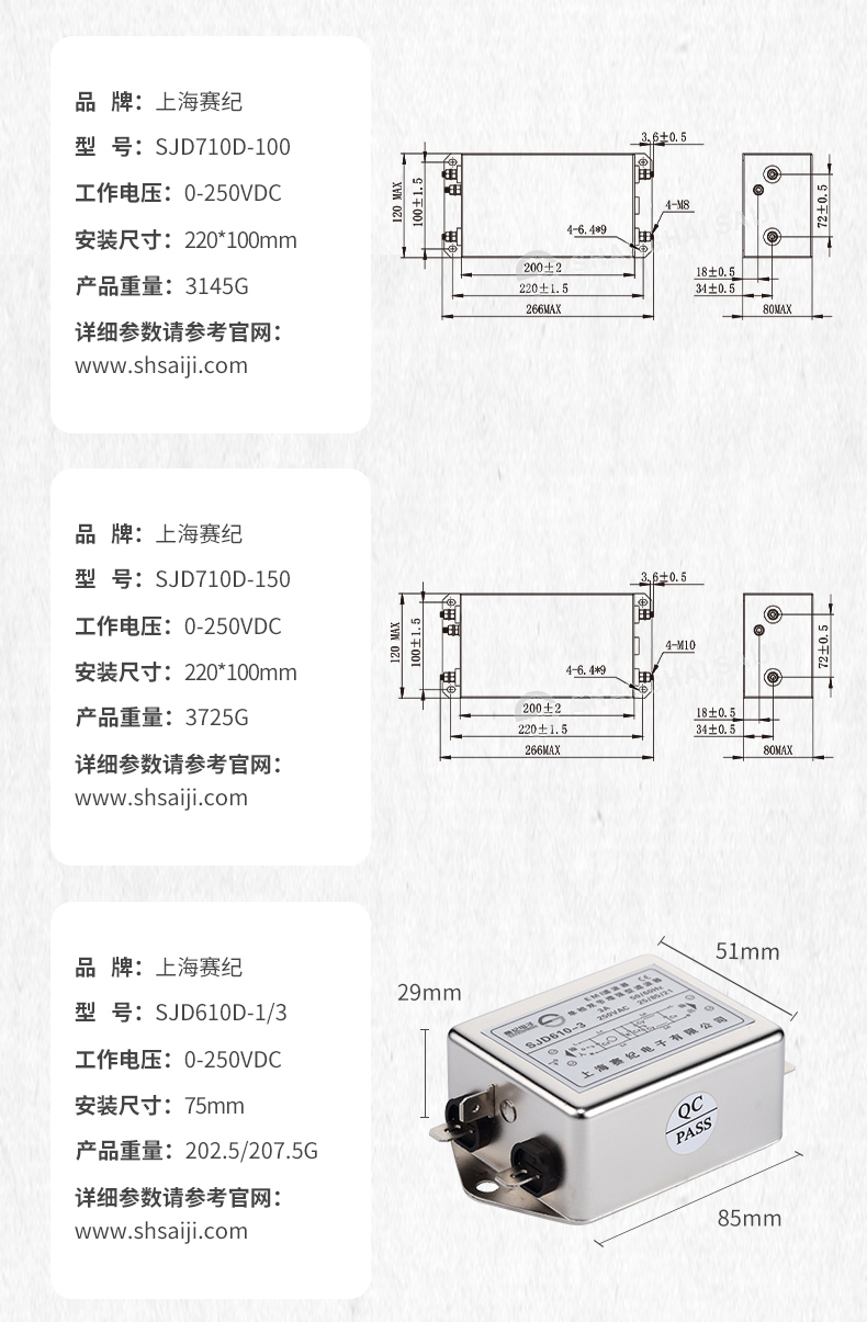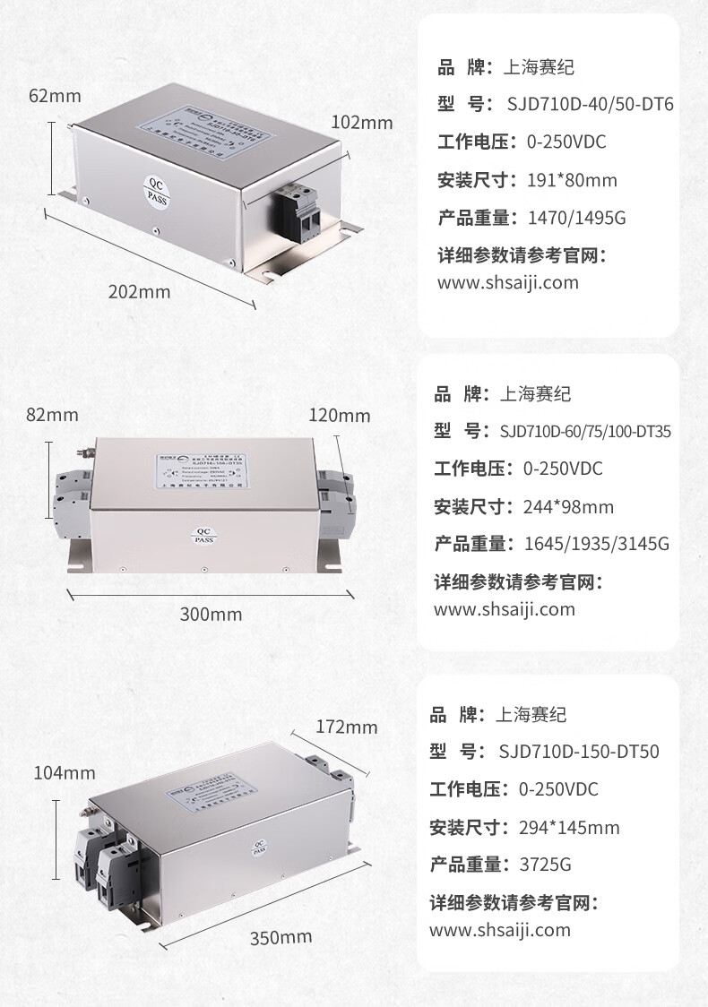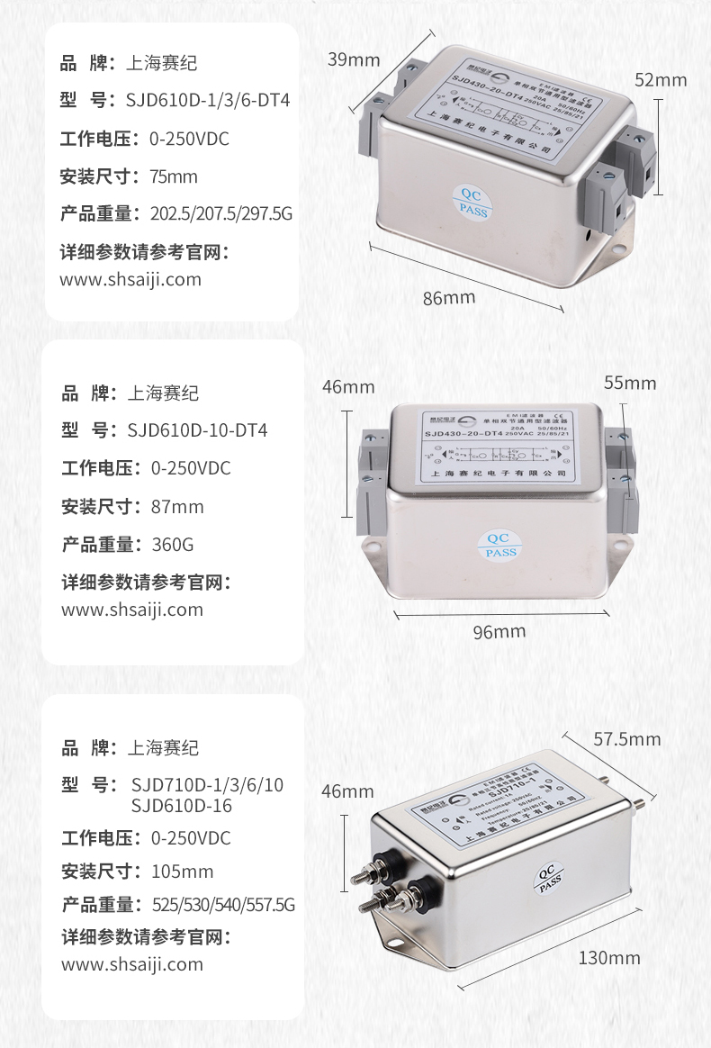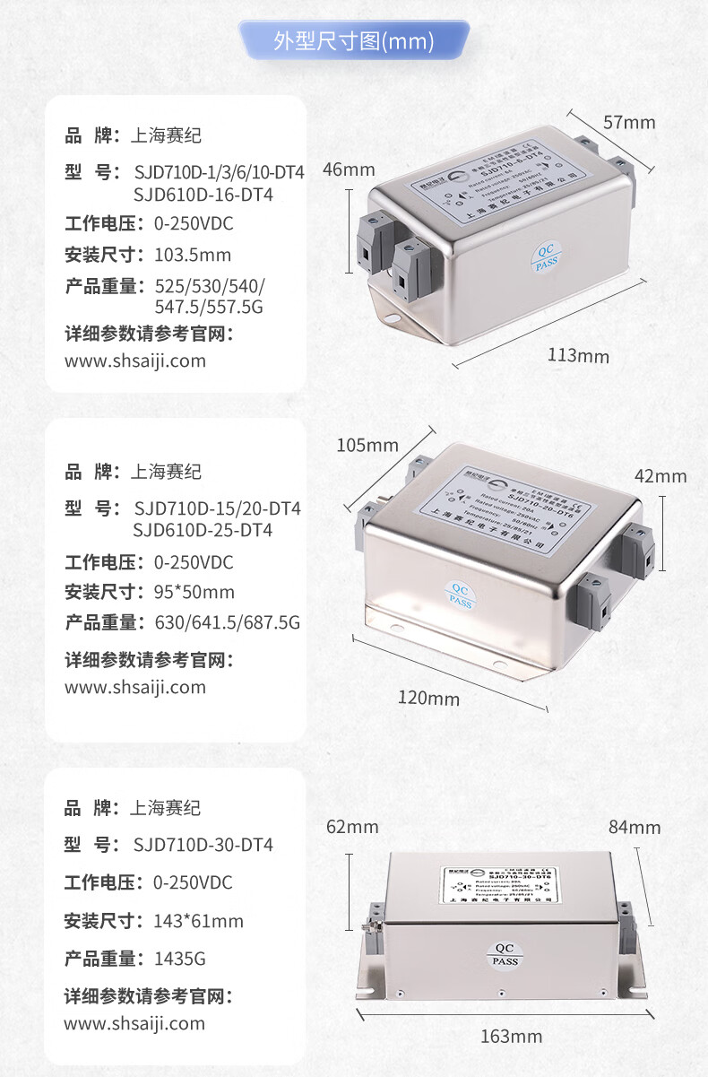 Saiji SJD710D single-phase DC three-stage filter emi low-pass 220V noise anti-interference frequency conversion purification DC three-stage screw 10A SJD710D-10