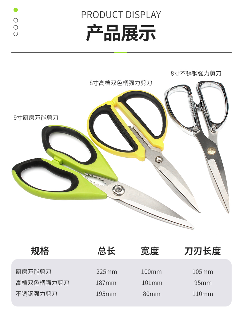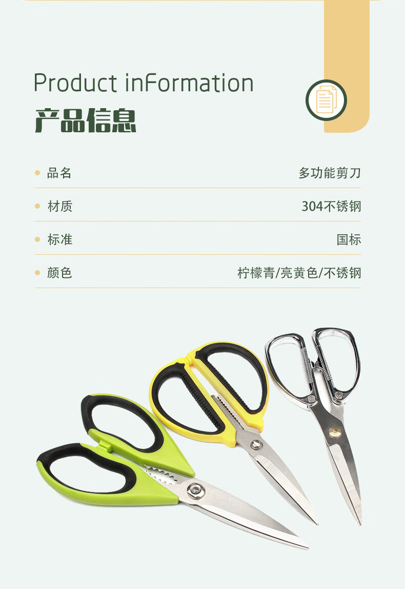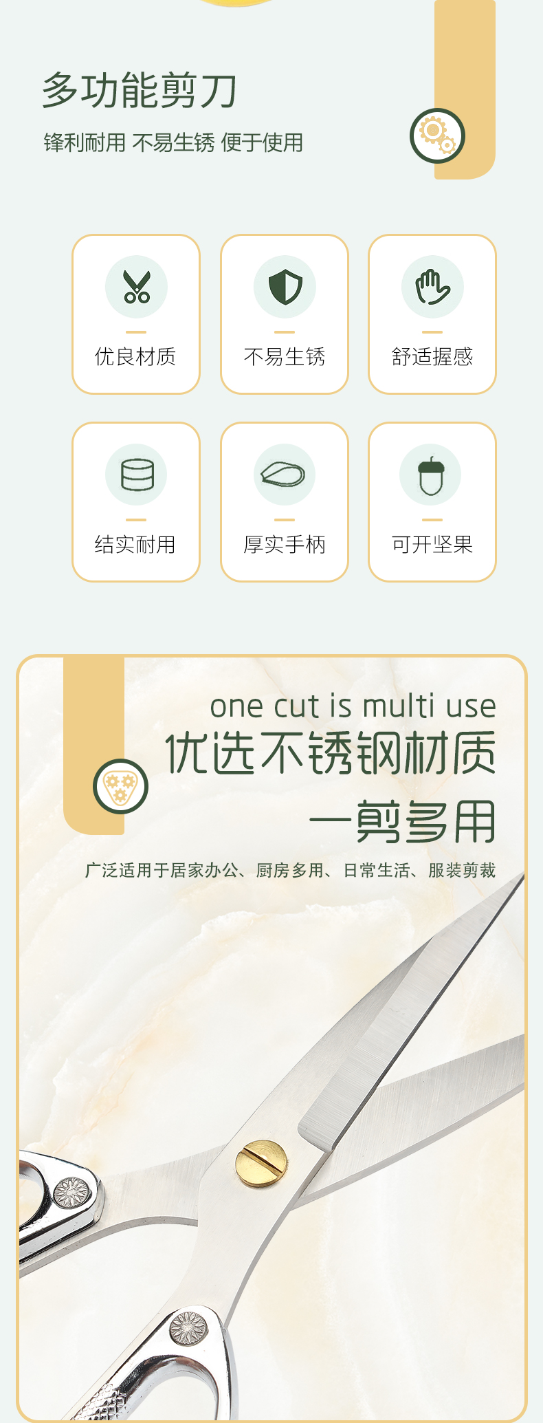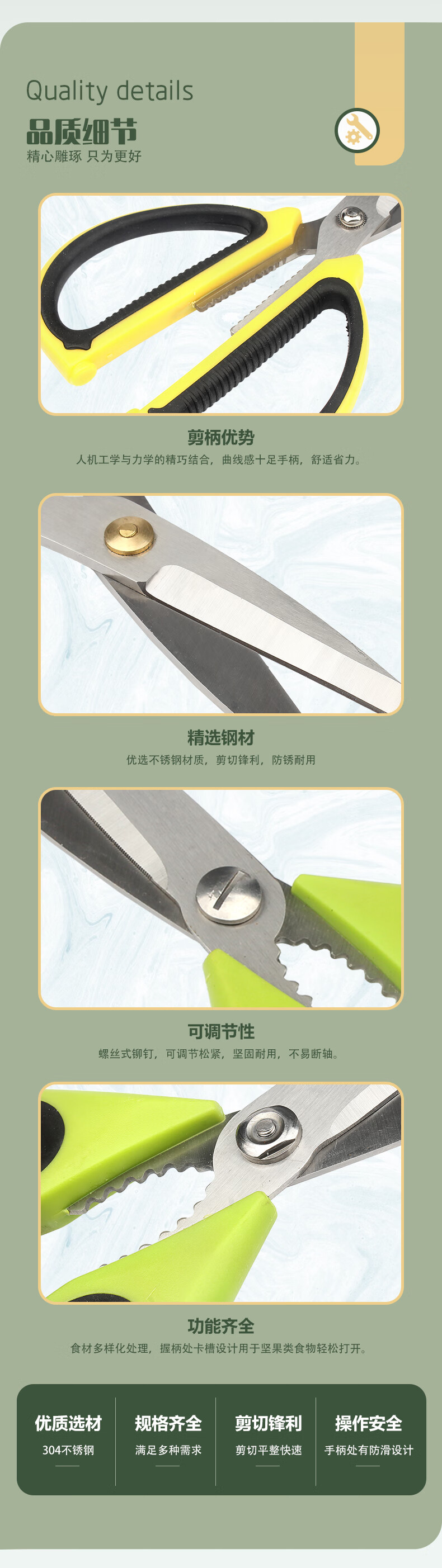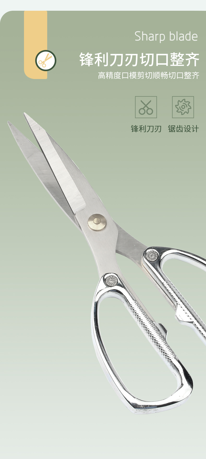 Guwanji stainless steel strong scissors kitchen special scissors household multi-functional barbecue cutter chicken bone scissors food scissors kitchen universal scissors-9 inches