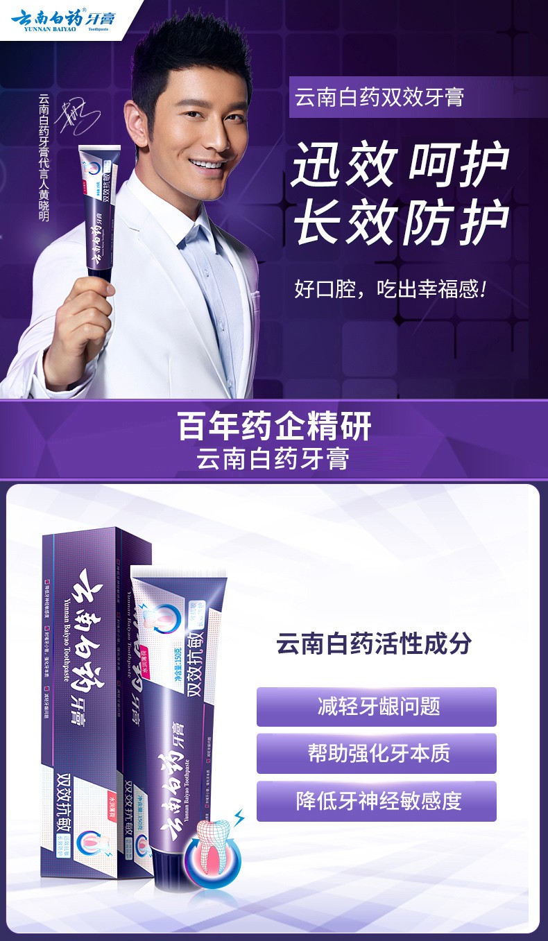 Yunnan Baiyao Toothpaste Double Effect Anti-Sensitive Hydrating Mint 110g*4 pieces