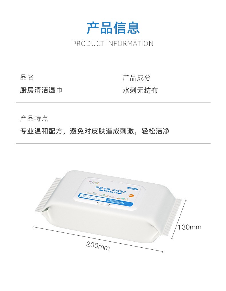Kitchen wipes, special cleaning wipes, range hood and stovetop degreasing wipes, 1 layer, 80 cigarettes*2 pack