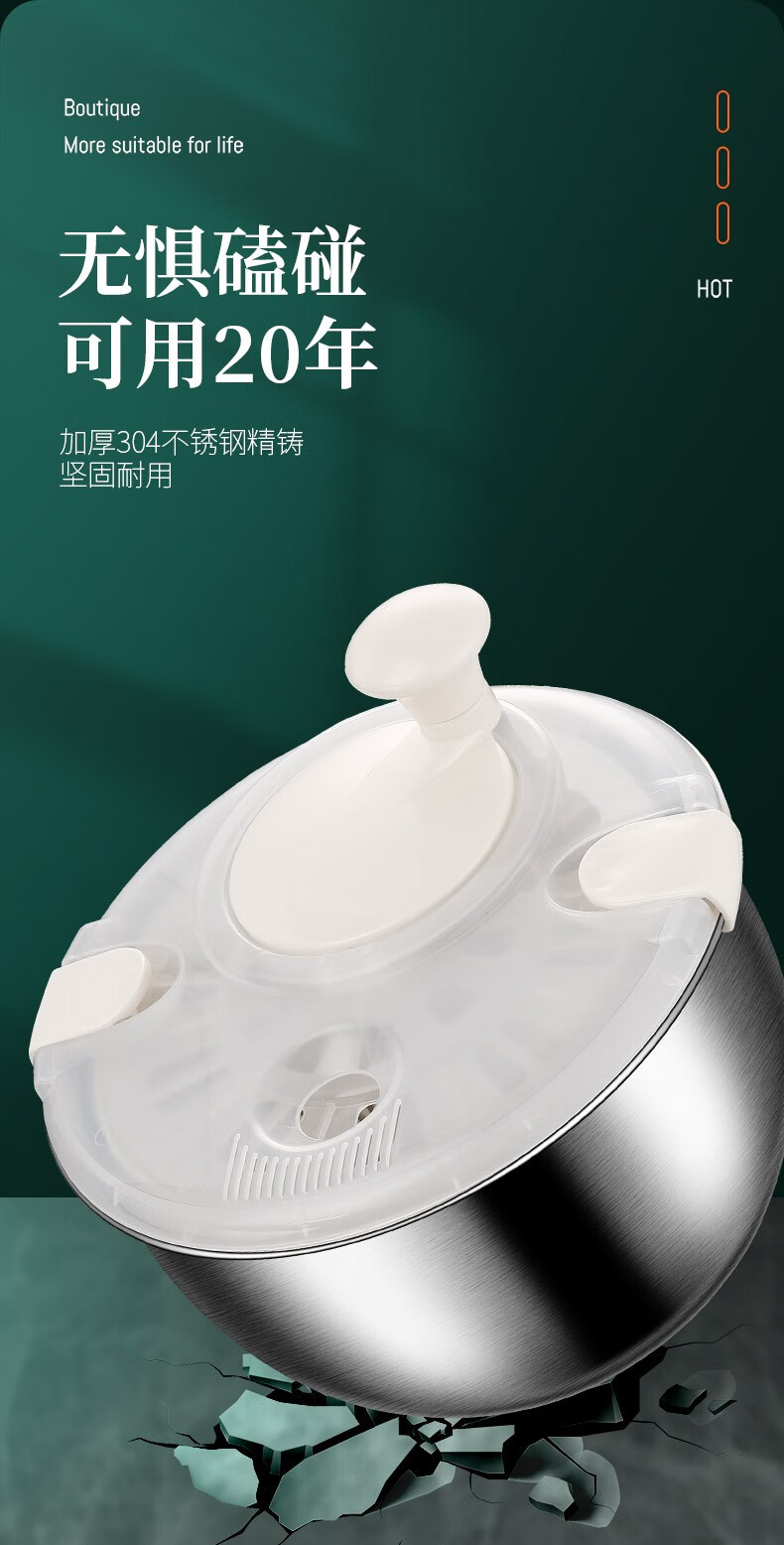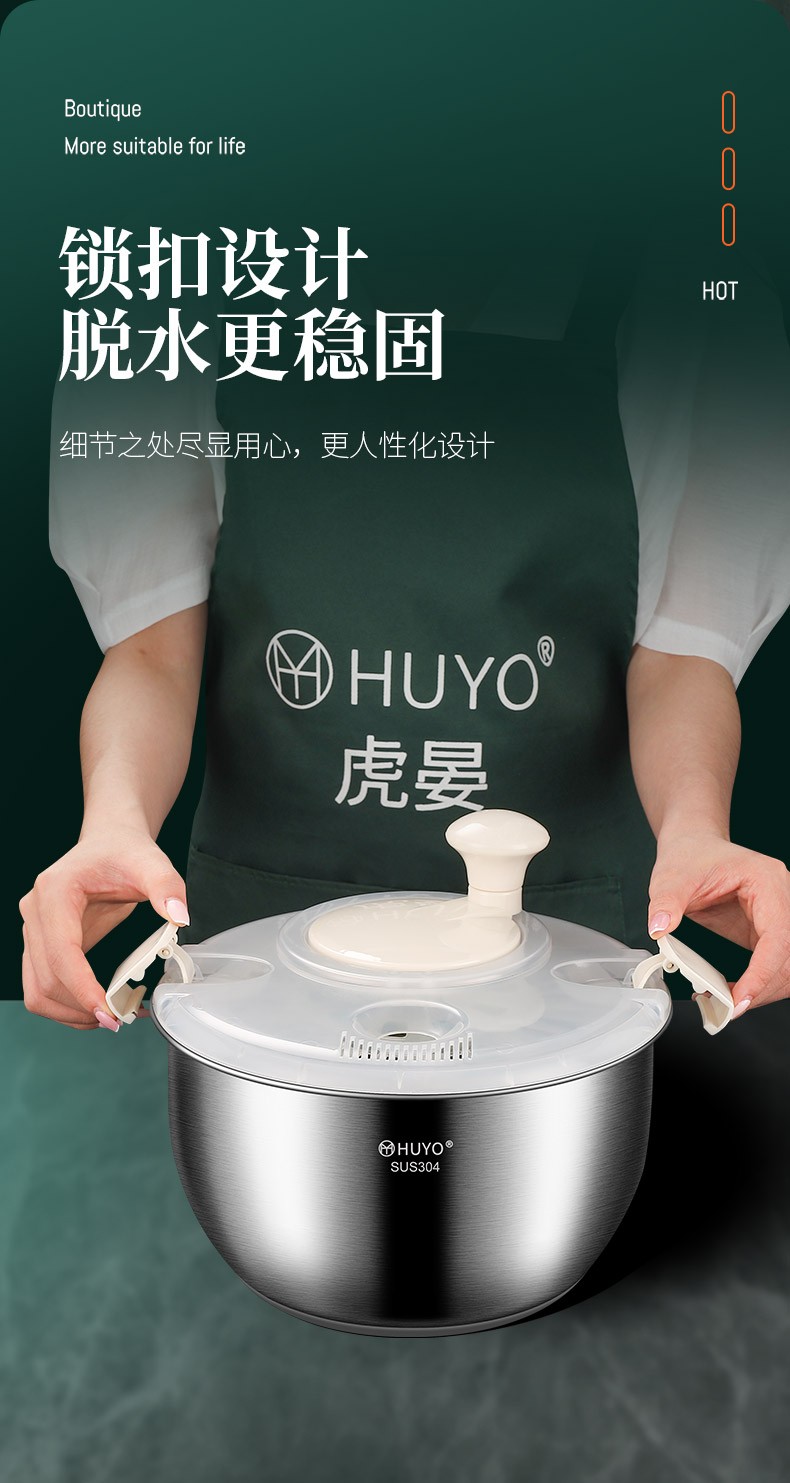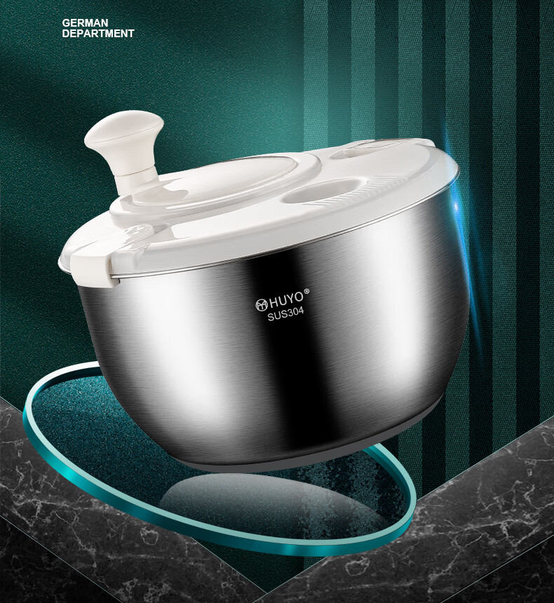 HUYO 304 stainless steel vegetable dehydrator, fruit and vegetable salad water spinner, drying machine, kitchen household vegetable washing and draining basin 304 stainless steel dehydrator