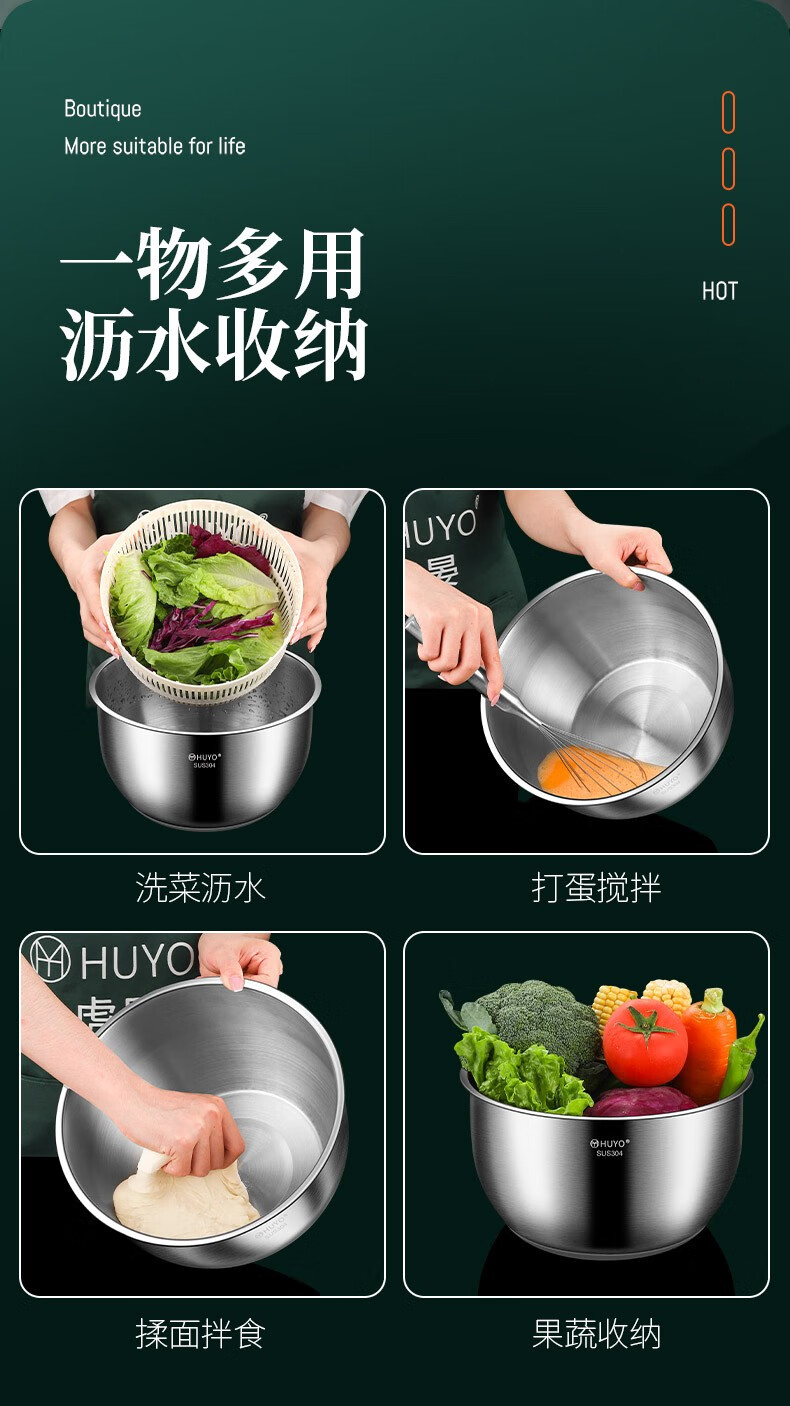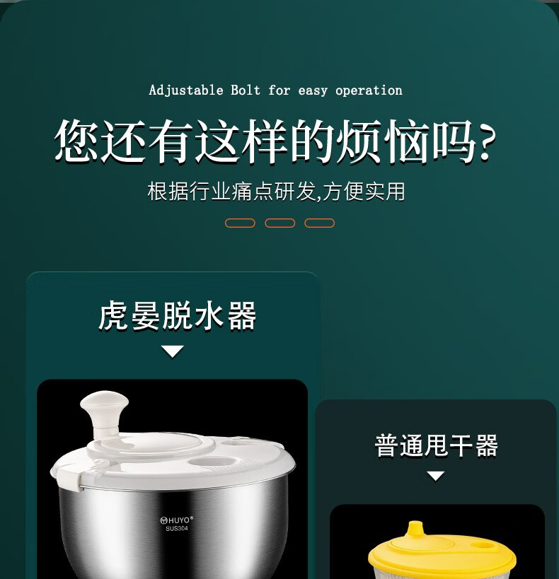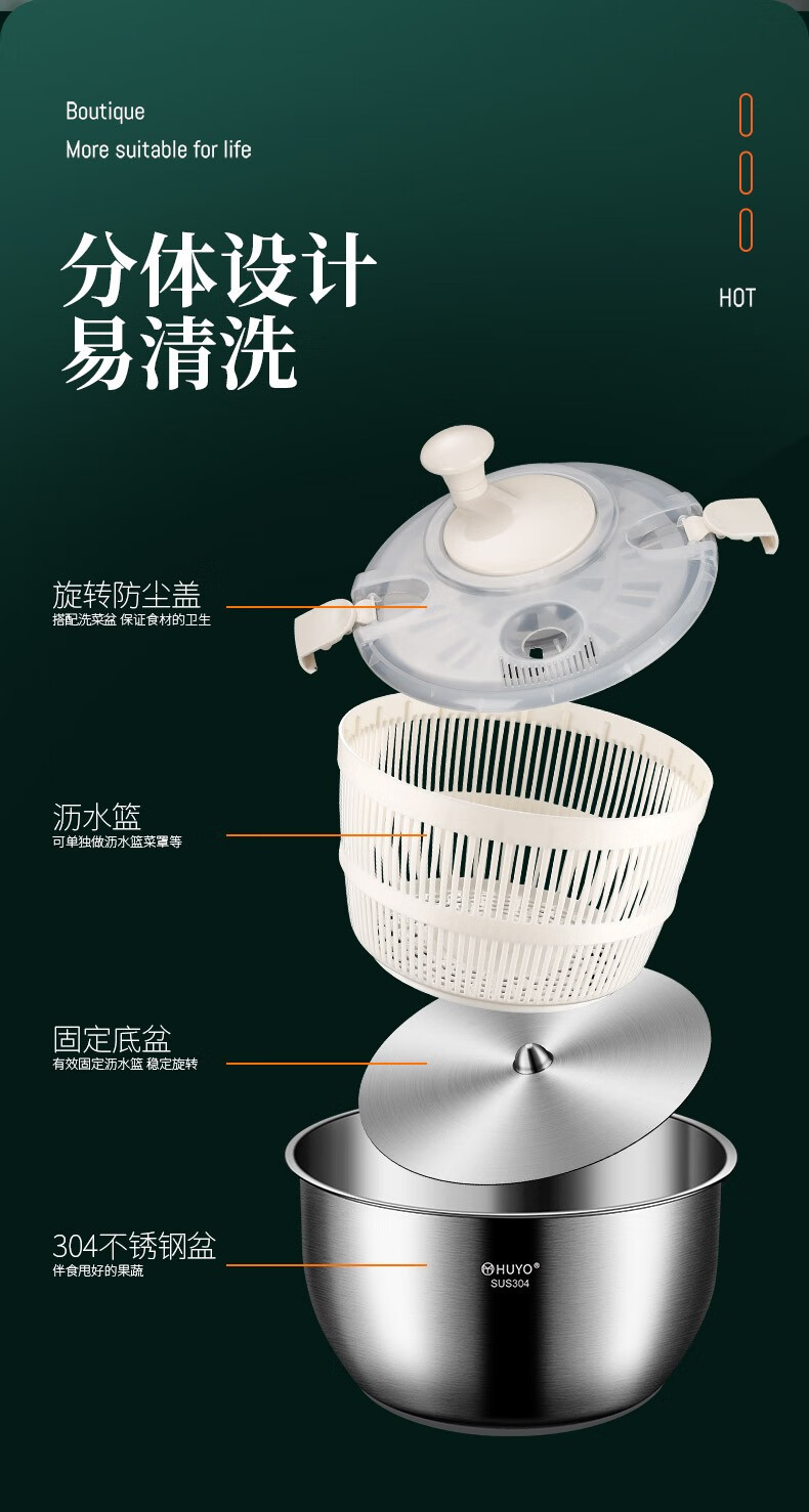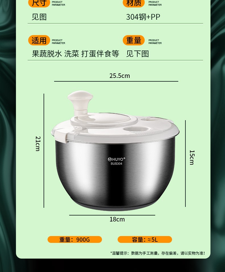 HUYO 304 stainless steel vegetable dehydrator, fruit and vegetable salad water spinner, drying machine, kitchen household vegetable washing and draining basin 304 stainless steel dehydrator