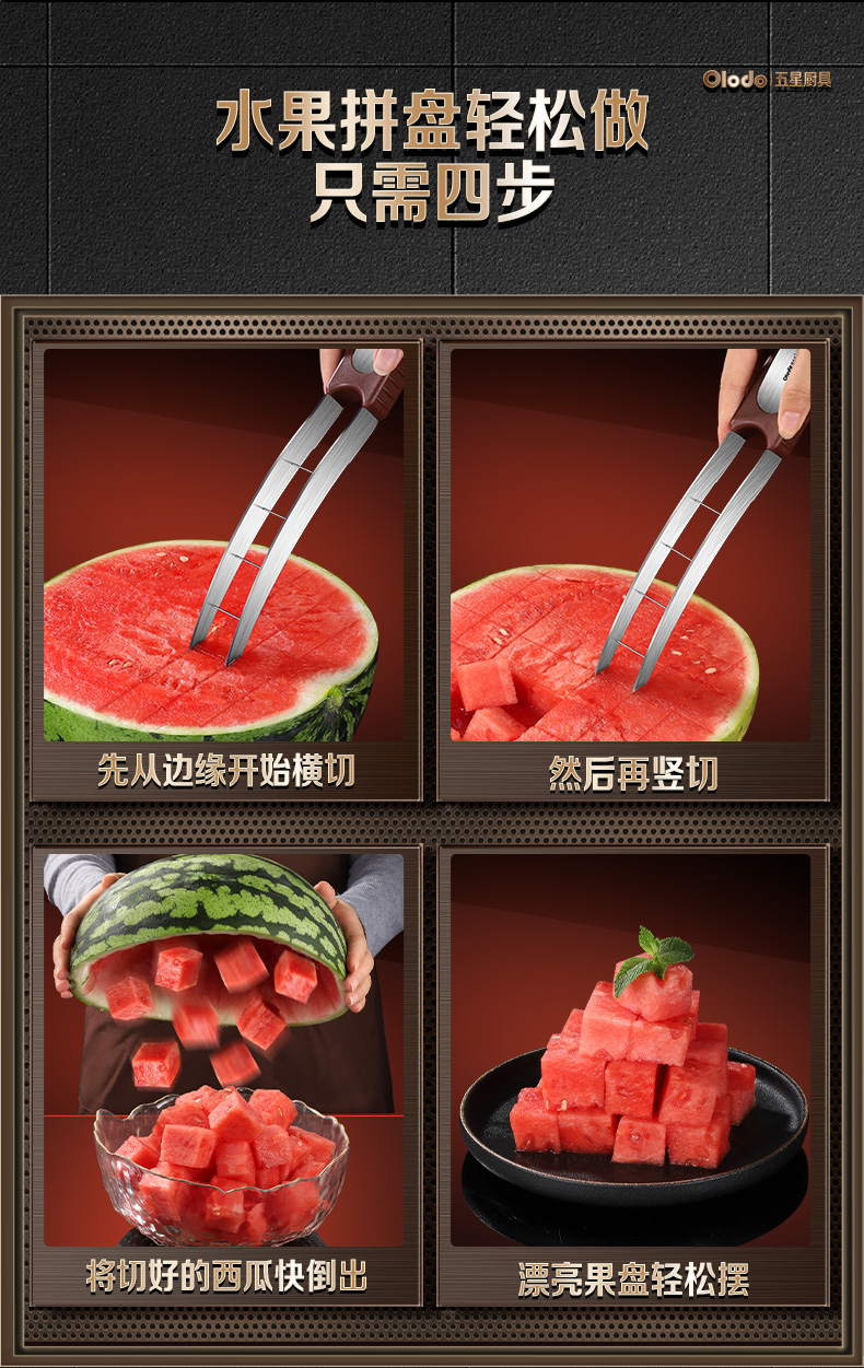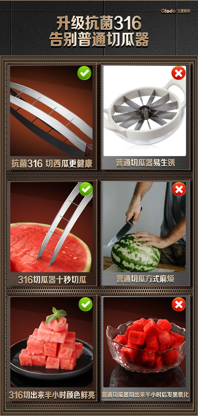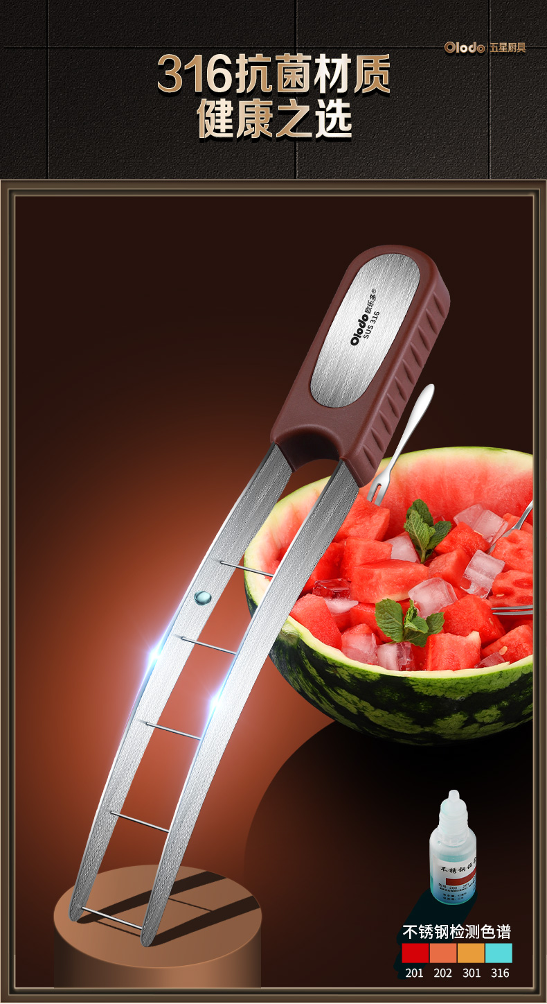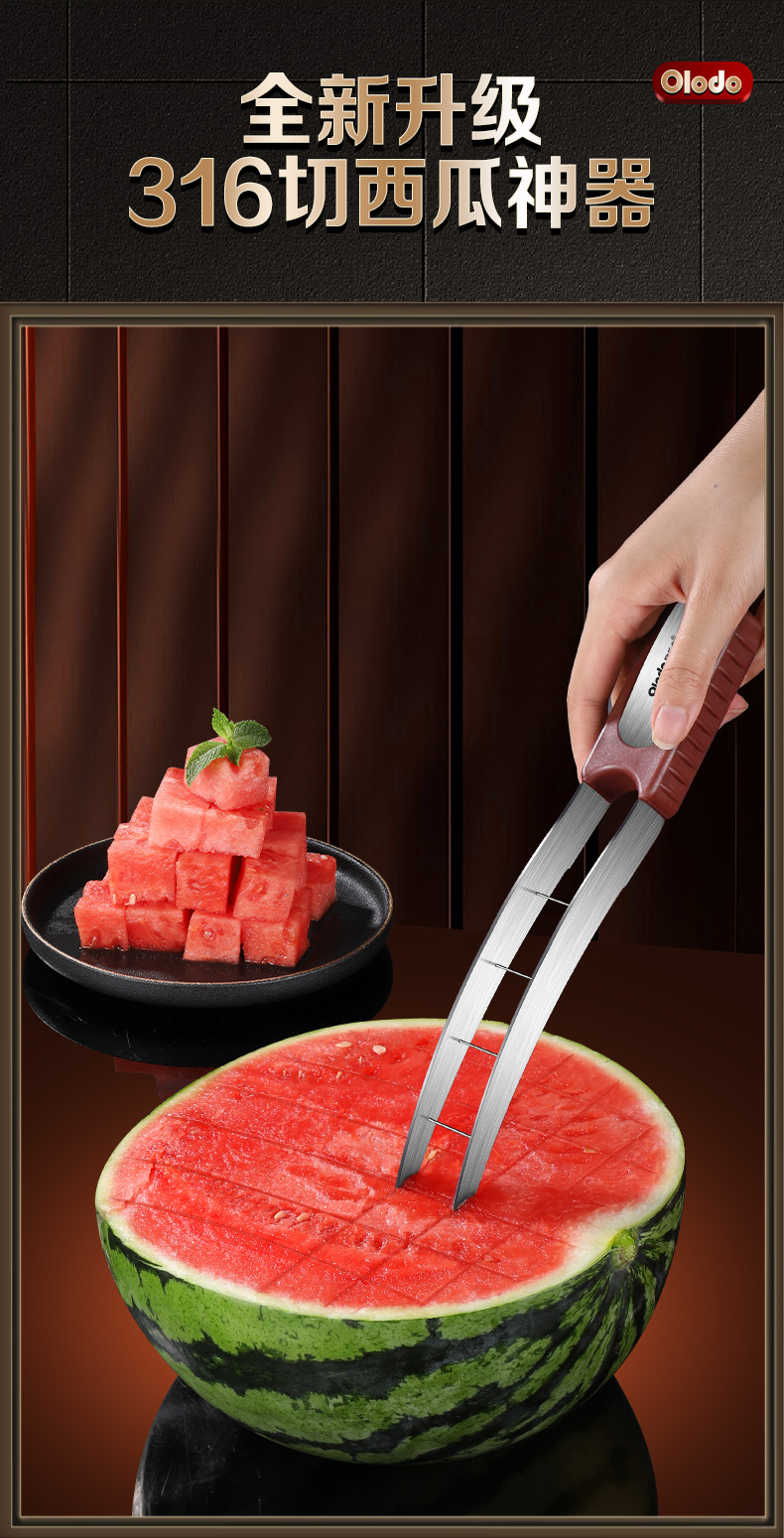 Oraldo watermelon cutter household 316 stainless steel fruit divider watermelon dicing gadget saves time and effort 316 antibacterial watermelon cutter comes with a fruit fork