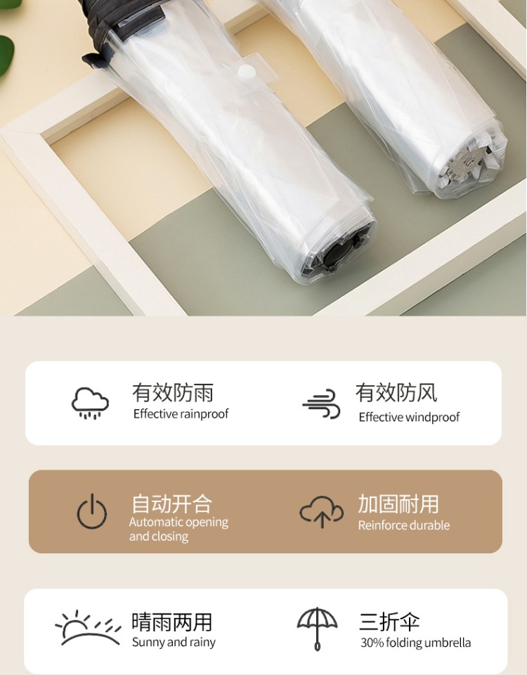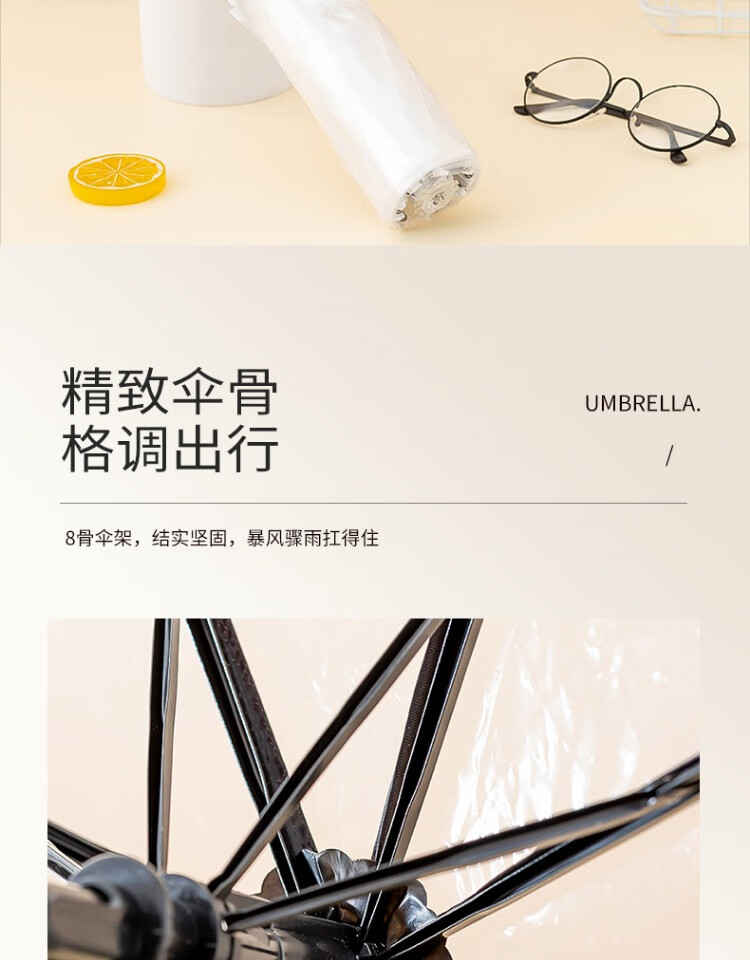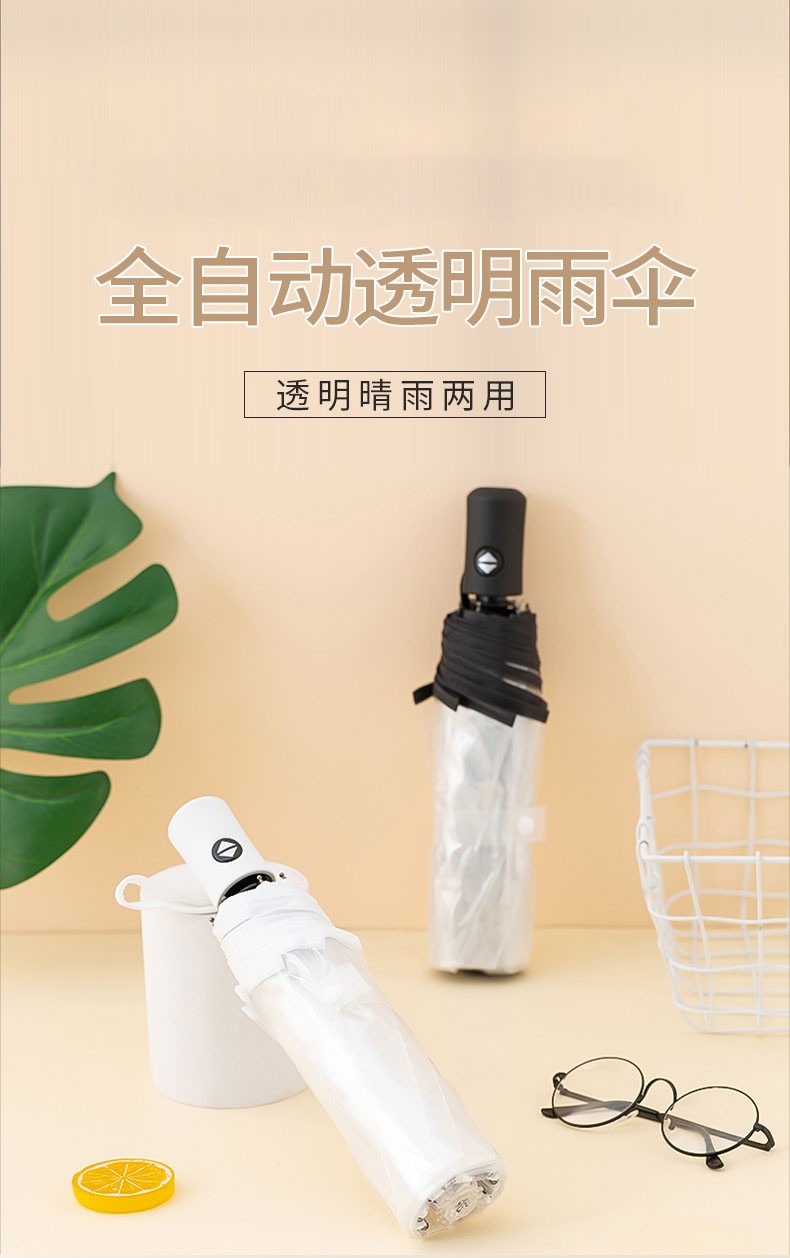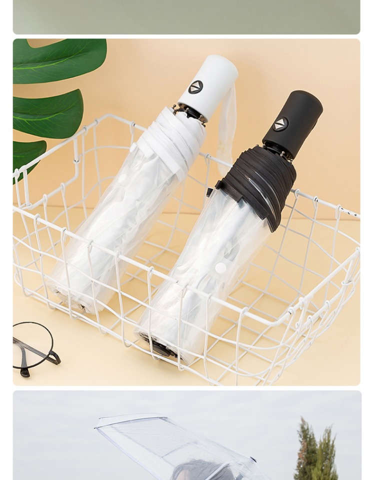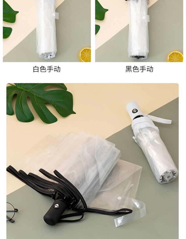 Runpeng transparent umbrella foldable white Japanese small fresh umbrella student girl white (automatic)