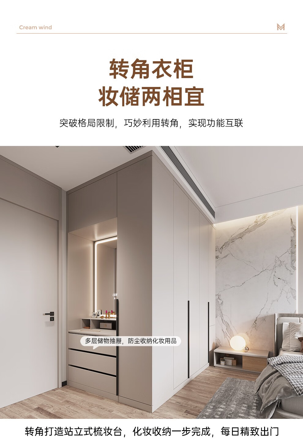 Mag Mag Mag customized wardrobe bedroom cream style corner swing door wardrobe cloakroom custom combination prepayment