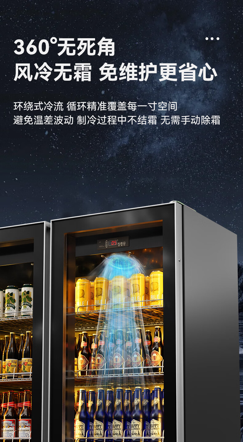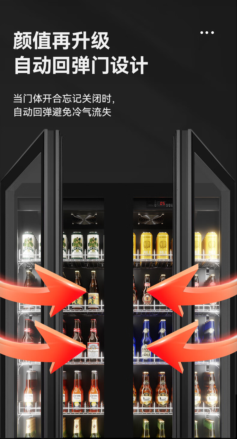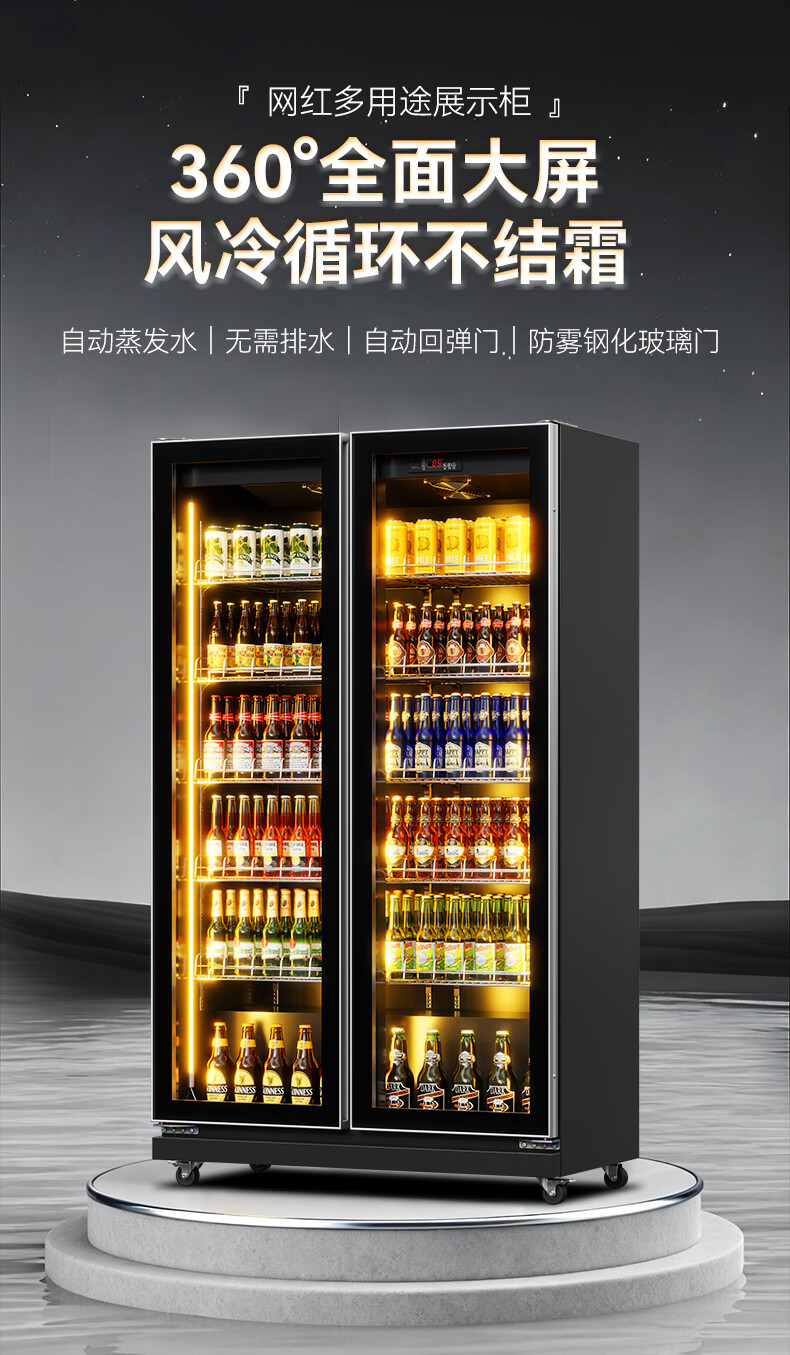 BAKDASH full screen refrigerated display cabinet commercial freezer refrigerated display cabinet wine air-cooled fresh cabinet supermarket convenience store refrigerator vertical beverage cabinet beer cabinet | double door | 1000*600*1830 first-level energy efficiency Pro anti-fog model | frequency conversion energy saving